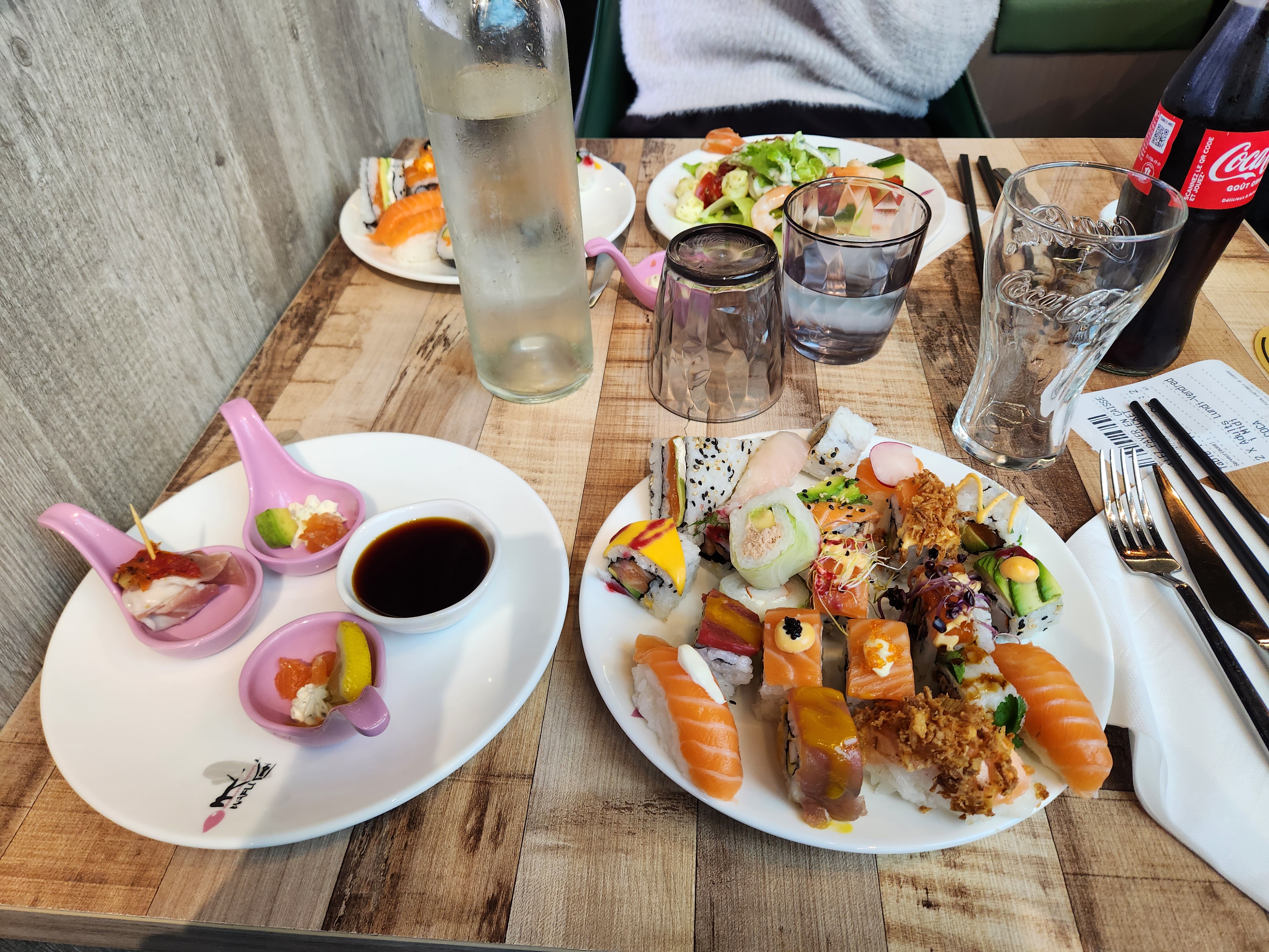 Beaucoup trop de produit congelé, les sushis Son bon mais pas assez vinaigré à mon goût. Les desserts trop industriels et beaucoup congelé dommage de ne pas faire travailler les pâtisseries du coin. Manque un peu de chaleur dans le service, et la personne qui encaisse et clairement la pour vous faire payer... Cadre sympa, beaucoup de choix peut être trop. Toilette manque un peu d hygiene et un robinet défectueux dans les toilettes dame casser depuis 1 semaine.