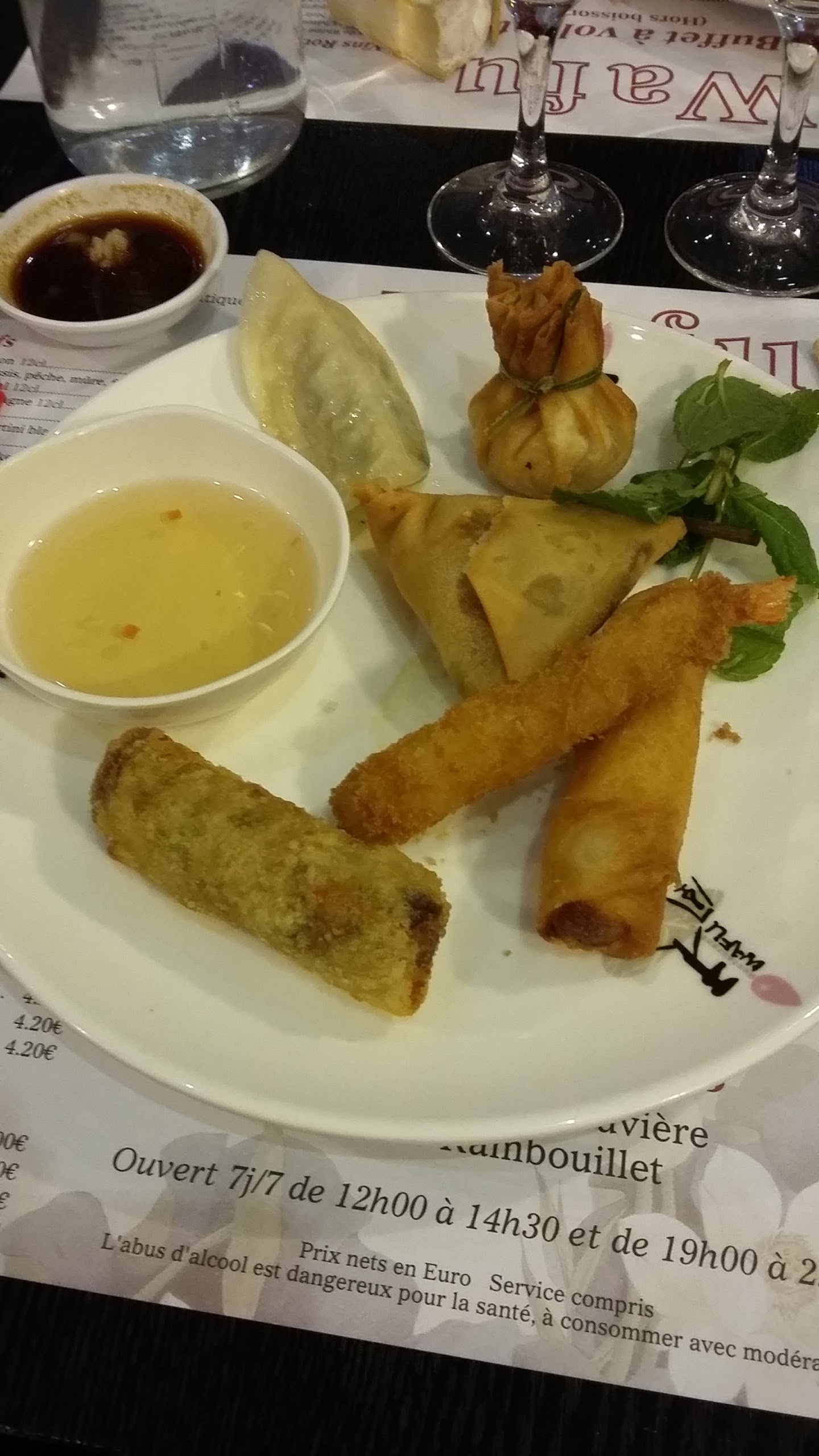 Ce restaurant à le mérite d exister au coeur de Rambouillet. J y suis allé un midi, il n y avait pas de sashimi mais les sushis étaient bon Par contre les samossas et brochette de viandes grillés n étaient pas à mon goût ( façons poli de dire Beurk ) comme je disais il a le mérite d exister contrairement à d autre enseigne de buffet asiatique qui on fermé. Les desserts sont variés et bon bon appétit !