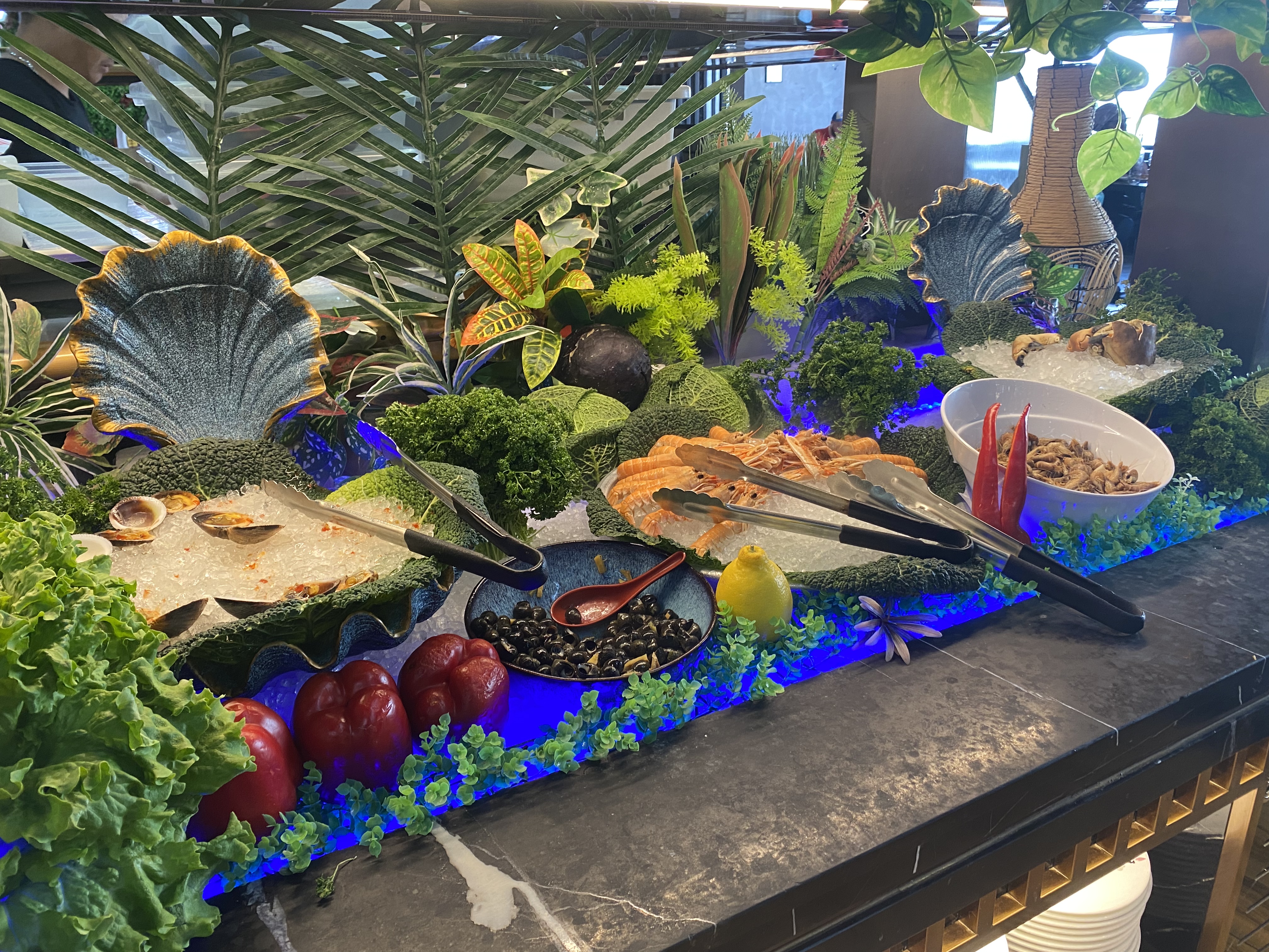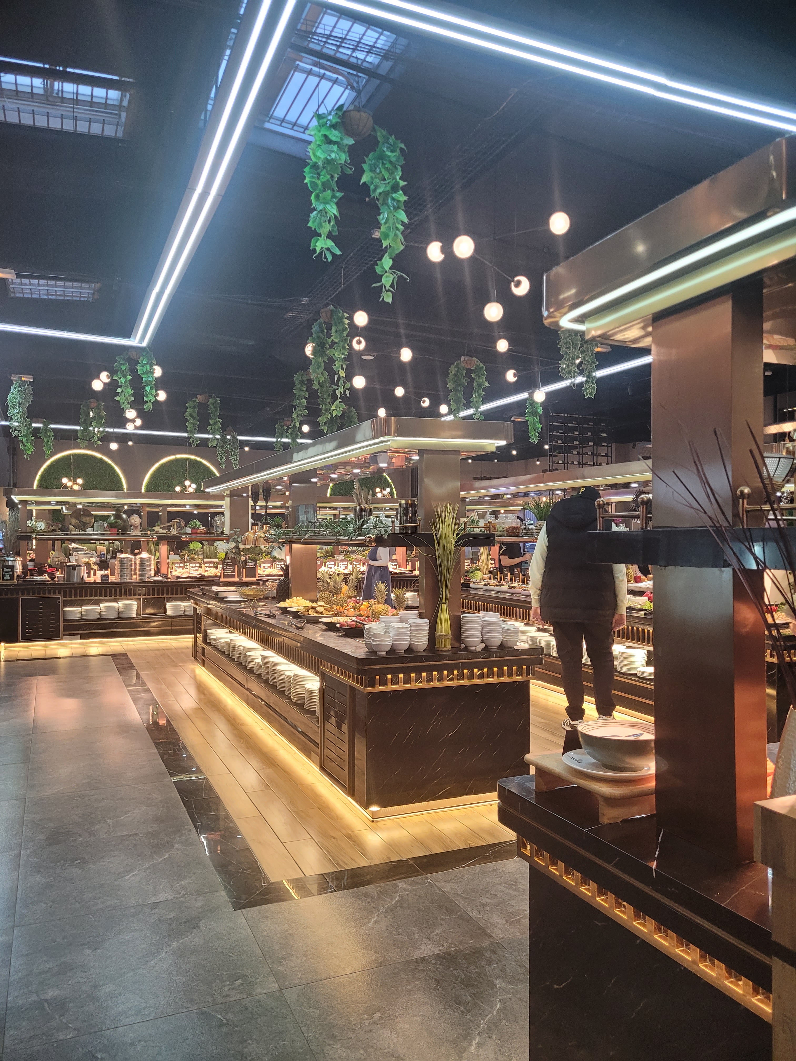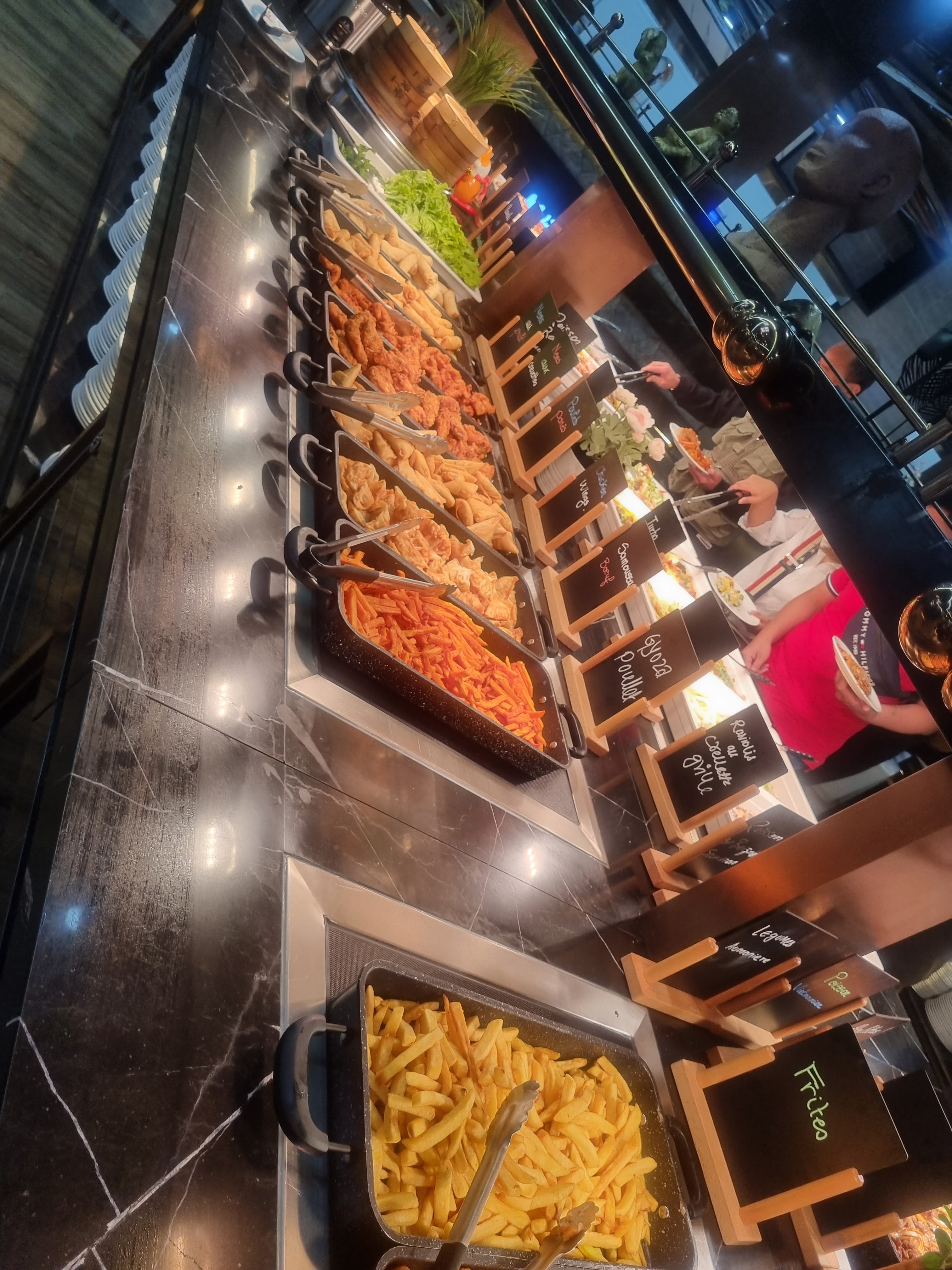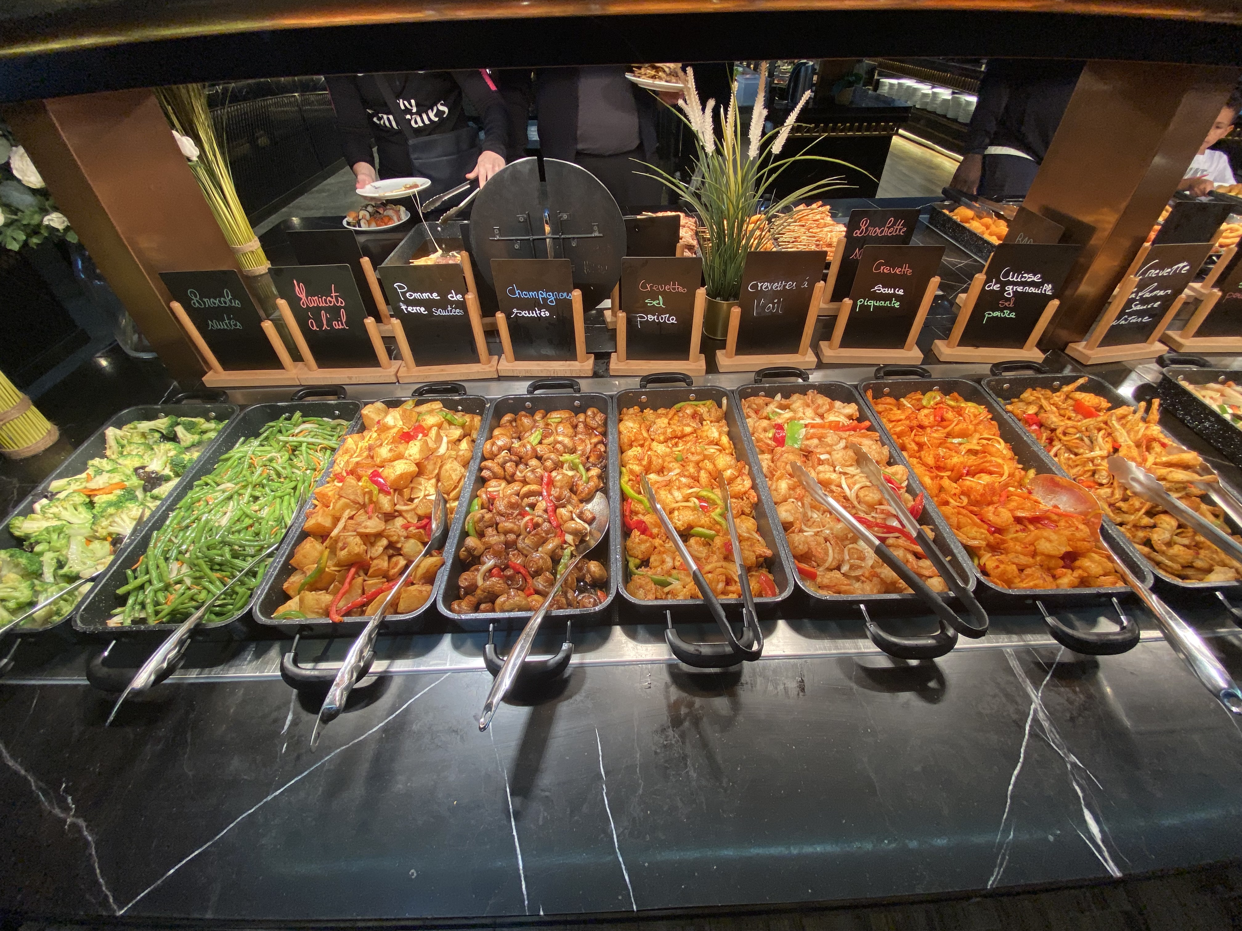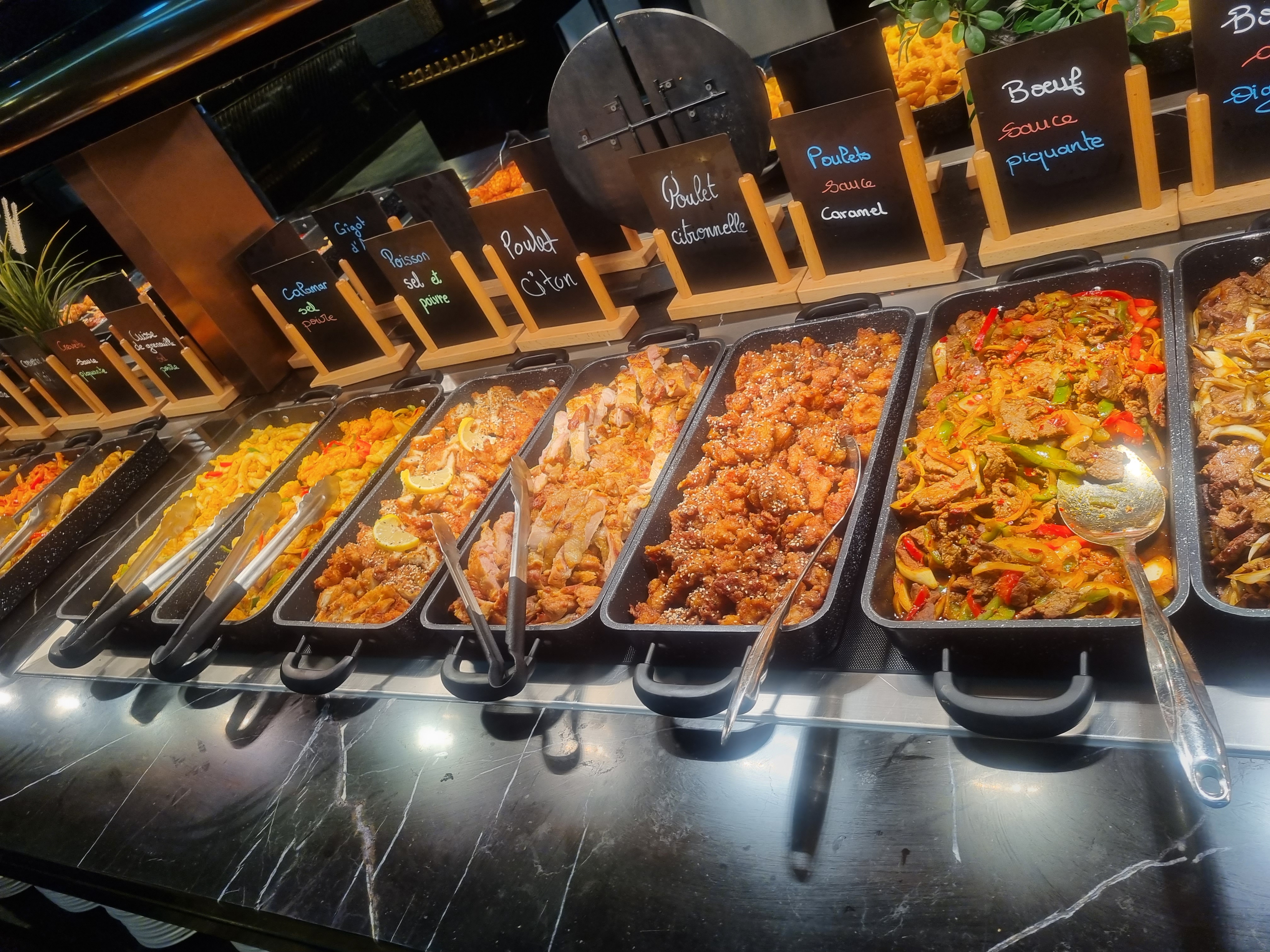 Le choix est très très très varié et la décoration se veut soignée. Les produits sont pour la plupart préparés devant la clientèle. Mais c'est une question de goût : je ne suis pas fan de ces très grands restaurants qui sont très bruyants et dans lesquels il y a beaucoup de monde à tous les buffets. On y va pour manger (tout à volonté) mais pas pour y passer un moment convivial 🤷🏻♀️