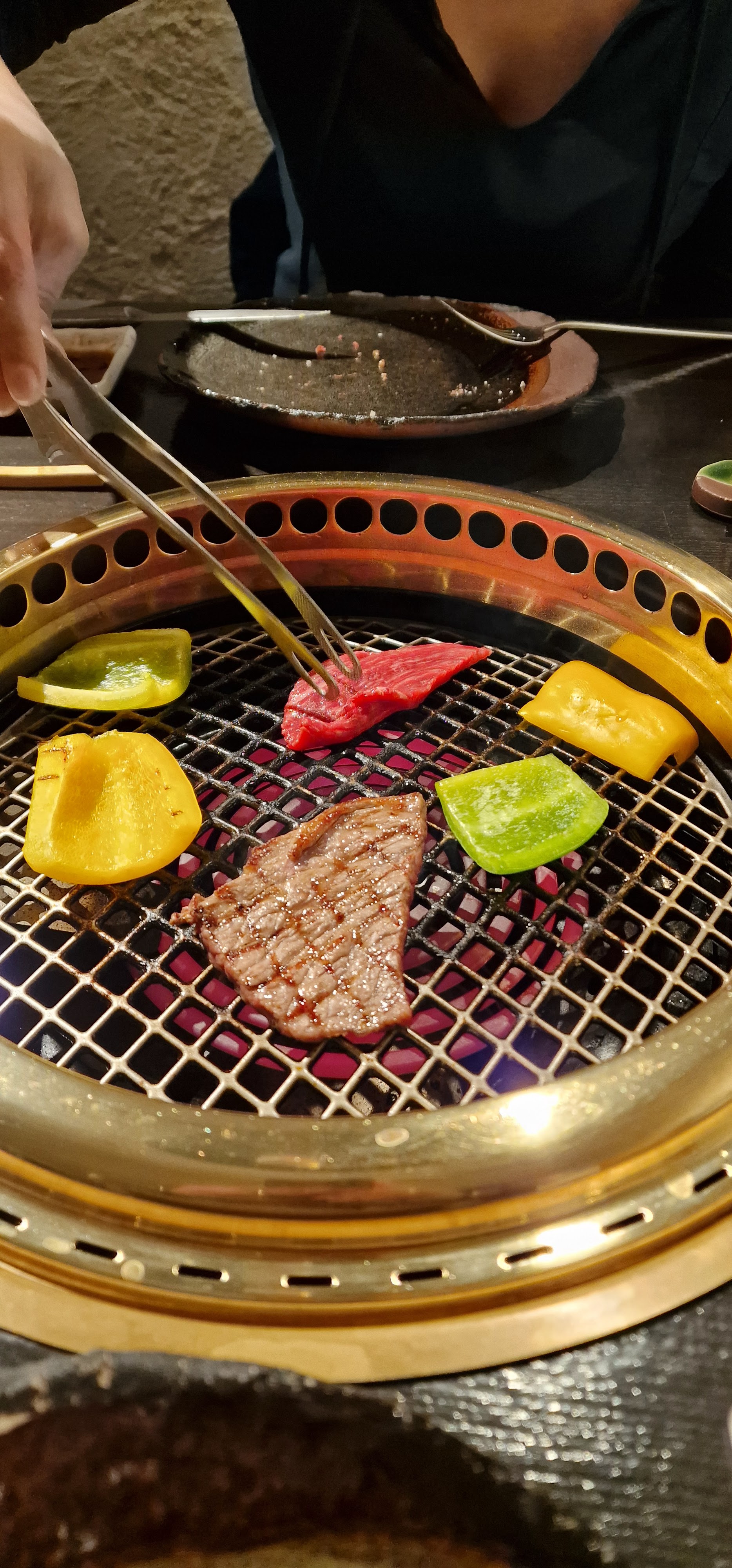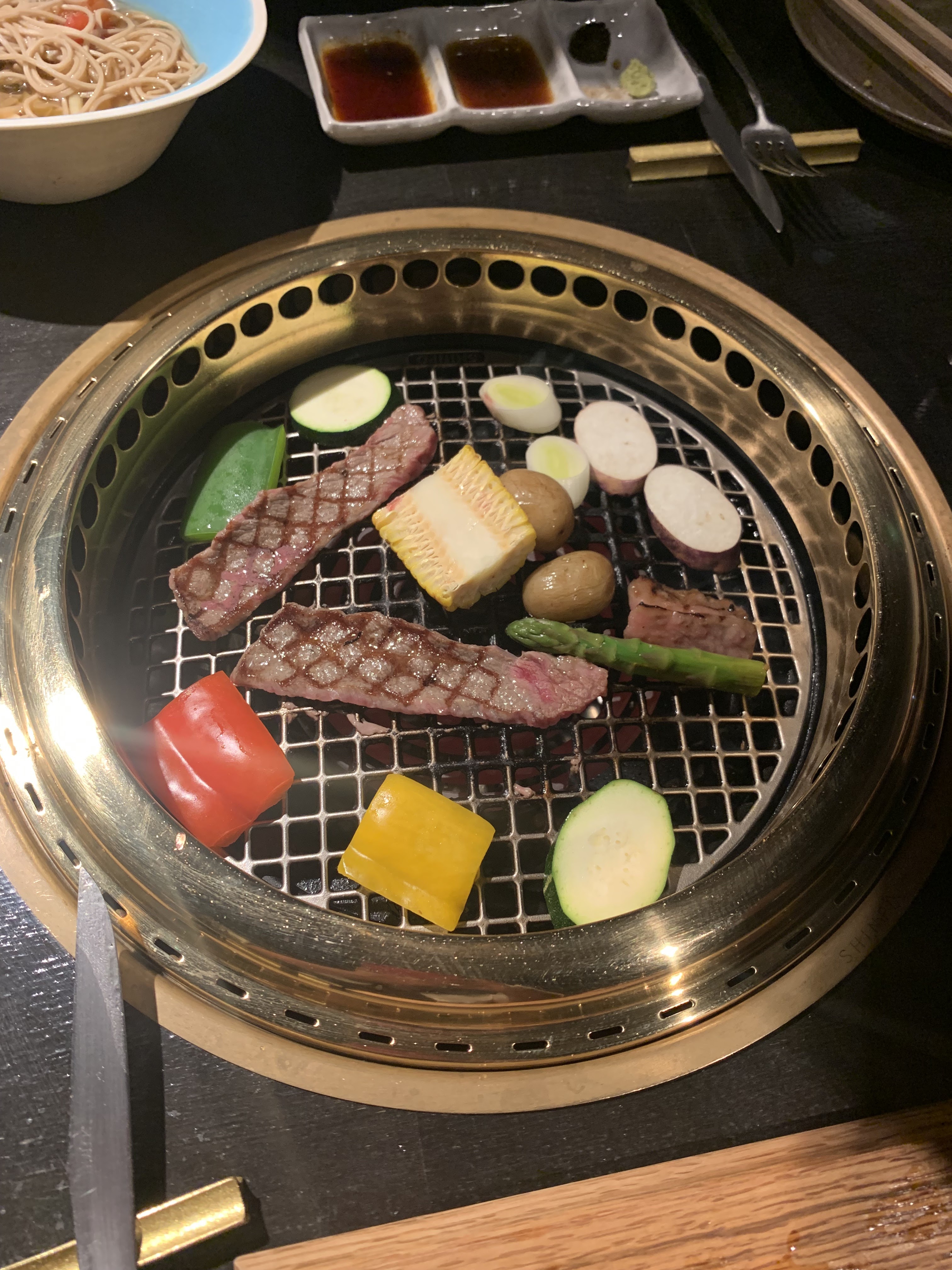 Excellente expérience, En début de repas le personnel vous présente la viande du jour. Vos morceaux arrivent ensuite coupés en fines lamelles et c'est à vous de les faire griller sur la plaque chauffante devant vous. Je n'avais jamais mangé d'aussi bons morceaux de boeuf. Tellement bons qu'on aurait dit du beurre :) A refaire sans hésiter!