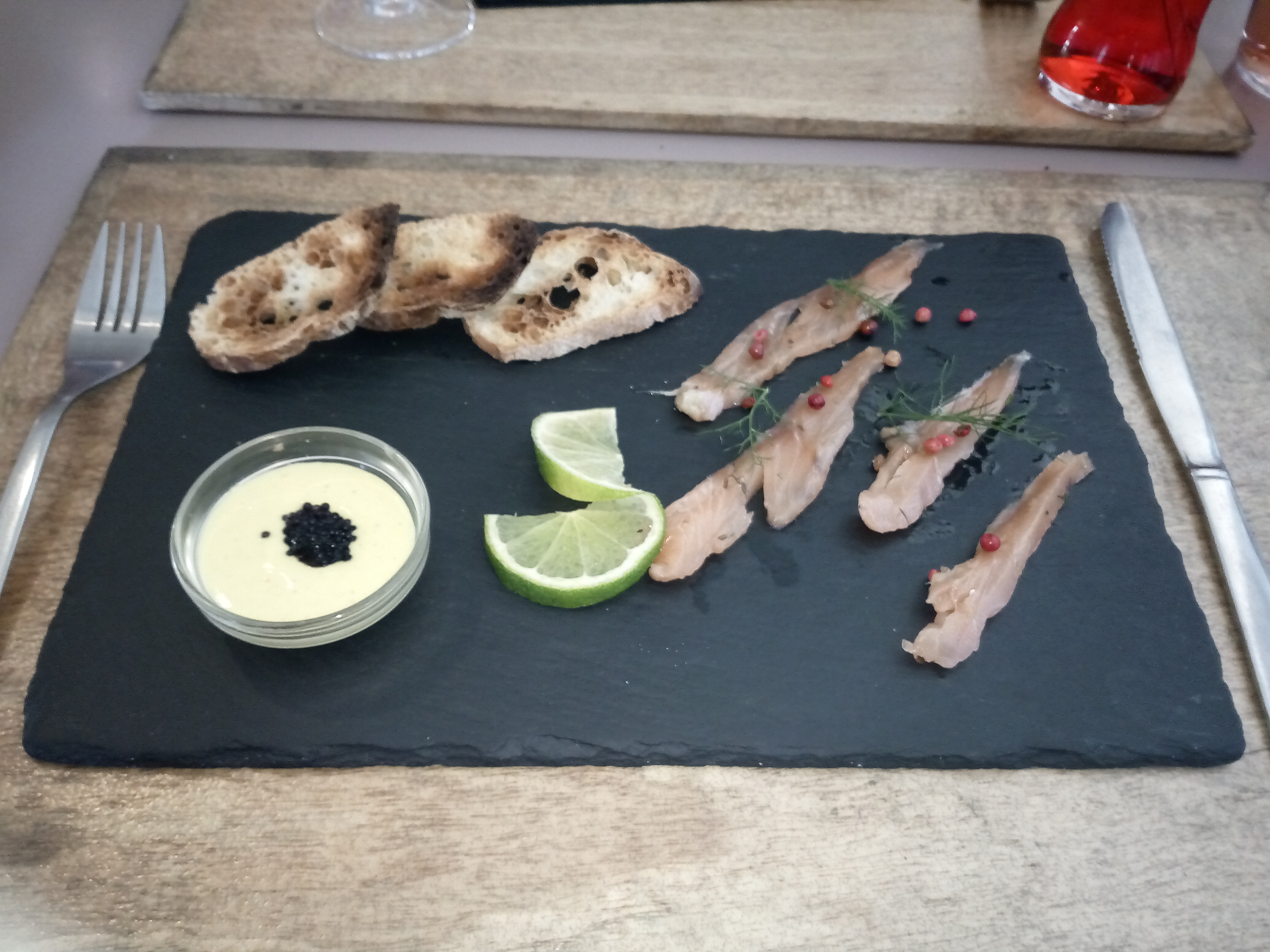 Très bonne cuisine des produits de qualité, je recommande vivement ! Nous avons testé le menu à 21€ qui est parfait ! En entrée : Gravlax de saumon, parfaite association de saveurs et de textures. En plat : Le dos de cabillaud au top 👍 avec sa sauce au chorizo 😋 En dessert : la mousse au chocolat caramel au beurre salé et palet breton une tuerie ! Vous pouvez aller y manger les yeux fermés !