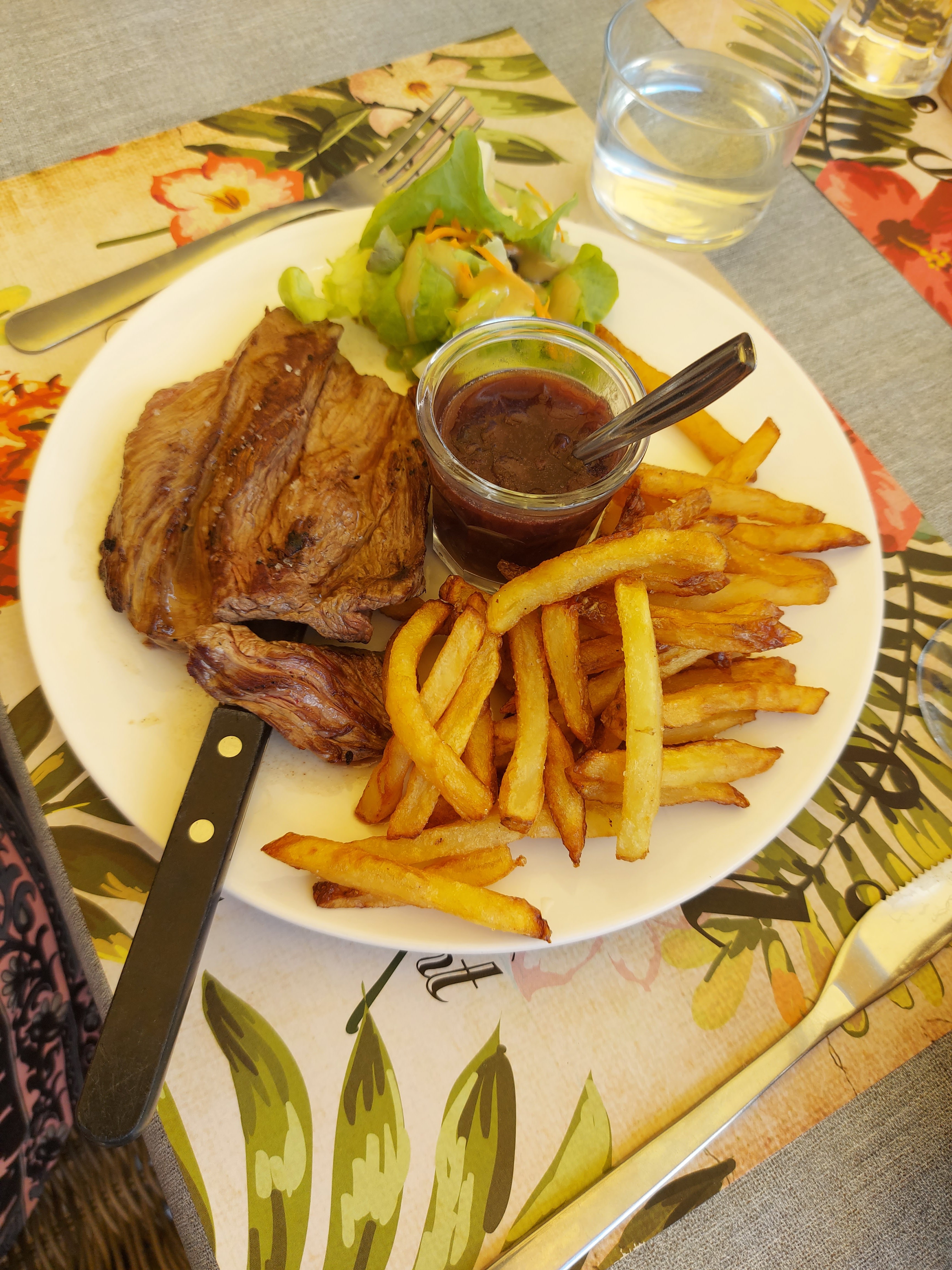 Un petit peu déçu pour un repas à midi à presque 20€. Le roulé de jambon n'avait pas trop de goût, le morceau de bavette était assez petit quoique de bonne qualité, et les frittes passablement grasses.