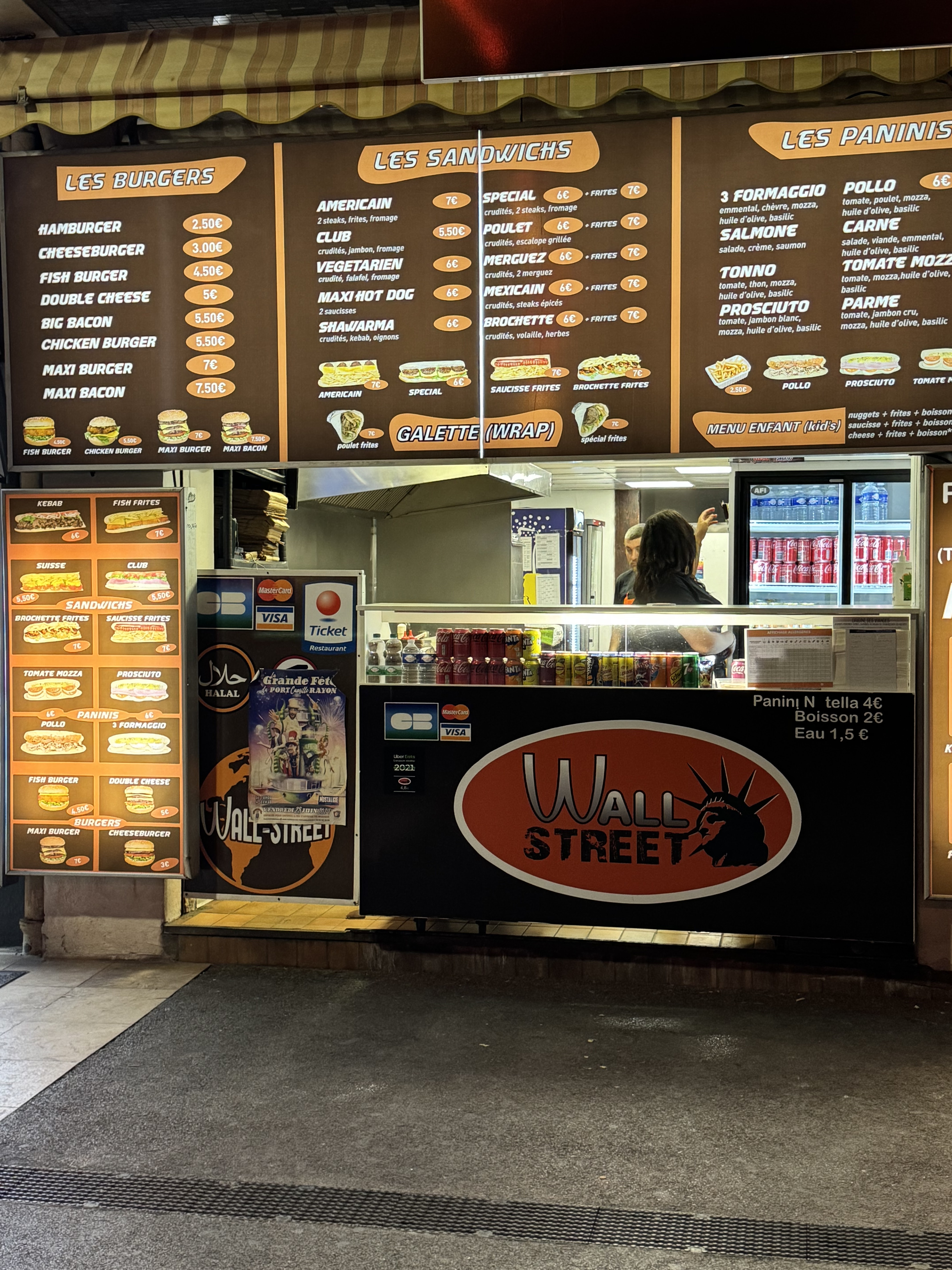 Je suis allez chez wallstreet après une soirée bien arosé au village, j’ai prit un américain sauce du chef, je recommande, surtout les meuf autour elle on la dalle et pas de sandwich je recommande !