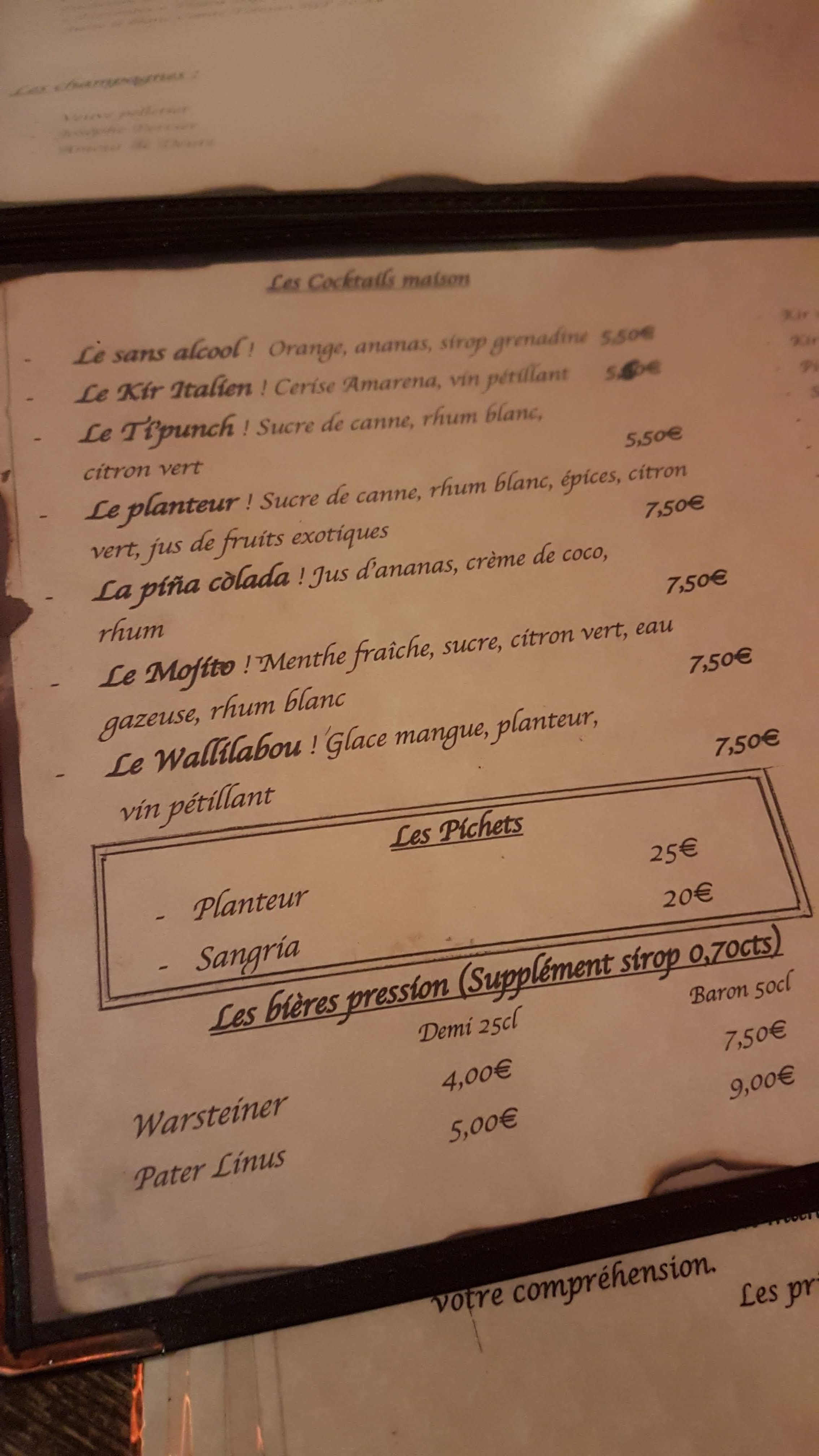 Très bonne surprise, restaurant à thème (pirate) mais avec quand même une très bonne cuisine, mon épée de volaille était délicieuse. La deco est très bien réalisé et les cocktails sont accompagnés de pirates et de perroquets :) vraiment sympa.
