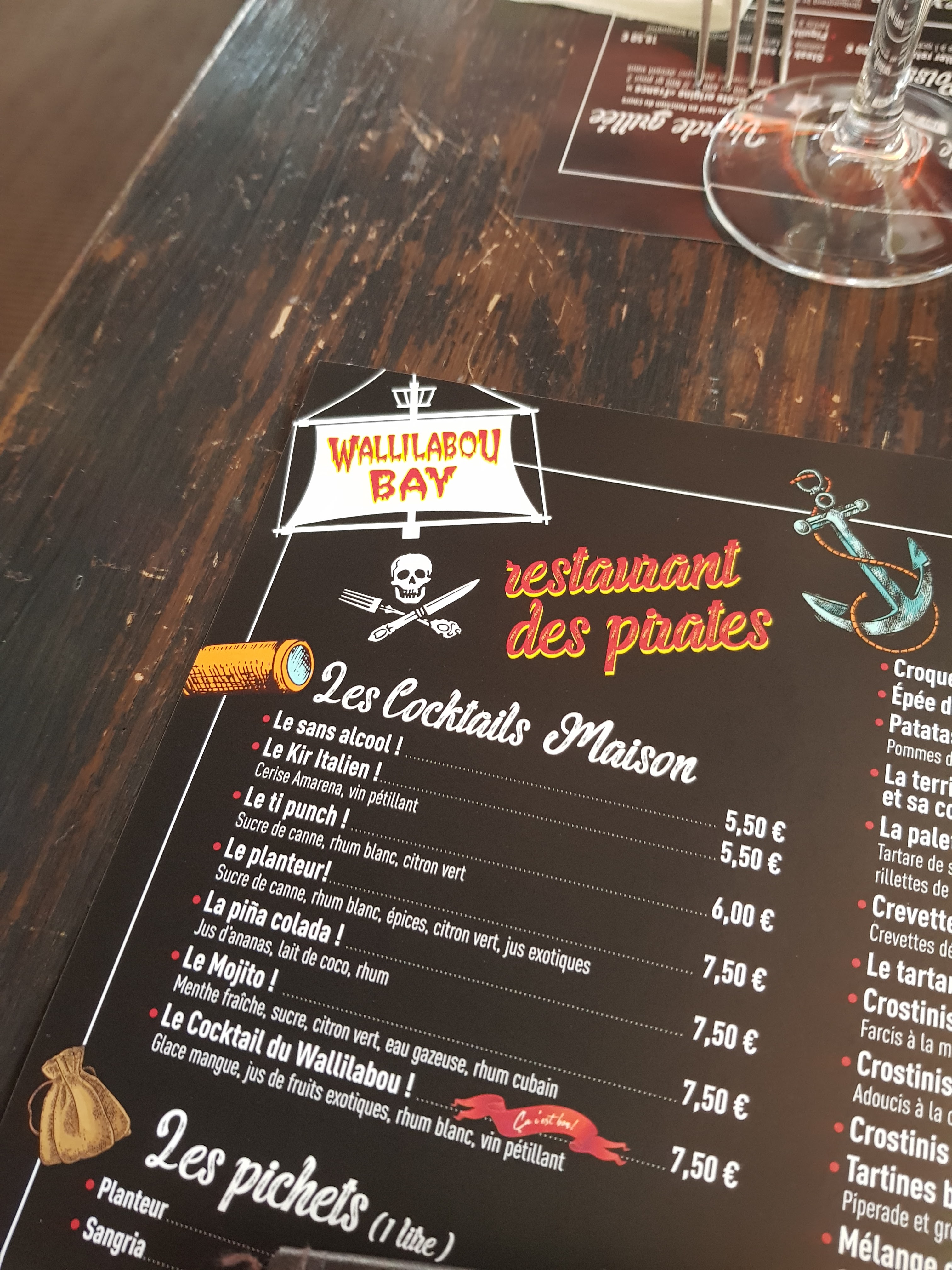Ambiance très sympa et la déco pirate vraiment top. J'ai goûté une épée d'araignée de porc juste un délice.😎 Je recommande vraiment cette adresse.