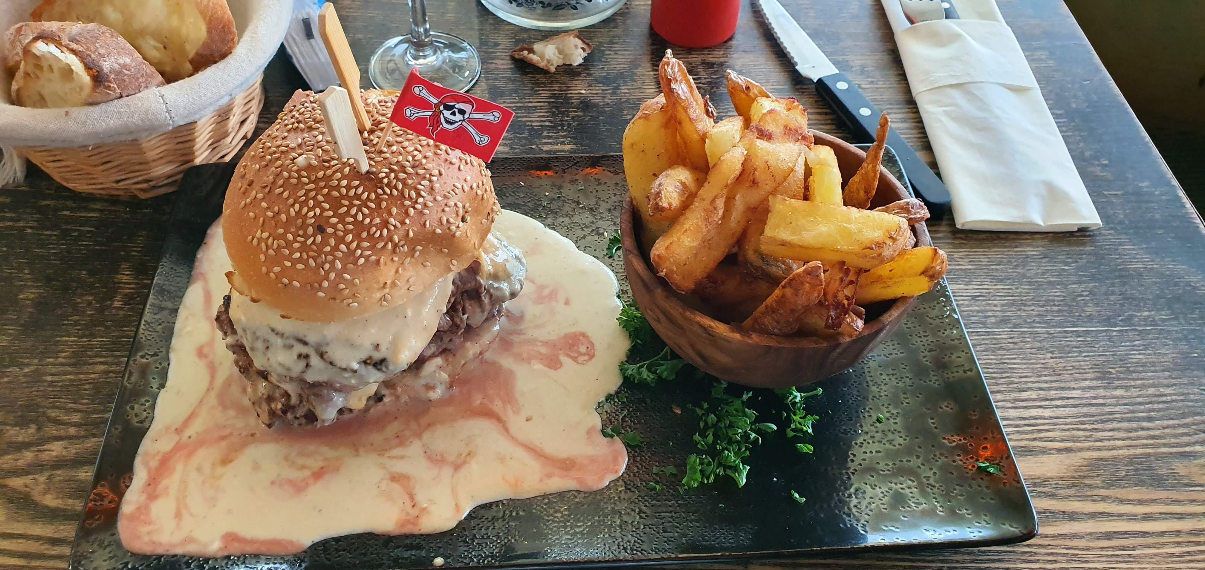 Un bon resto pour passer un bon moment entre copains. Service original sur des épées et un personnel plutôt sympathique. Ambiance décoration corsaires et flibustiers. Faîtes le détour et passez une chouette soirée.