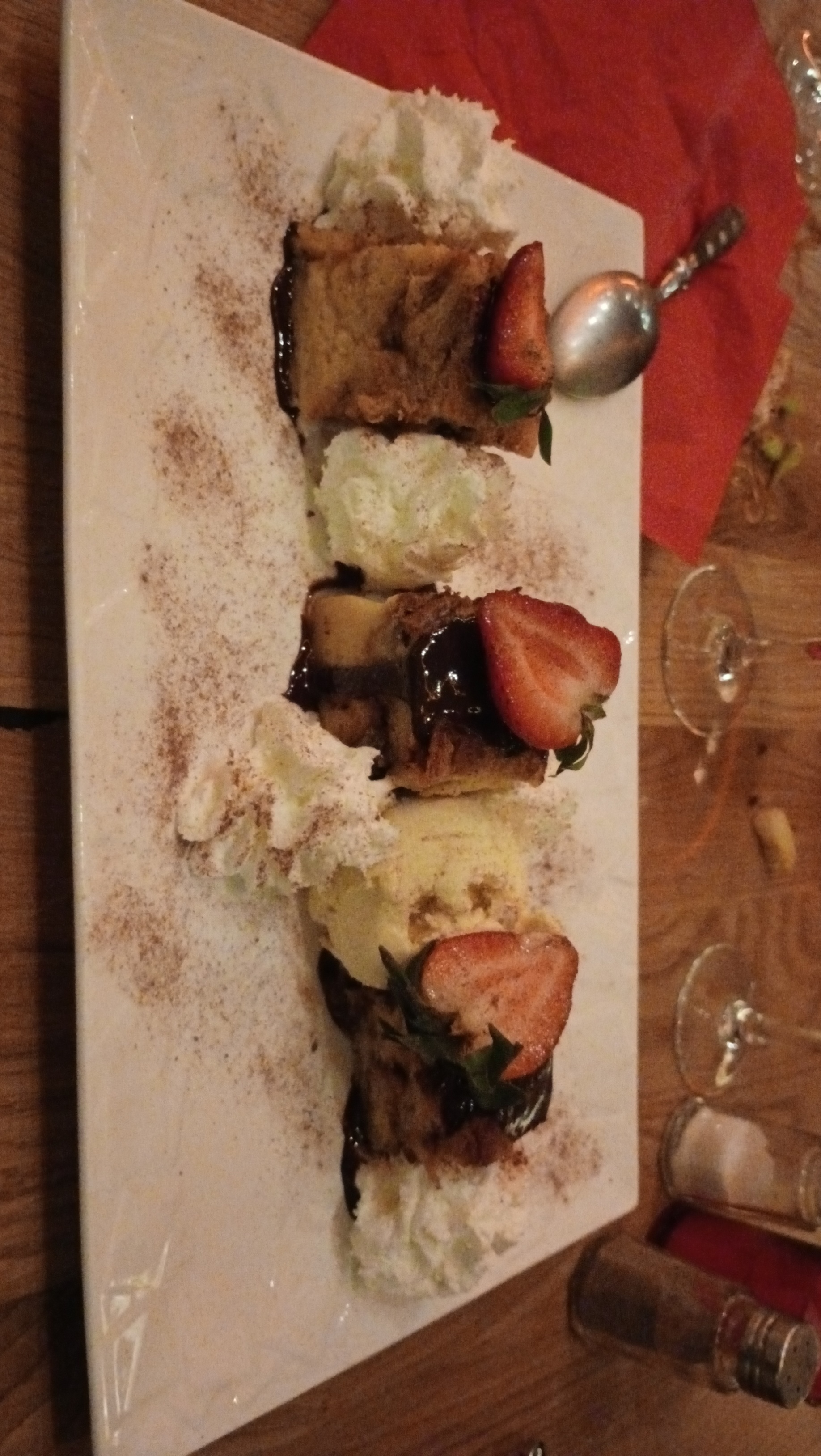 L'ambiance, les plats sont très bien. Le personnel mériterait d'être plus souriant. La musique un peu plus variée (en 3h, 4 fois les mêmes musiques) et ce n'était pas évident de manger dans la pénombre, à l'étage car une ampoule était HS...
