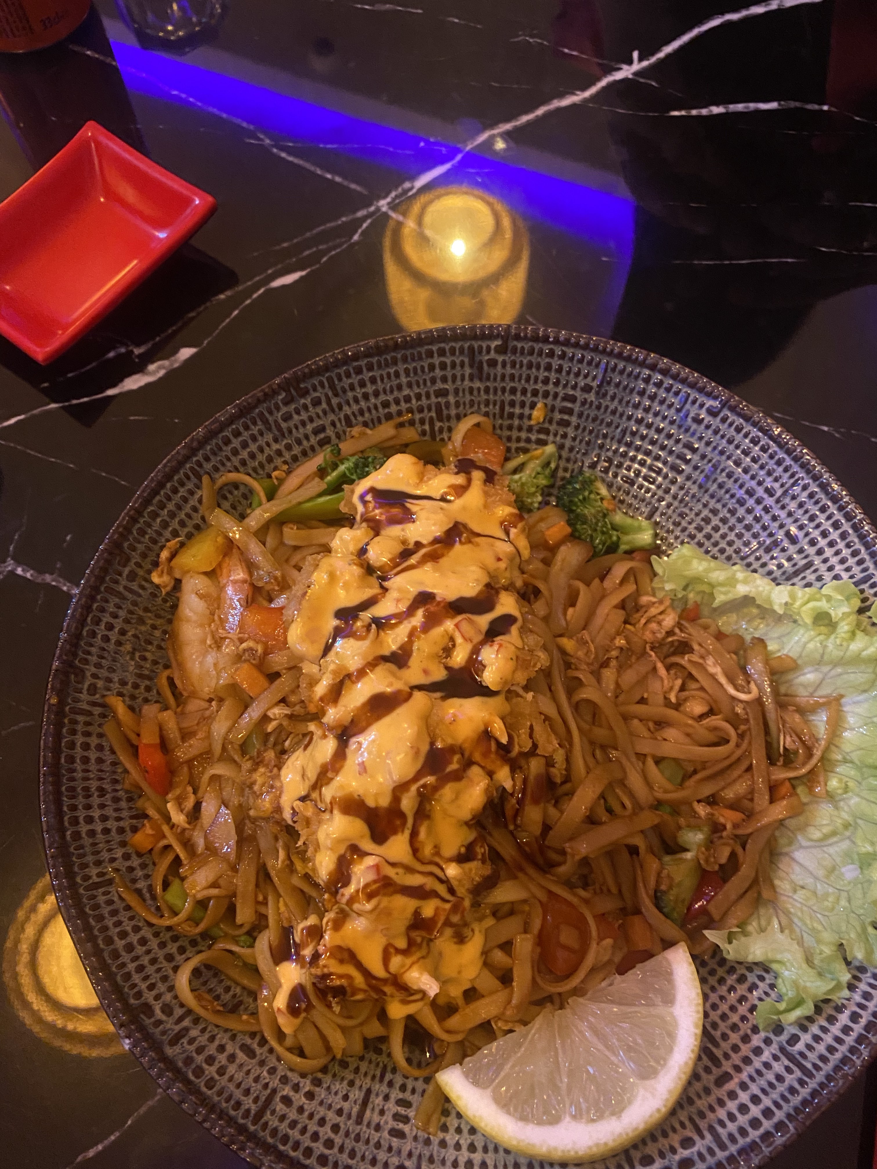 Service lent et beaucoup d’attente J’ai pris un pad thaï poulet mais j’ai pas vu de poulet !!
