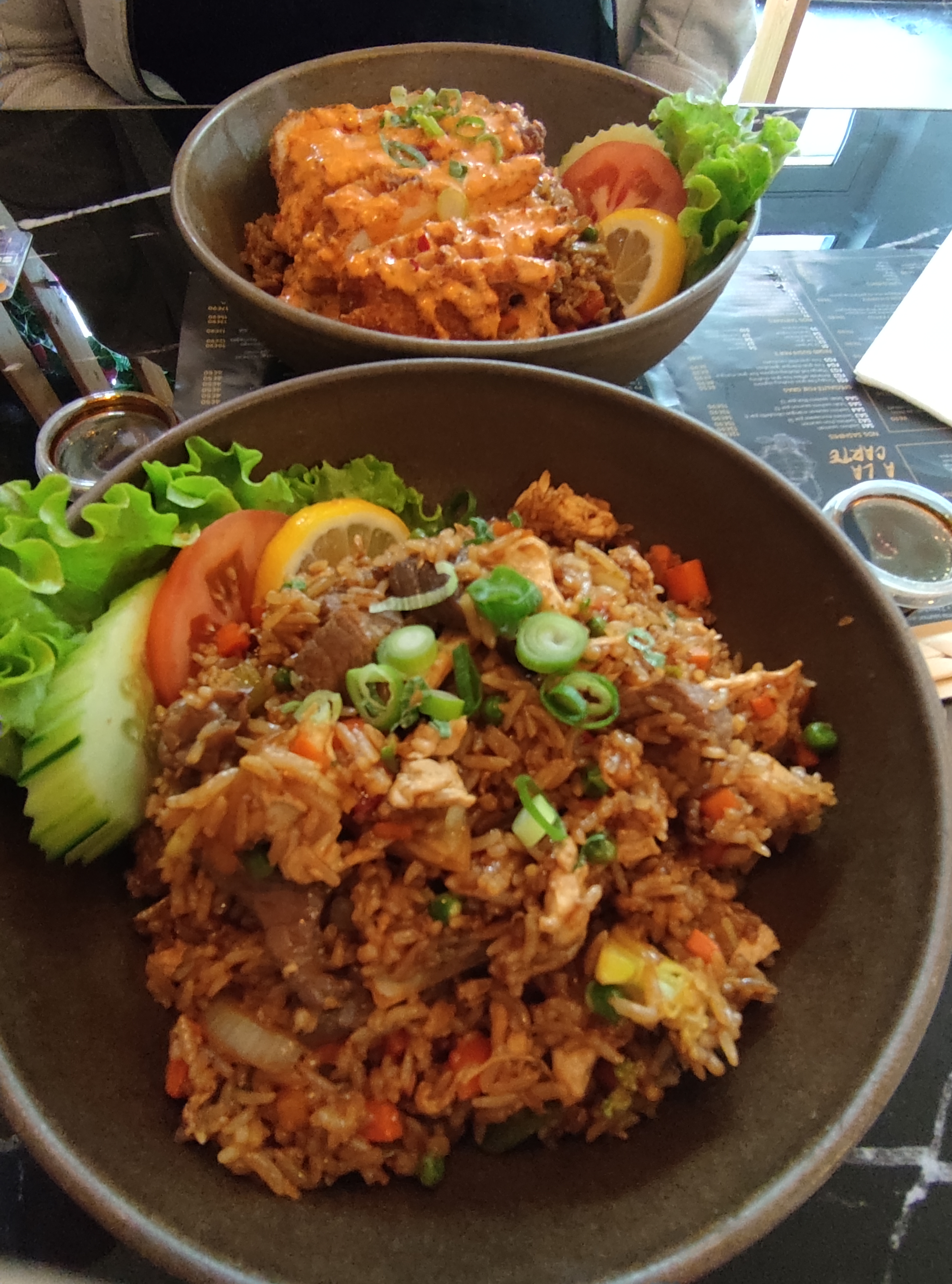 J’ai pris le riz thaï poulet dynamite c’était excellent !! La sauce sur le poulet incroyable. Par contre j’avais bien précisé que je ne voulais pas d’œuf dans mon plat mais il y en avait quand même.. étant intolérante à l’œuf c’était assez compliqué de séparer les œufs du riz avant de pouvoir manger ..