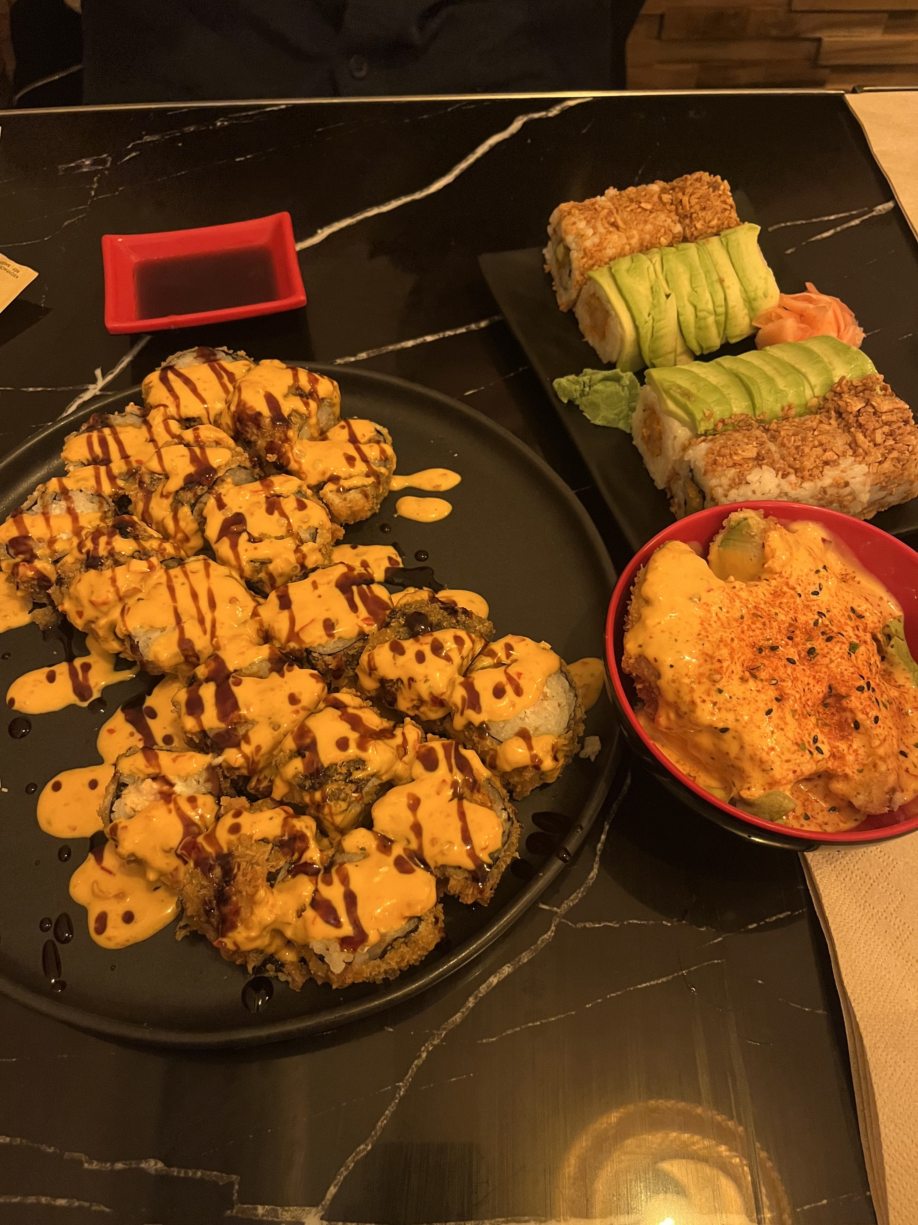 C’est bon, ça change mais il n’y a absolument rien de spécial qui permet de justifier des prix exorbitant qui ne valent ni la quantité ni la qualité des produits. La sauce dynamite n’a absolument rien d’exceptionnelle et est balancée partout c’est écœurant. Les california sont géant car il y a vraiment trop de riz et très très peu de garniture. Le personnel est cependant chaleureux et le service est correct