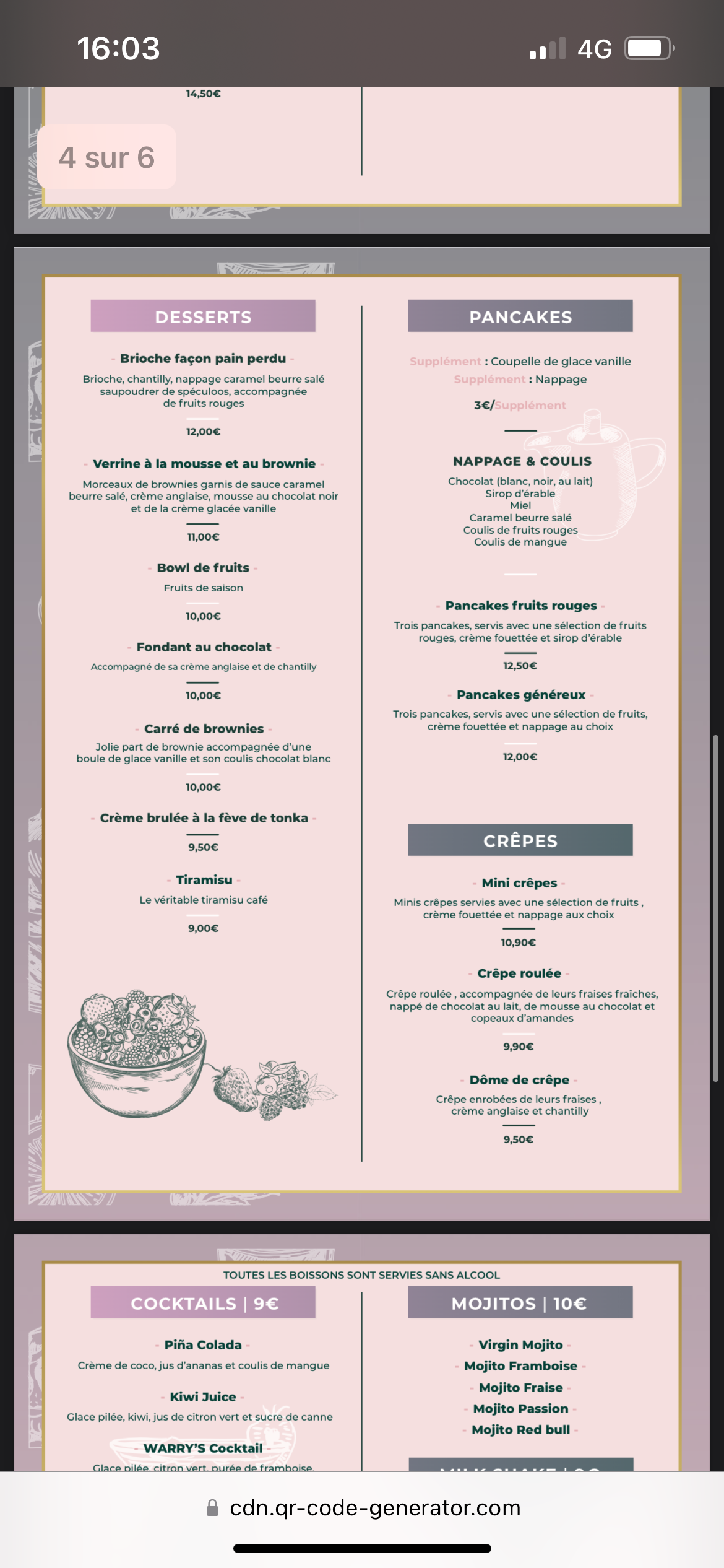 Bonjour, Aujourd’hui, le 05/11, on nous demande de payer à l’avance car ils ont peur qu’on mange et on s’enfuie! Deuxièmement, j’ai commandé le dessert ma fille et moi dès puncake nutella, comme c’est arrivé en retard et nous étions pressées pour partir, j’ai demandé juste une serviette ou barquette pour mettre notre dessert, La serveuse a refusé catégoriquement et je suis sortie avec mes 6 puncake dans mes mains même pas une serviette à l’heure qu’il pleut des cordes, service nul de chez nul, alors que nos voisins du quartier, je ne les recommande pas du tout, je suis vraiment déçu de leur service et de plus le fait parler au client méchamment, et payer une addition de 110 euros !!!!! Vraiment dommage