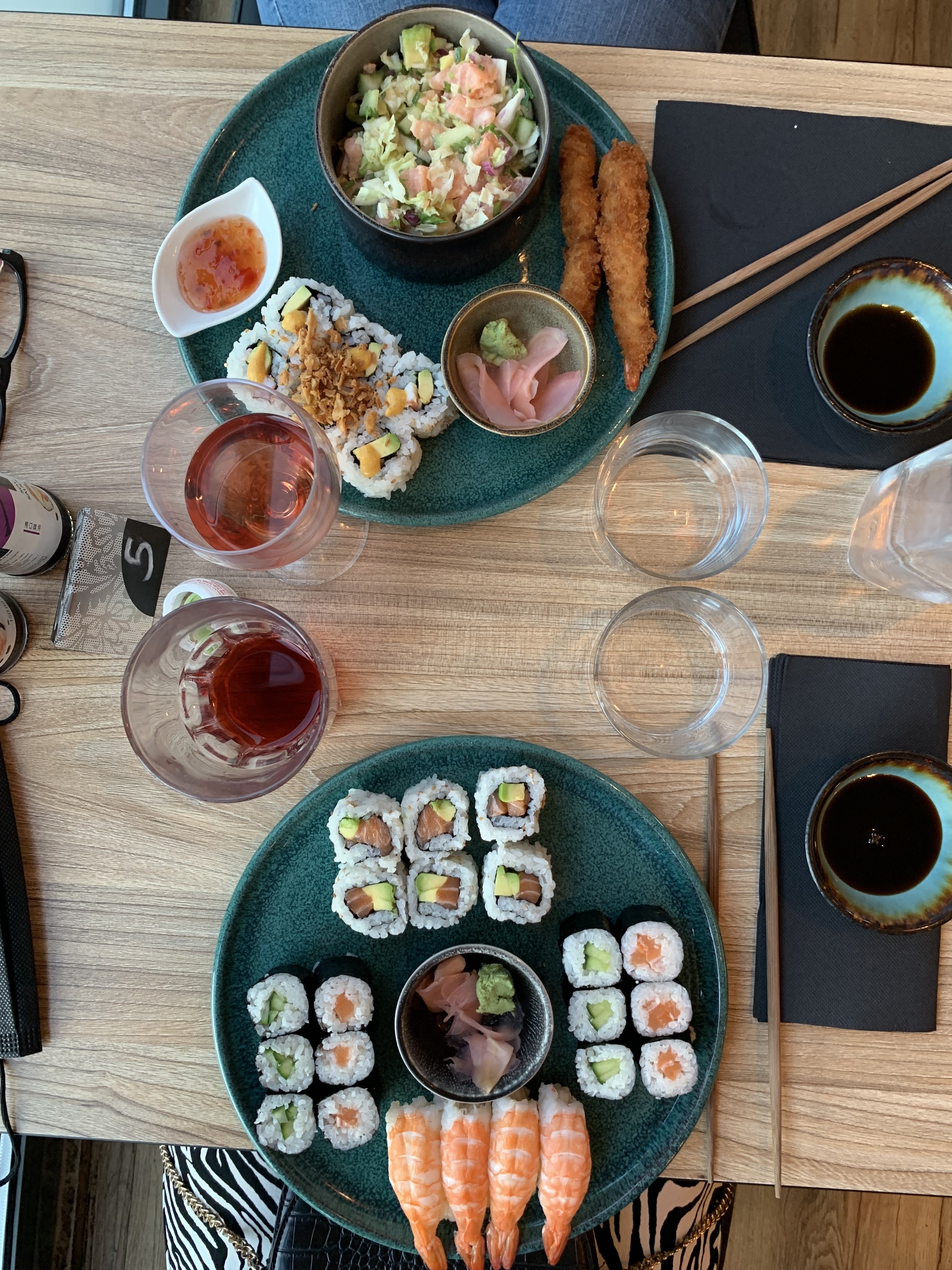 Lieu sympa mais étriqué. L'accueil agréable. Les sushis sont bons mais je prendrai à emporter la fois prochaine car le restaurant ferme à 21h30 on nous la bien fait comprendre, pour une soirée entre copines c'est un peu cours.