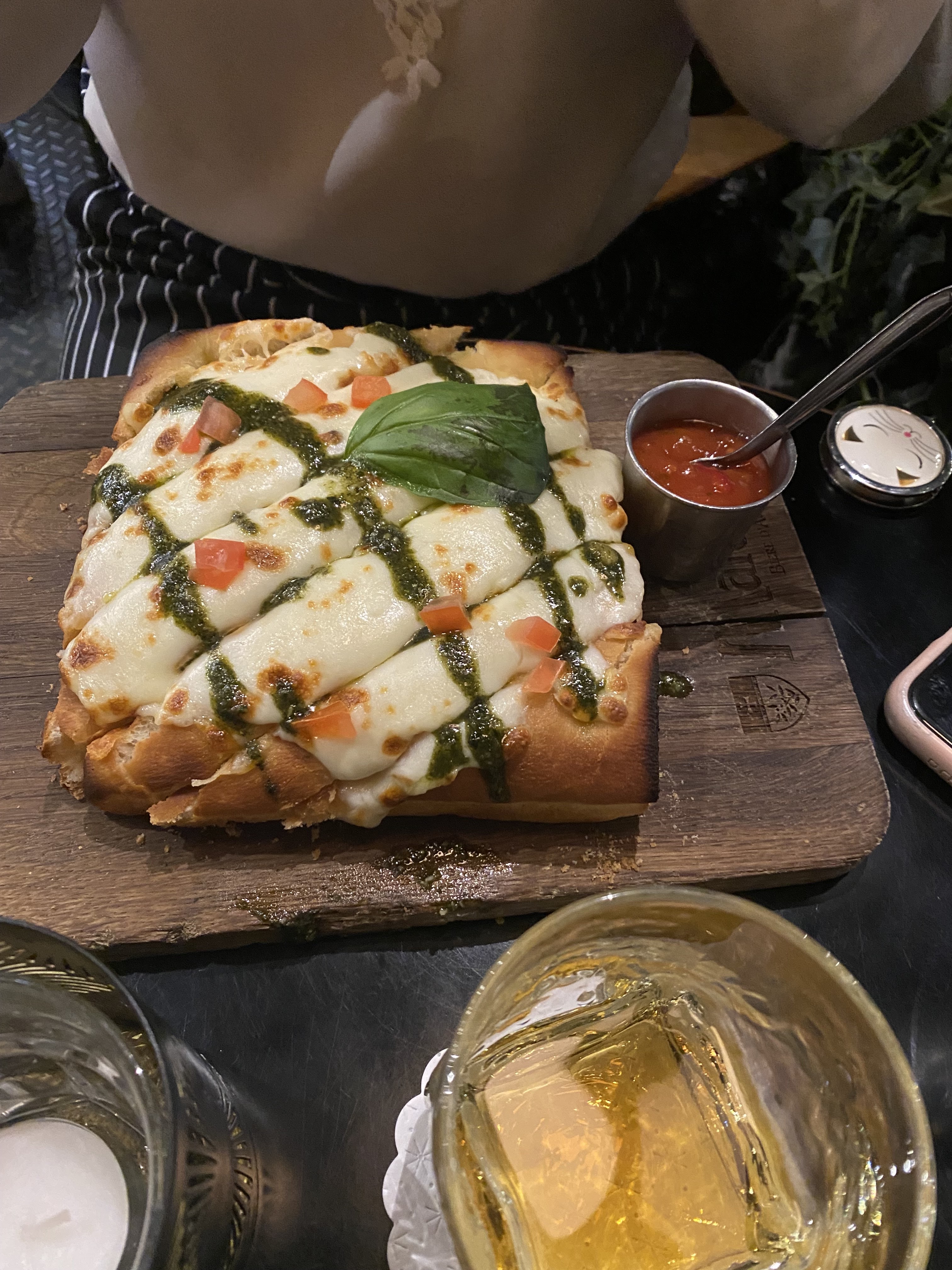 Service super sympa avec les serveurs qui sont forts en service client ! Les cocktails sont excellents et les recommendations superbes ! N'hesitez pas de demander même pour un cocktail hors menu, les variations fait par le barman sont à tomber. Pour un petit faim (snacks) le pizza (taille d'une petite tablette) et les frites maison sont au moins sympa (pour les nachos il manqait peut-être un peu de la bonne guacamole et du cheddar). Excellent service with waiters who actually are strong in customer service! The cocktails are amazing and the recommended ones are really great! Don't hesitate to even ask for a cocktail that is not on the menu, the variations of the barman are heavenly. For the snacks the pizza (size of a small tablette) and the homemade fries are at least nice (the nachos could have had more of the good guacamole and cheddar cheese).