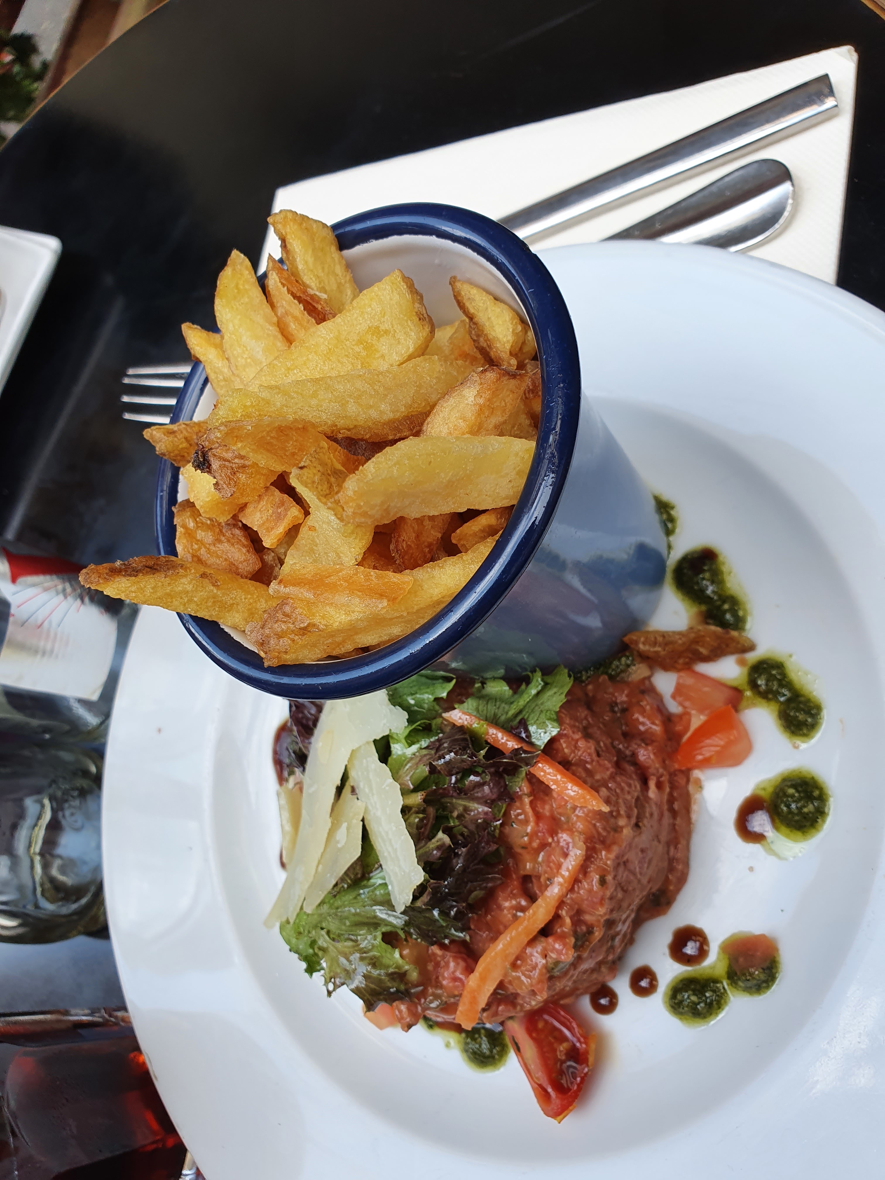 Brasserie très sympa et à ma grande surprise un Burger digne de ce nom,un bon steak qui a du goût , une escalope forestière avec purée maison ,plat qui a fait le régal de ma belle fille et une double Burger que mon beau fils a dévoré. Très bonne adresse ,les serveurs sont débordés, normal,vu l emplacement mais super réactif et très agréable. A recommander
