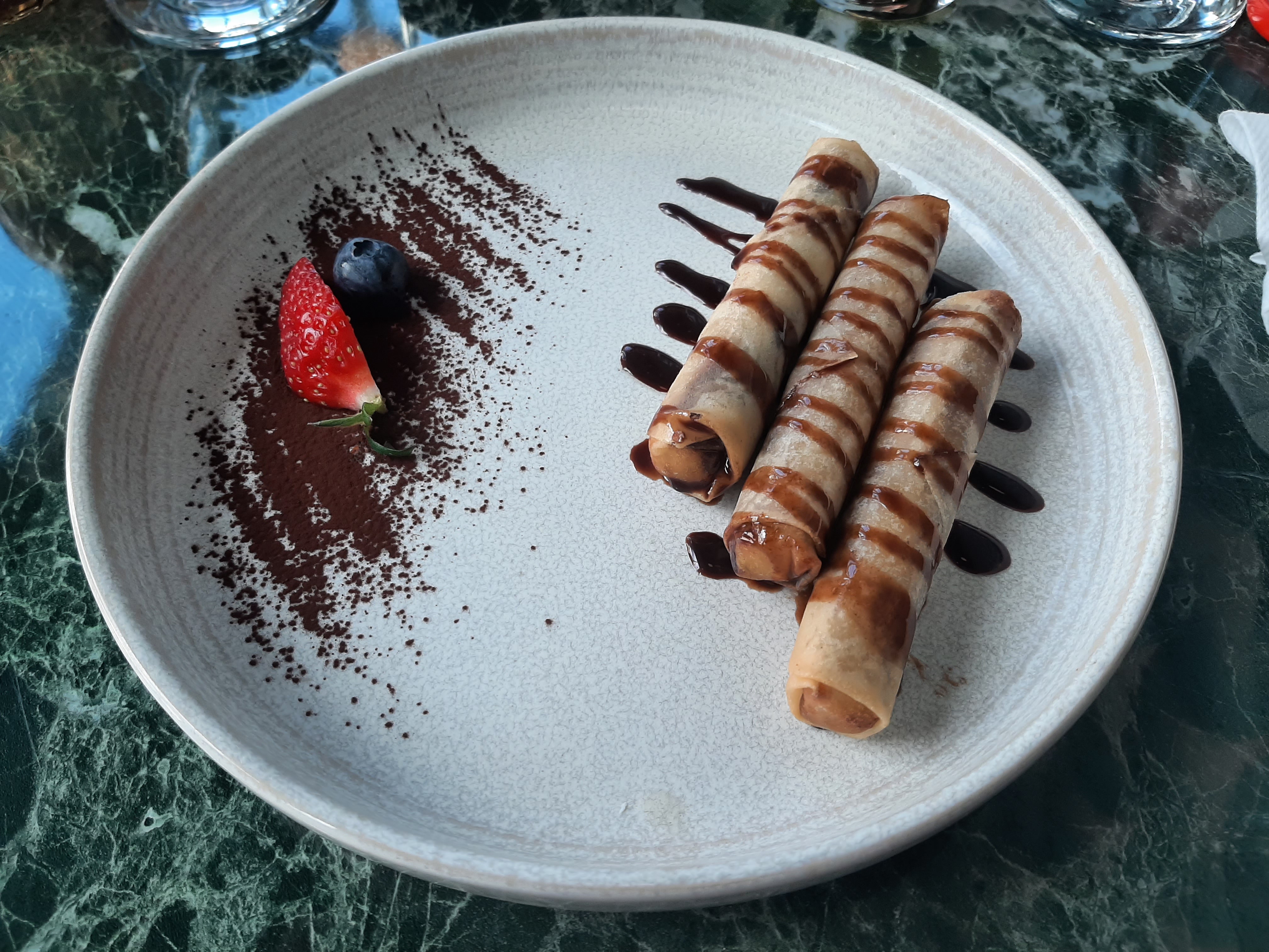 J’ai pris un poulet au curry la cuisson était parfaite en dessert nem gourmand fait maison j’ai adorée