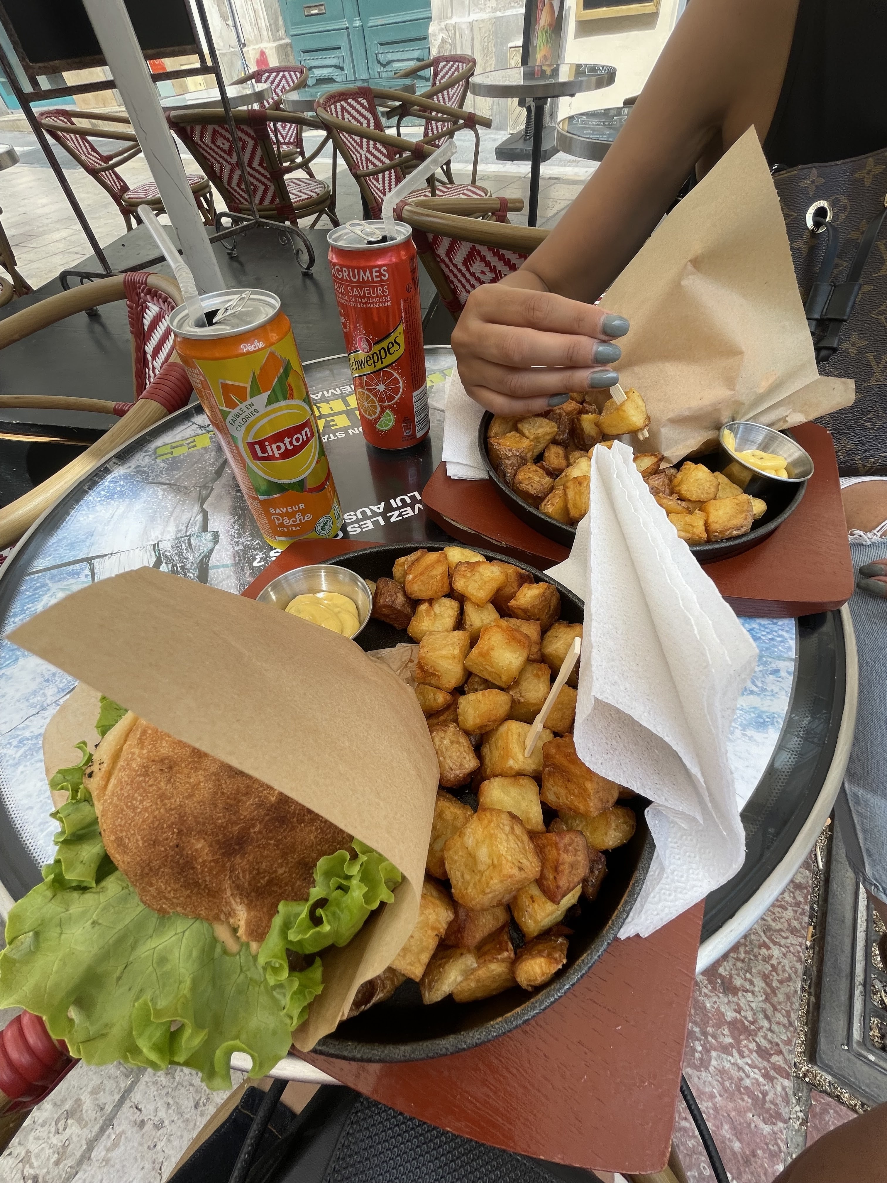 Nous avons passé une commande pour un menu montpelliérain, comprenant des frites sautées, un burger et une boisson. Cependant, à la fin, nous avons reçu un burger avec quelques frites surgelées vraiment un peu c’est pas du tt comme la photos . J'ai également payé 0,50 centime pour avoir des épices sur les frites, mais cela n'a pas été fait. En d'autres termes, j'ai été arnaqué De plus, lorsque j'ai demandé le mot de passe du wifi, elle n'avait pas l'air accueillante. après qaund j’ai parlé avec elle elle m’as dit bah faut revenir pour goûter les frites sautées bien arnaquess