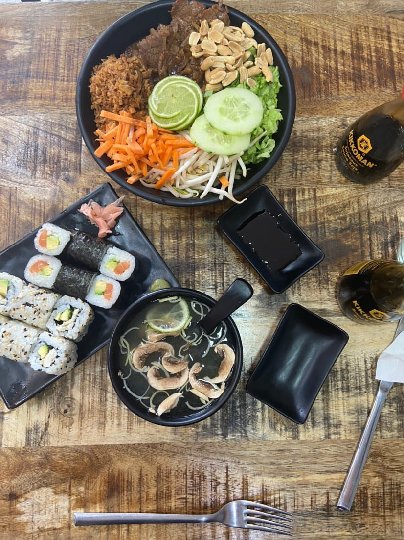 Le riz des California était trop cuit. Le California Deluxe au basilic je ne recommande pas. Le thaï riz trop gras, sensation de manger de la mal bouffe. Sauce plutôt pas mal Je ne recommanderai pas mais j'espère que cet avis sera utile