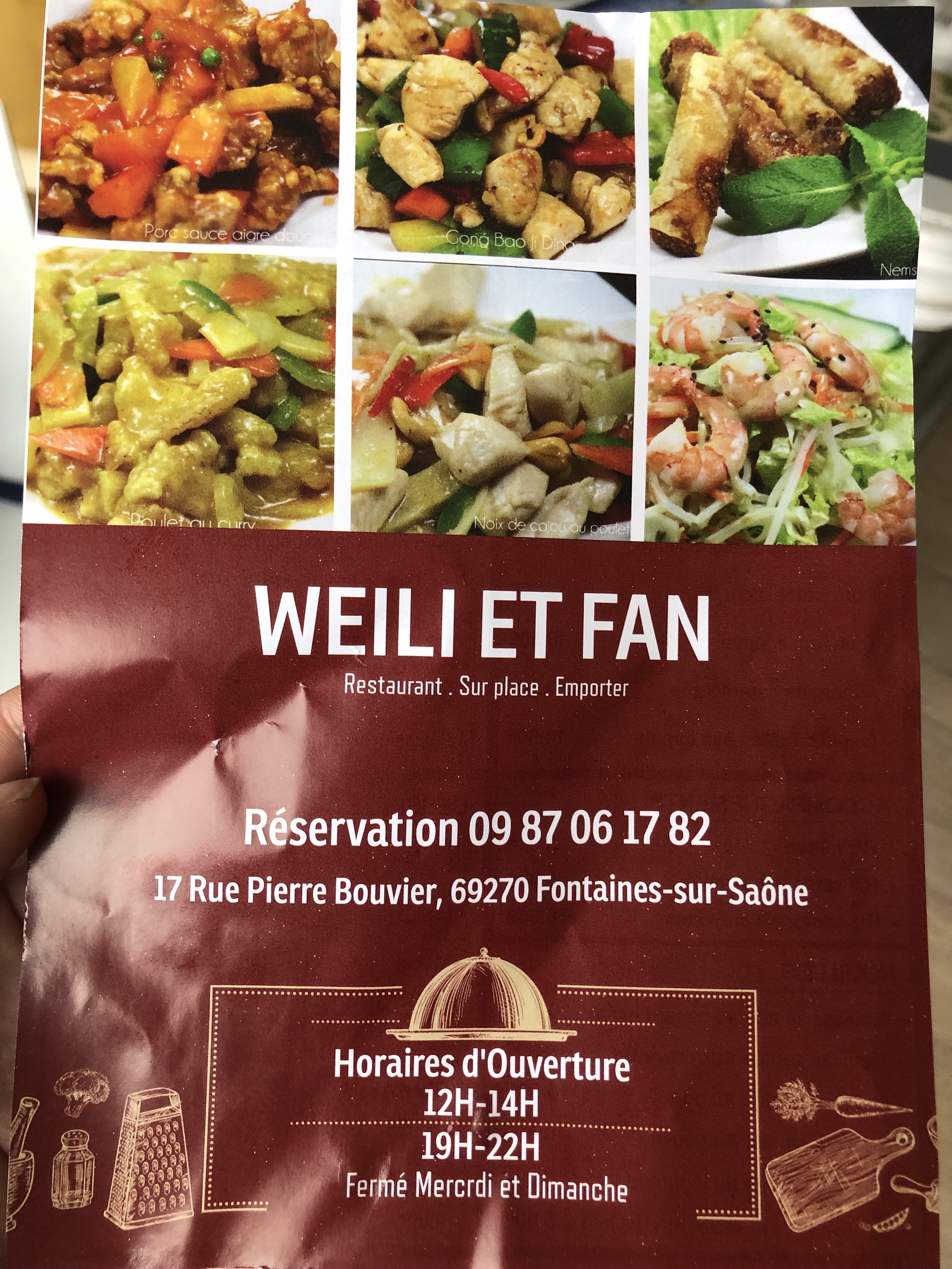 Si vous en avez marre des buffets chinois insipides, gras et tiédasses, allez chez Weili et Fan. Très bonne cuisine maison avec cuisine ouverte qui en diffuse les parfums, aucun problème de fraîcheur et nous avons (à 5) pratiquement tout essayé, des nems aux bouchées vapeurs en passant par le canard laqué, tout est délicieux, le service attentif et charmant, et la carte est à un prix très raisonnable. Cela m'a réconcilié avec la gastronomie chinois en France :-)