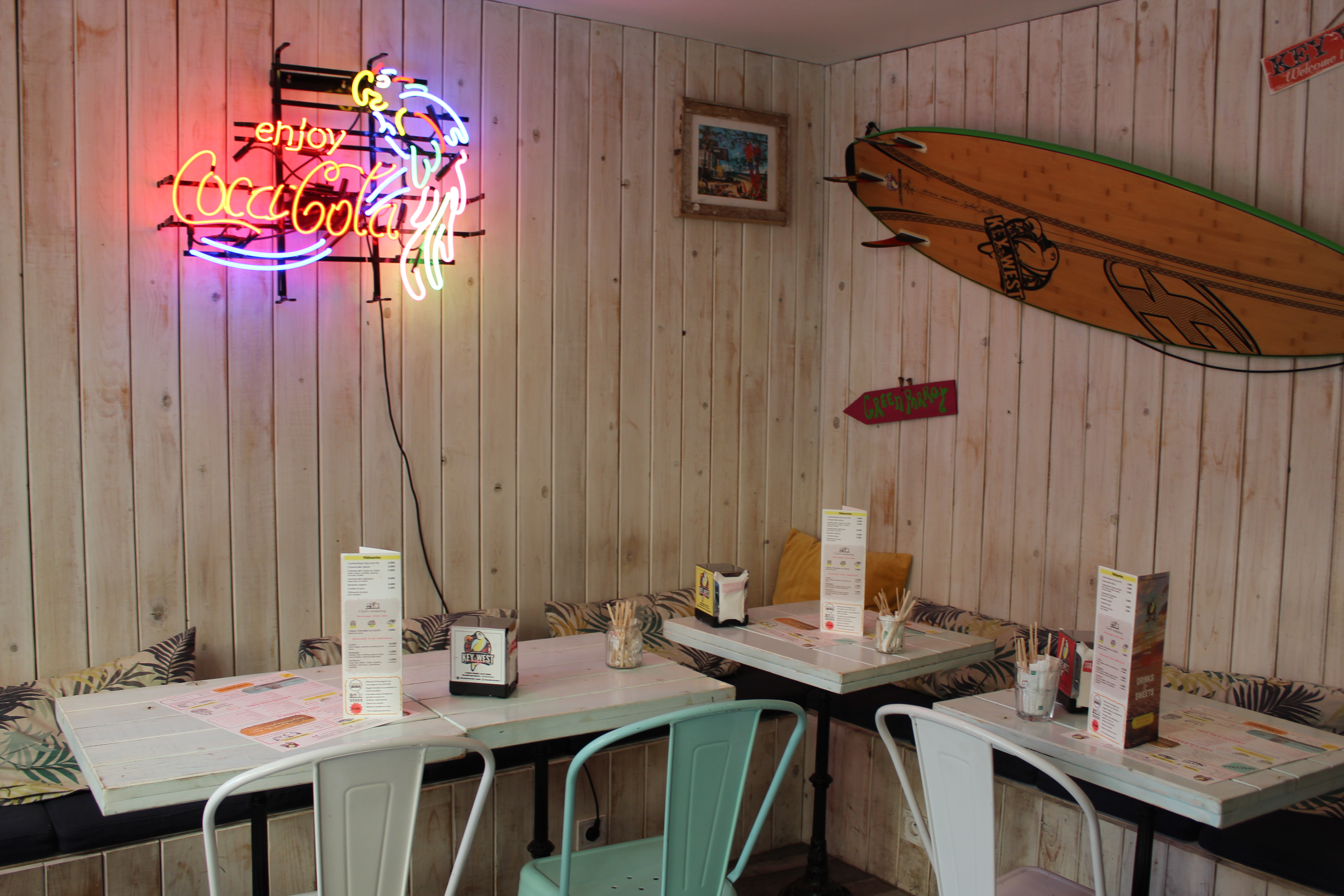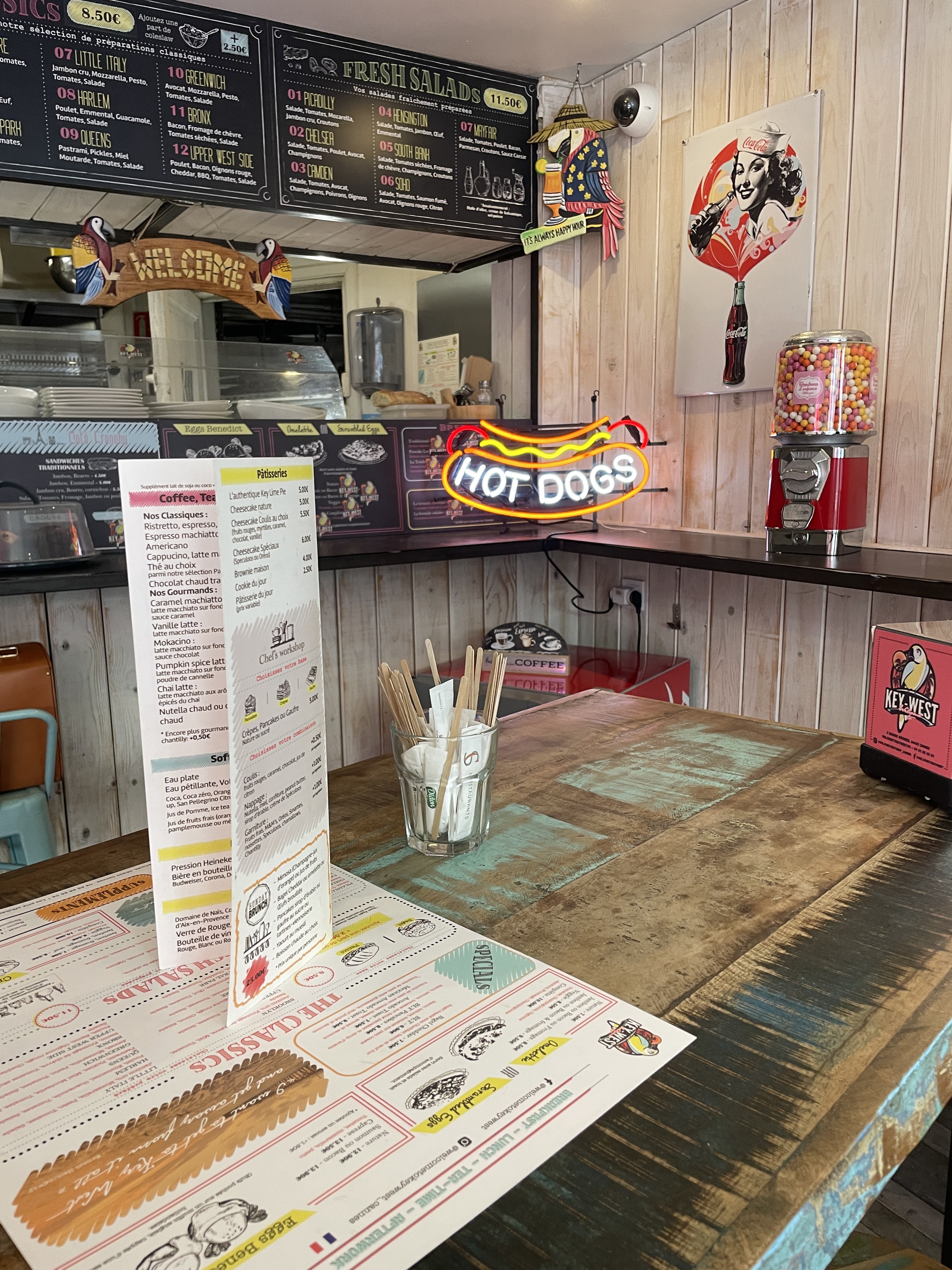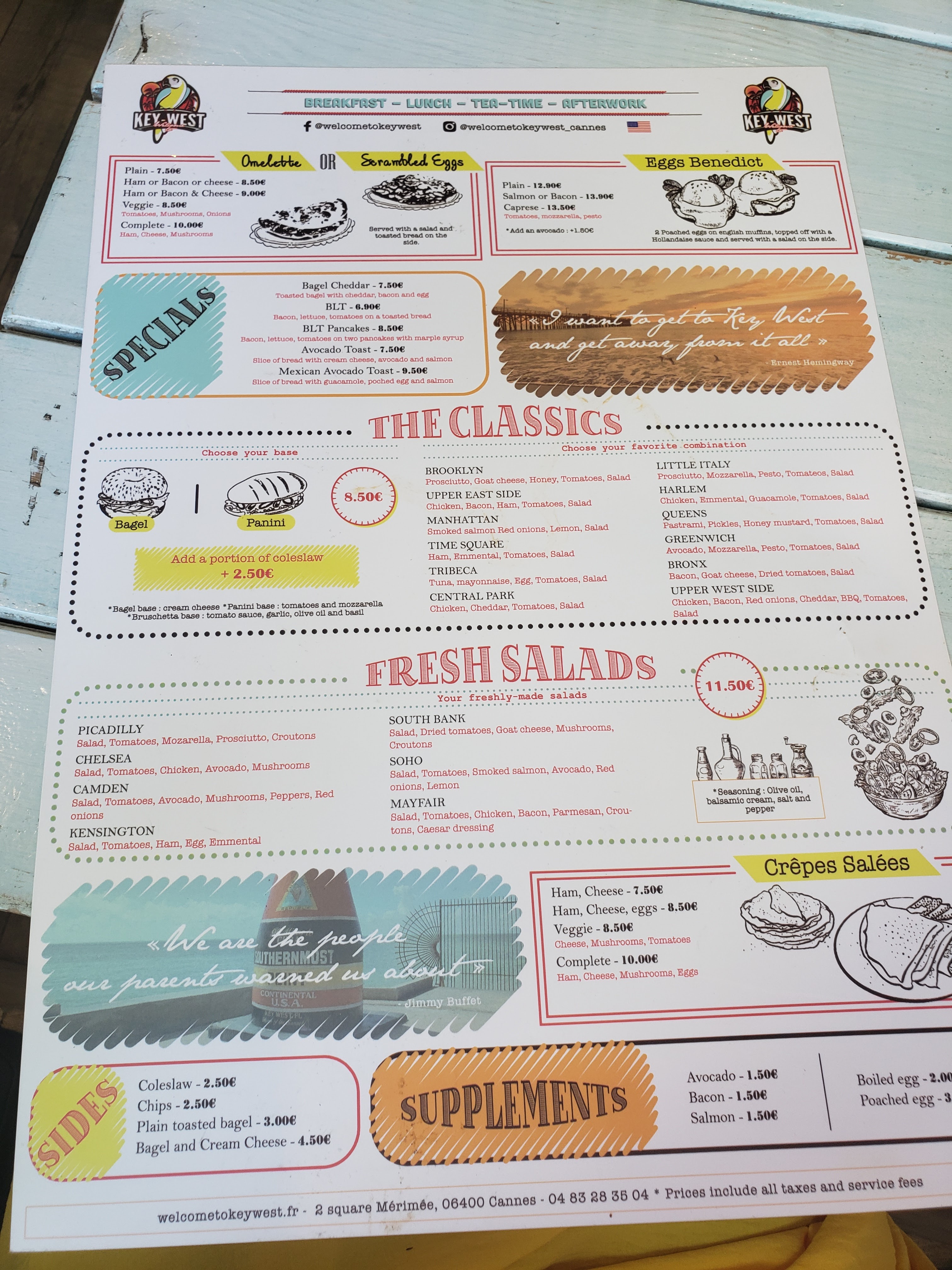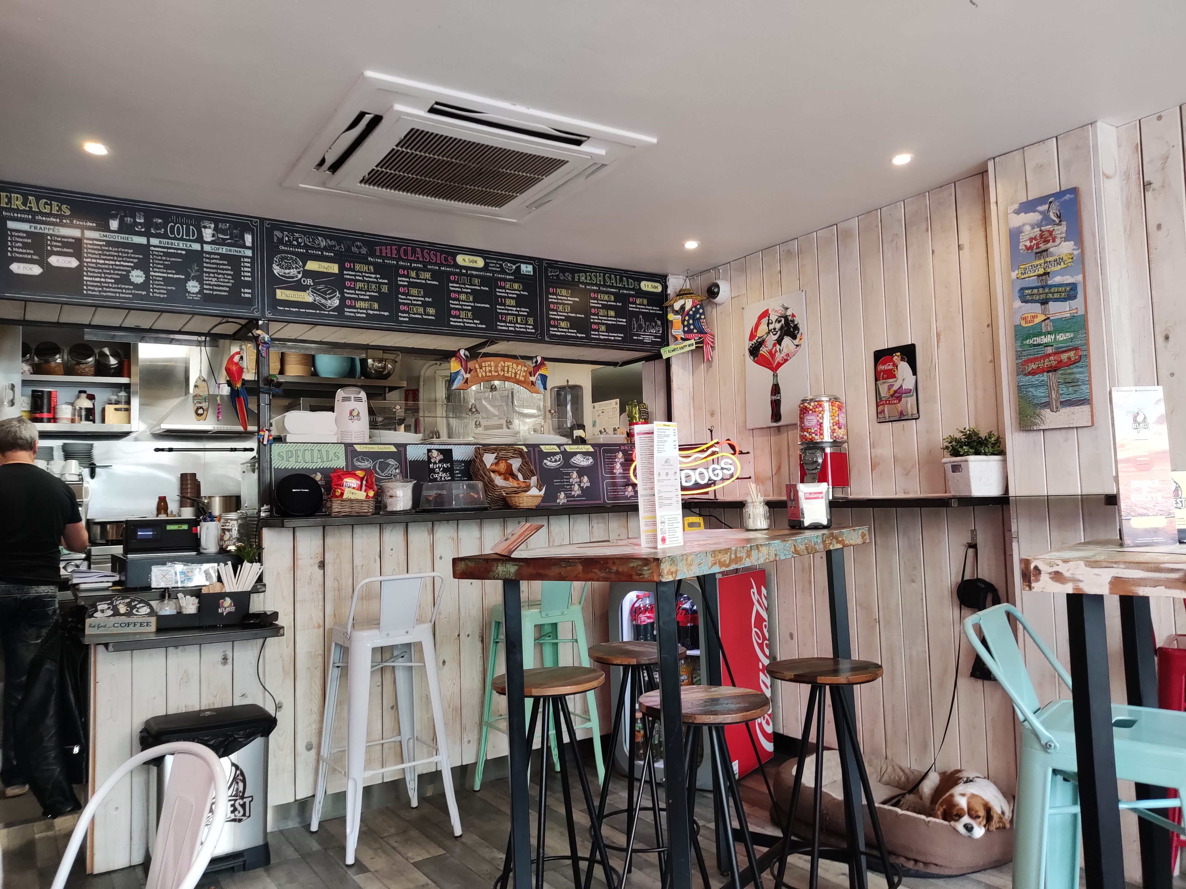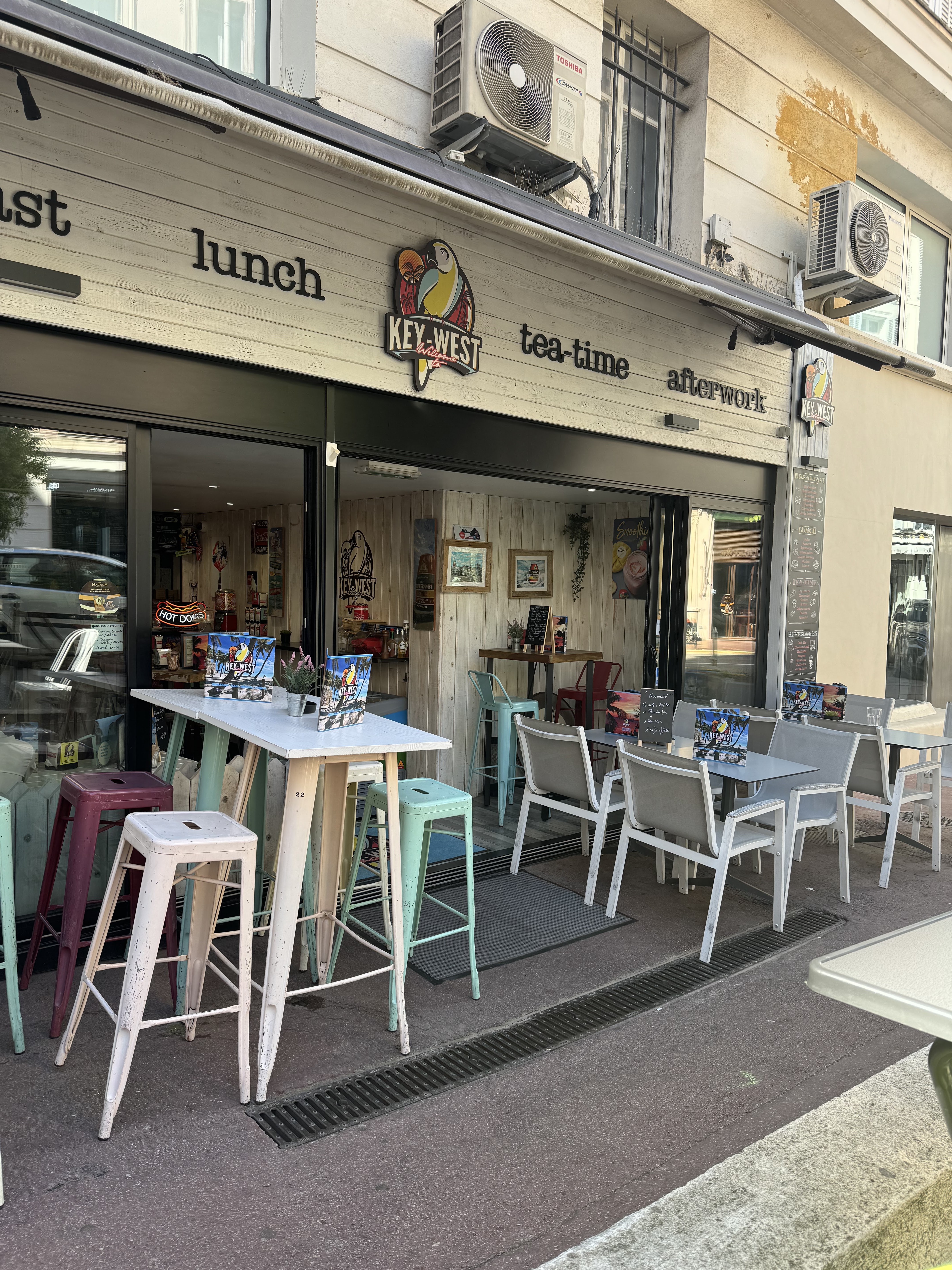 Excellent !!! vous ne pouvez venir à Cannes sans passer au Welcome To Key West...vous trouverez un super Accueil et d'Excellent Bagels, les Pancakes et crêpes Délicieux, et sans oublier la key lime pie plus qu'Excellente. Je vous recommande cet androit Très Très Agréable et Chaleureux....