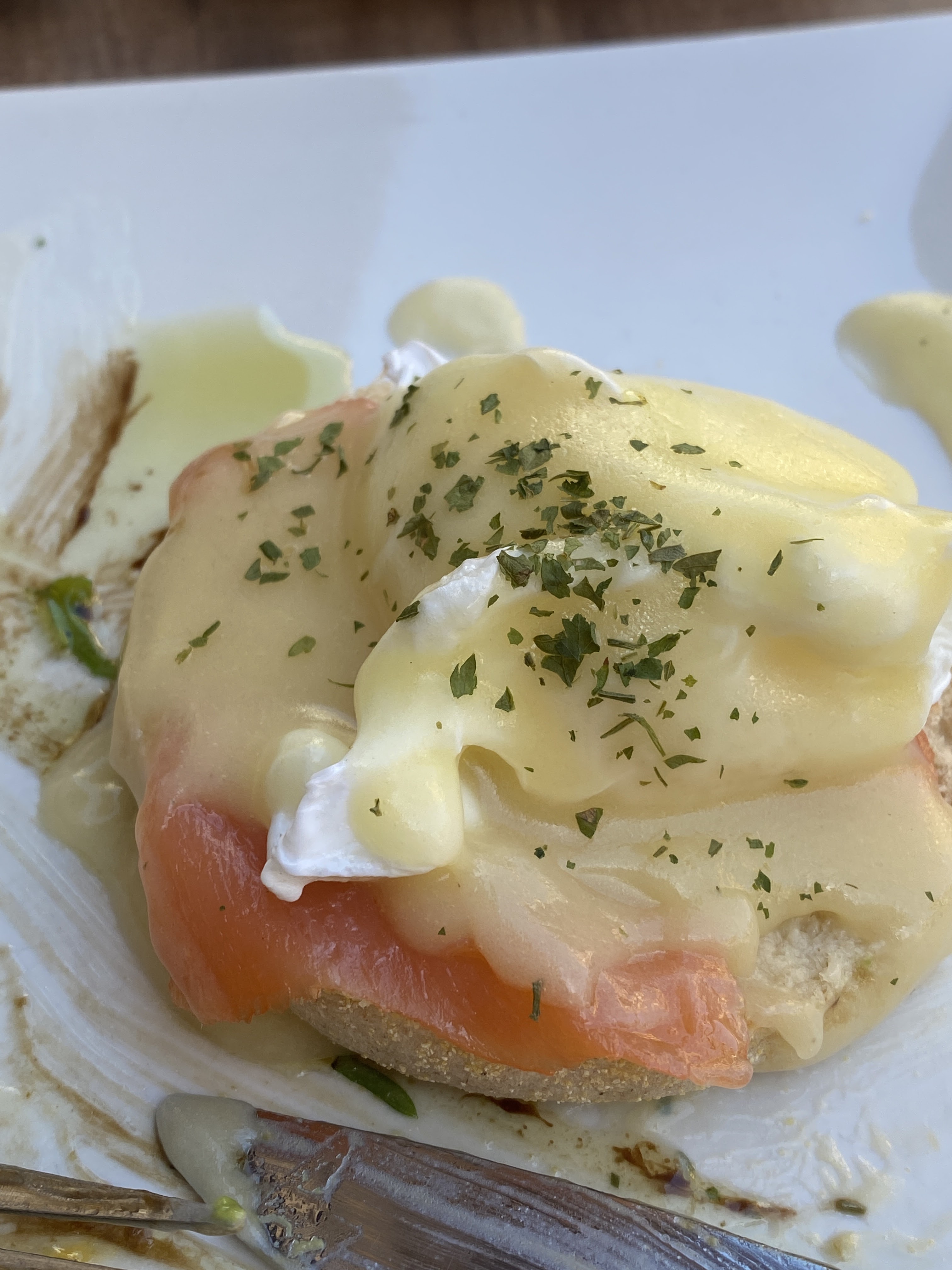 Très potable ! J’ai mangé un œuf Bénédicte au saumon avec de l’avocat, c’est un de mes petits déjeuners préférés, il était réussi. Rien d’extraordinaire, mais très bon quand même ! Pareil pour l'omelette végétarienne, rien d’extraordinaire mais bonne. Par contre, j’ai pris un café glacé qui était à la limite du passable, un café à l’eau. Mais c’était suffisant. Le fait qu’il y ait une option lait végétal était très appréciable. Il y a eu une erreur dans le cappuccino avec un lait qui avait tourné, mais ils ont été réactifs et se sont excusés. Positif ! Rien à redire. Le personnel était adorable et souriant, ça fait du bien quand on veut prendre son petit déjeuner et joindre l’agréable de bon matin.