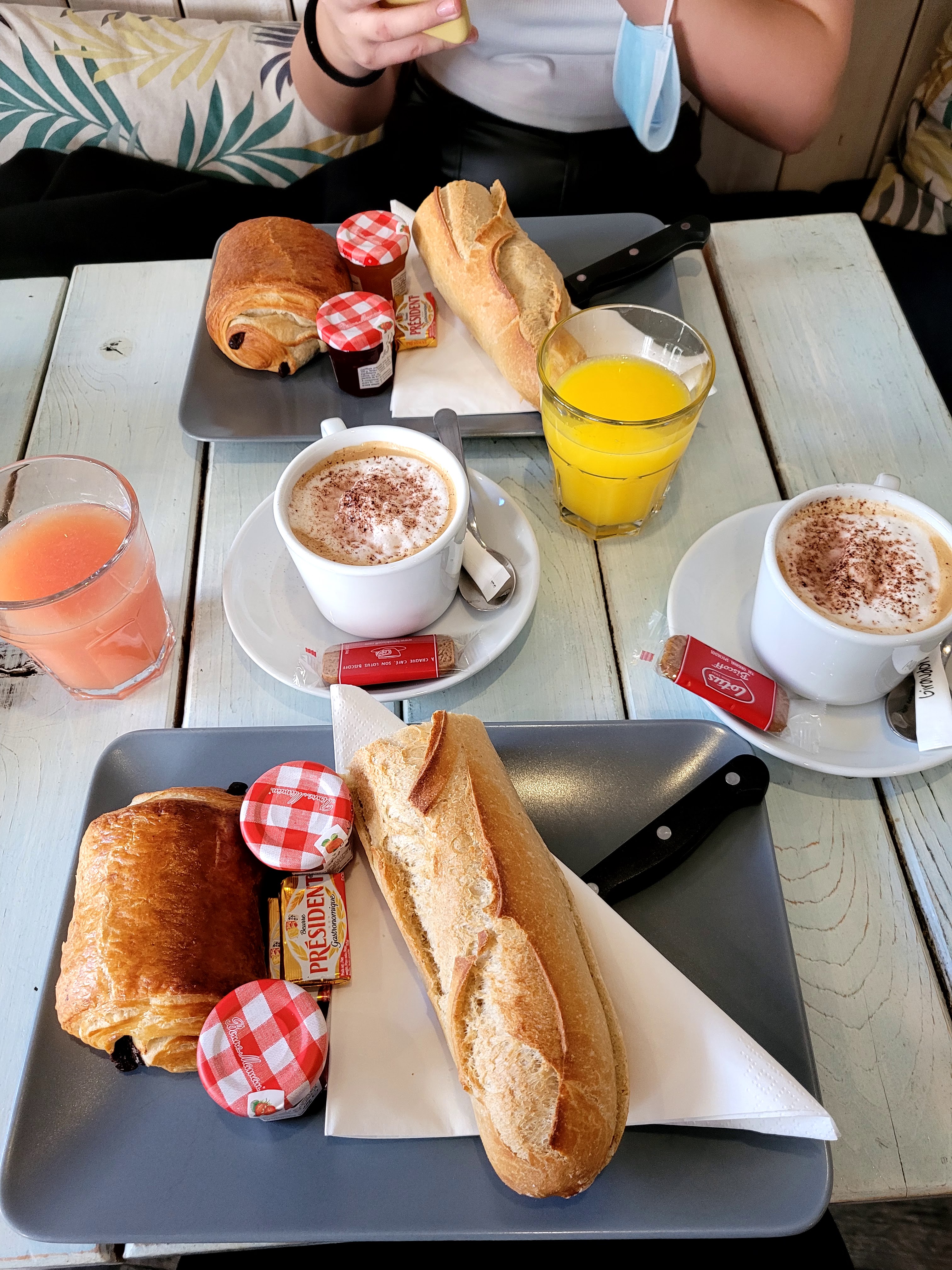 Menu petit déjeuner sympa quoi qu'un peu élève au niveau tarif par rapport à d'autre mais agréable tout de même. Dommage lors de la commande j'ai demandé si le cappucino était compris dans la formule la serveuse m'a confirmé que oui ...mais la note laisse apparaître 1e de supplément (sa collègue qui lui dit de l'ajouter) j'aurais aimé le savoir avant surtout que j'ai demandé