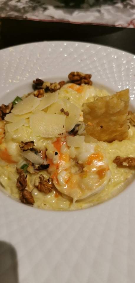 On mange bien c'est bon et frais petit risotto gambas chorizo gorgonzola un délice