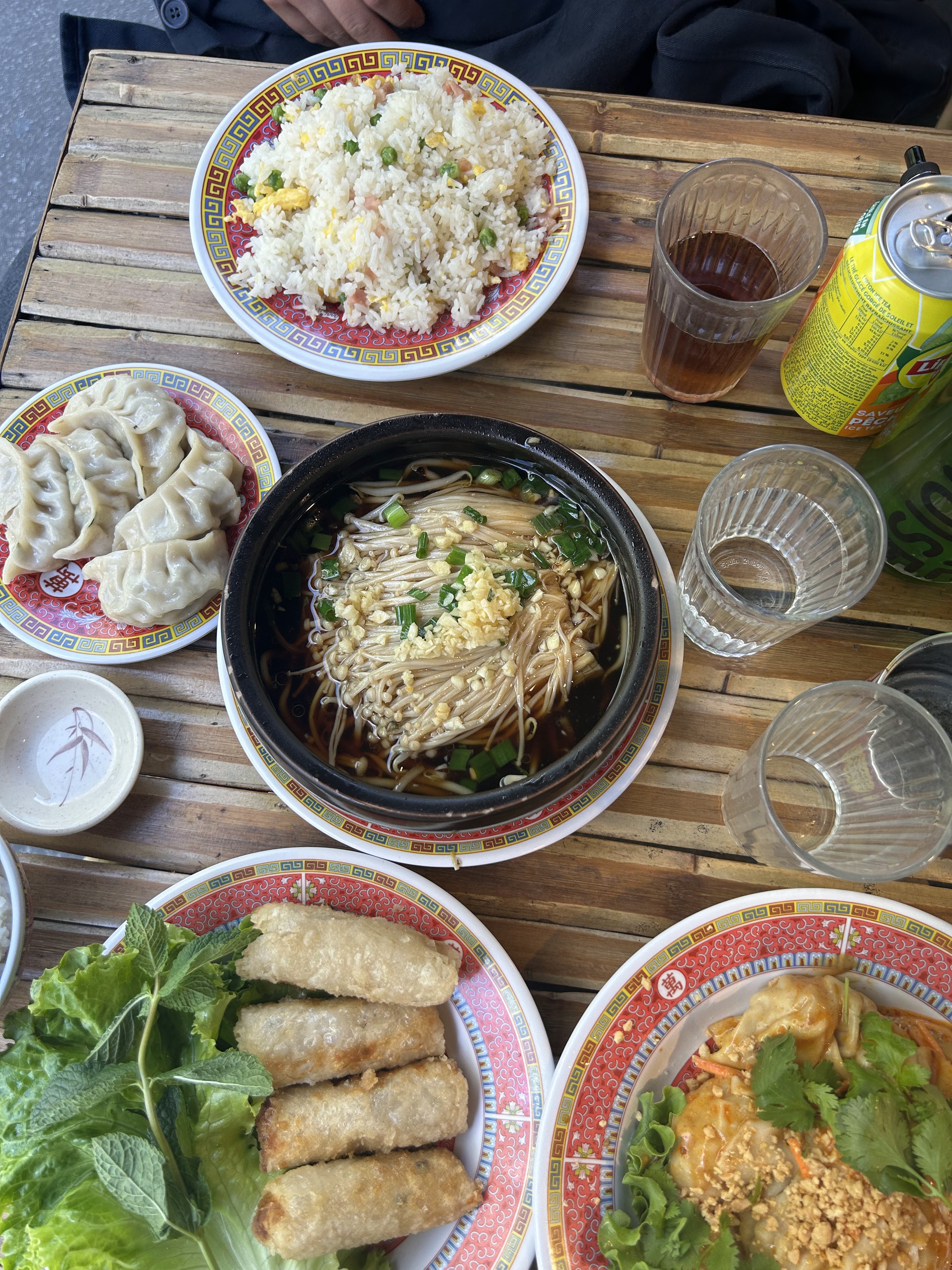 Pris en livraison. C était incroyable. Wonton, nem, poulet frit. Une belle découverte.