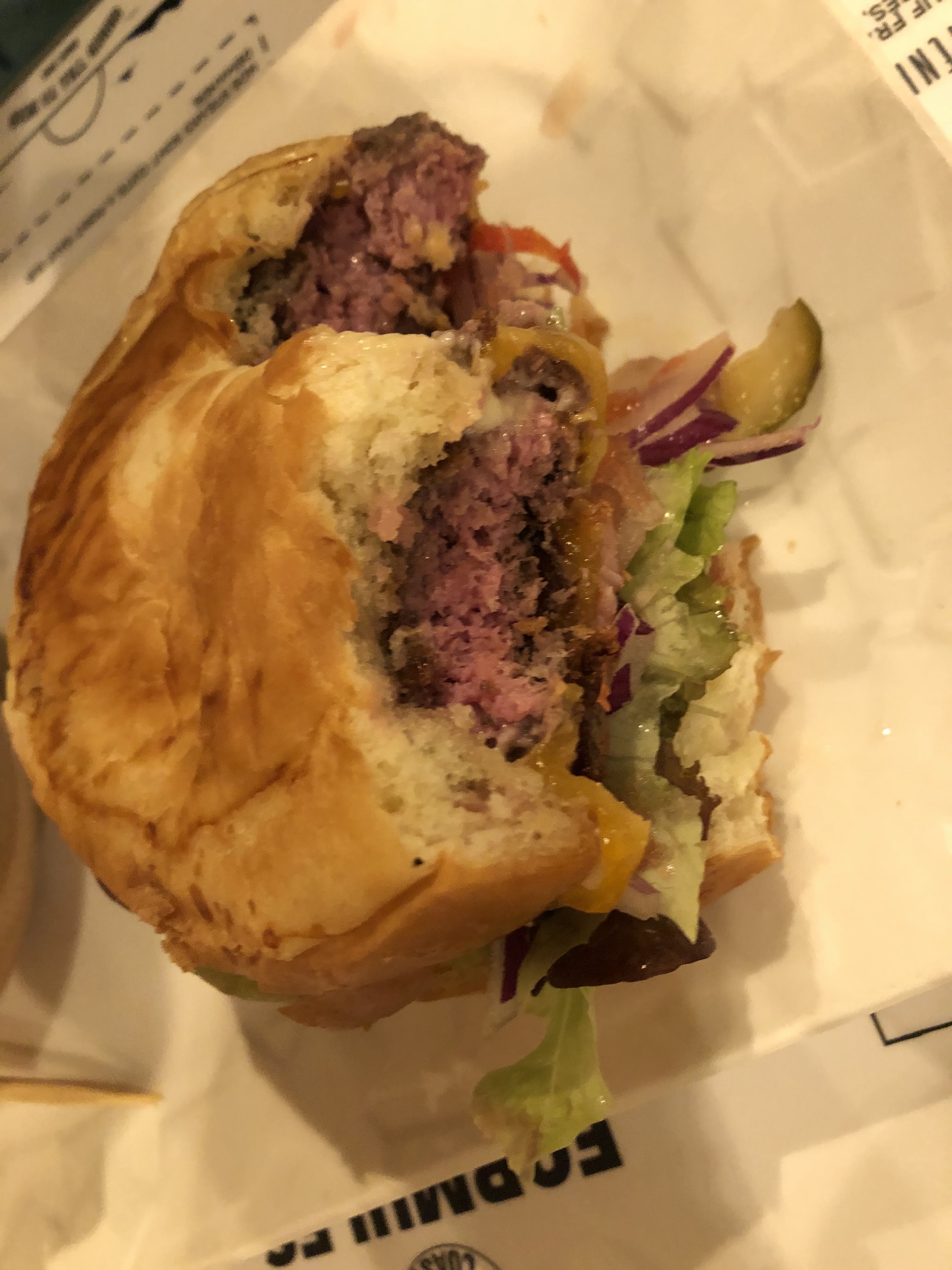 Très déçu... après commande prise le burger est finalement en rupture.. alors au lieu de se présenter et d’expliquer là situations c’est mieux de filer un sandwish autre... ma Compagne étant allergique au cheddar à faillit croquer à pleine de dents .. doit on risquer une soirée aux urgences’ pour un mauvais burger (cher pour la presentation et le goût ) ?