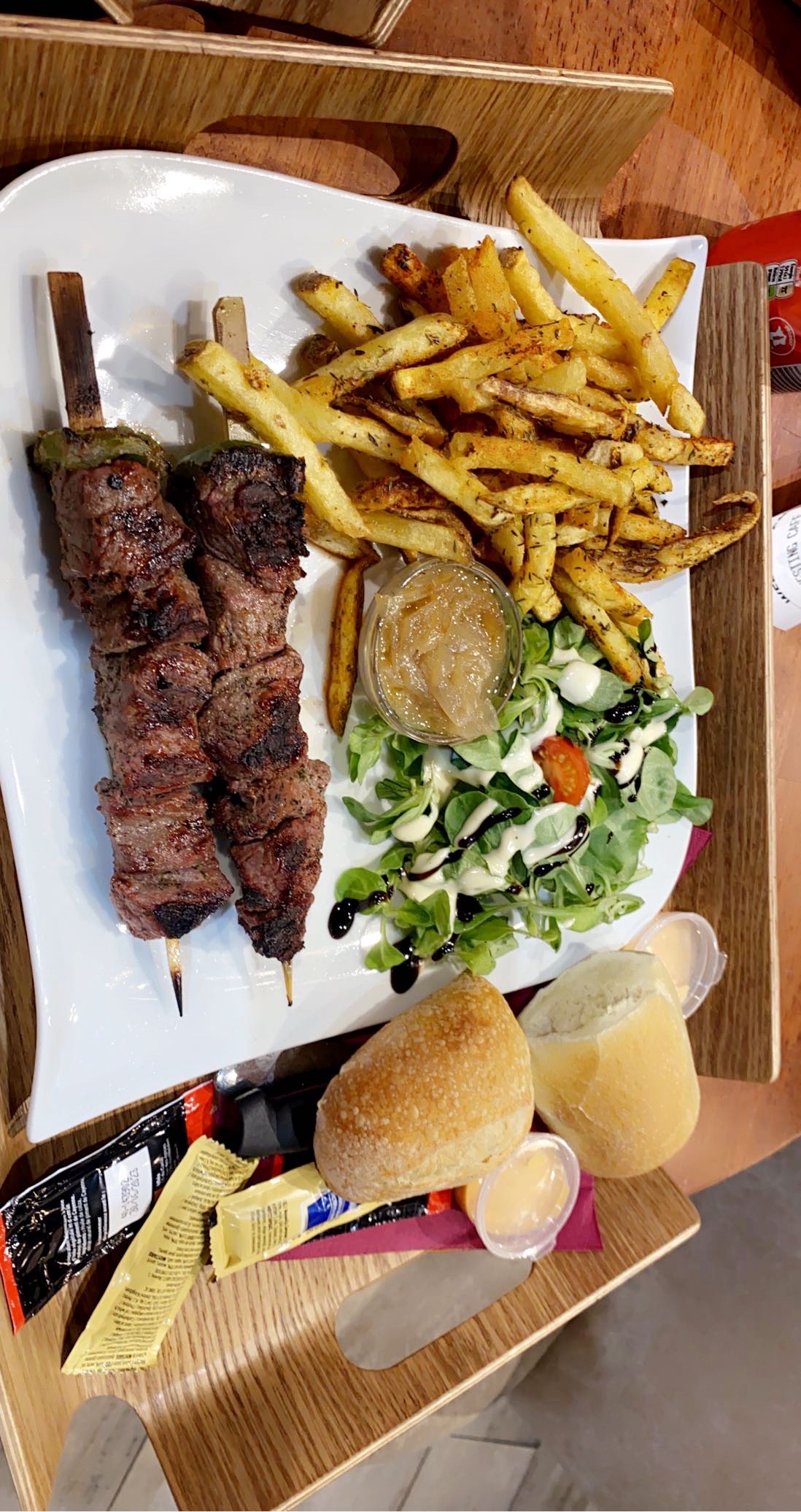Un vrai repas, pour pas cher. Mon plat préféré est les brochettes mixte, 1 poulet 1 bœuf, très bon. Je recommande
