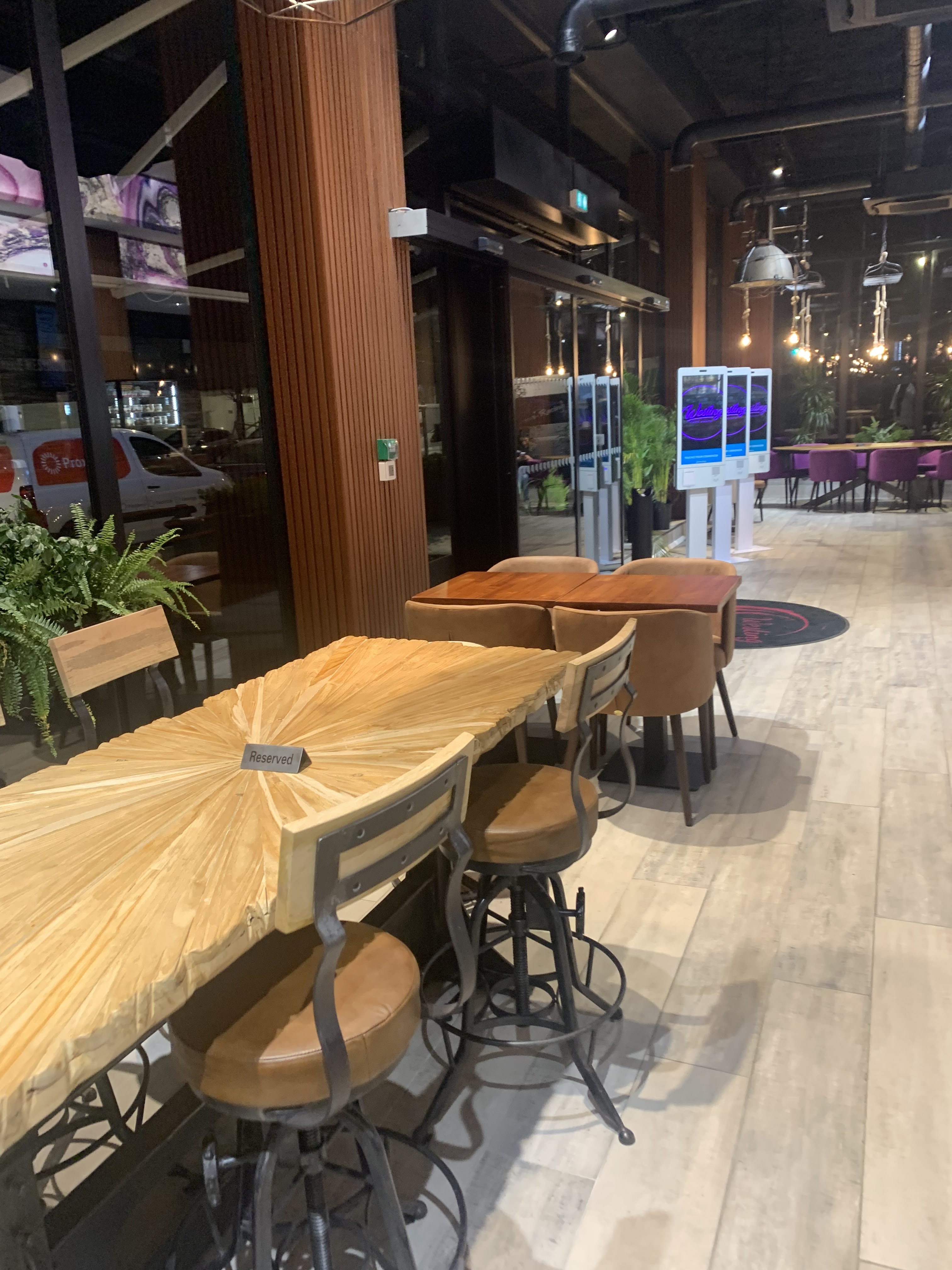 Très beau restaurant, soigné et belle déco On commande via des bornes puis on attend les commandes. Divers plats, burger, pizza, salades ect... L attente n est pas très longue Première visite dans ce reste, il est plutôt pas mal Accessible pr les personnes à modibilite réduite, siège bébé dispo Les repas sont bons mais le prix un peu cher pour la quantité proposé Pas de parking et très difficile de se garer aux alentours Resto hall
