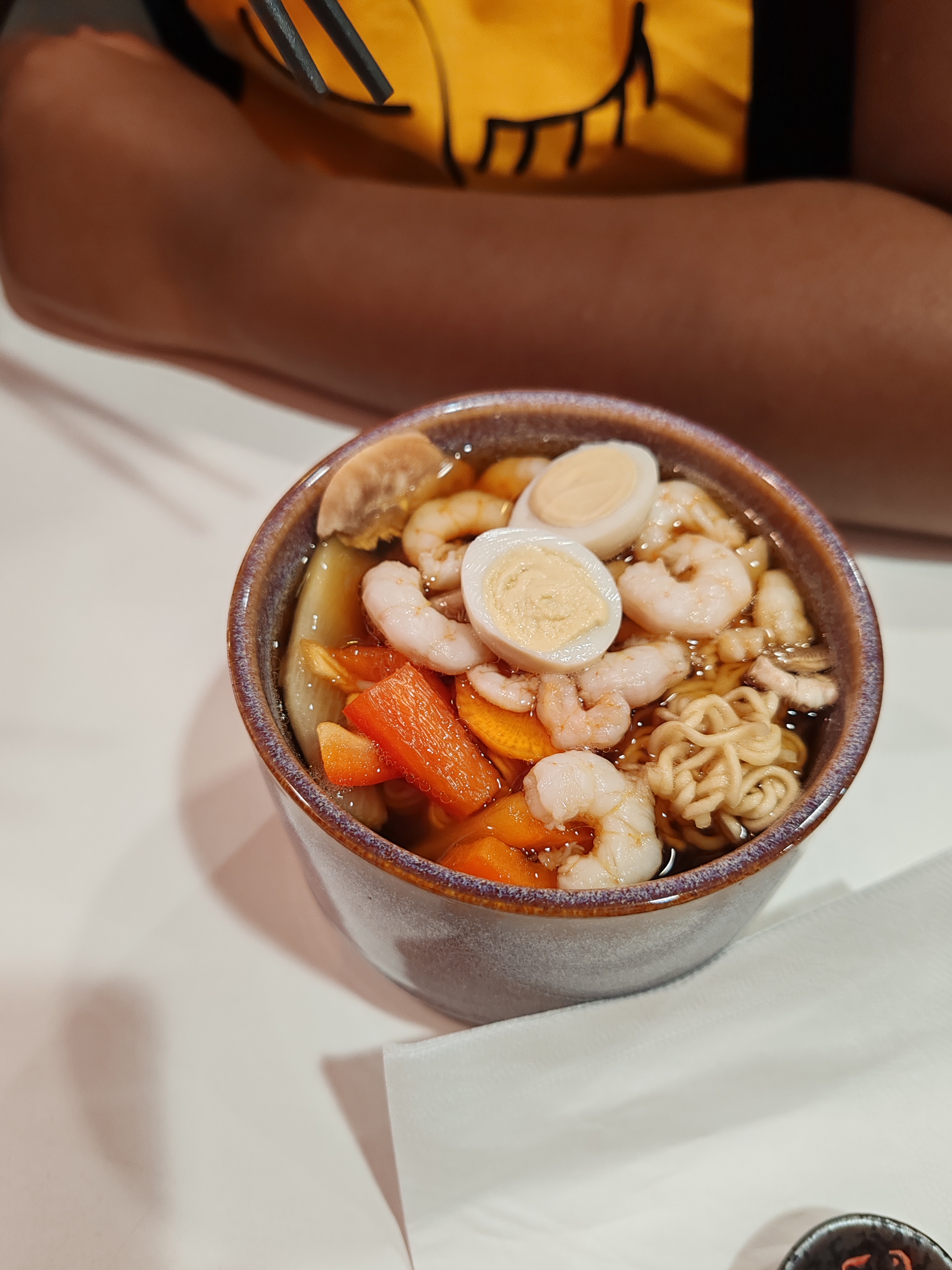 Parfait pour un déjeuner sur le pouce ! Les basics bien faits, très réconfortant. Les légumes dans le noodle cup mériteraient d’être un peu plus cuits quand même. Très bon mochis faits maison avec plein de saveurs disponibles ! Un régal d’en trouver au sesame noire + pâte de haricot blanc, et matcha + haricot rouge. Super rapport qualité prix dans un cadre atypique.