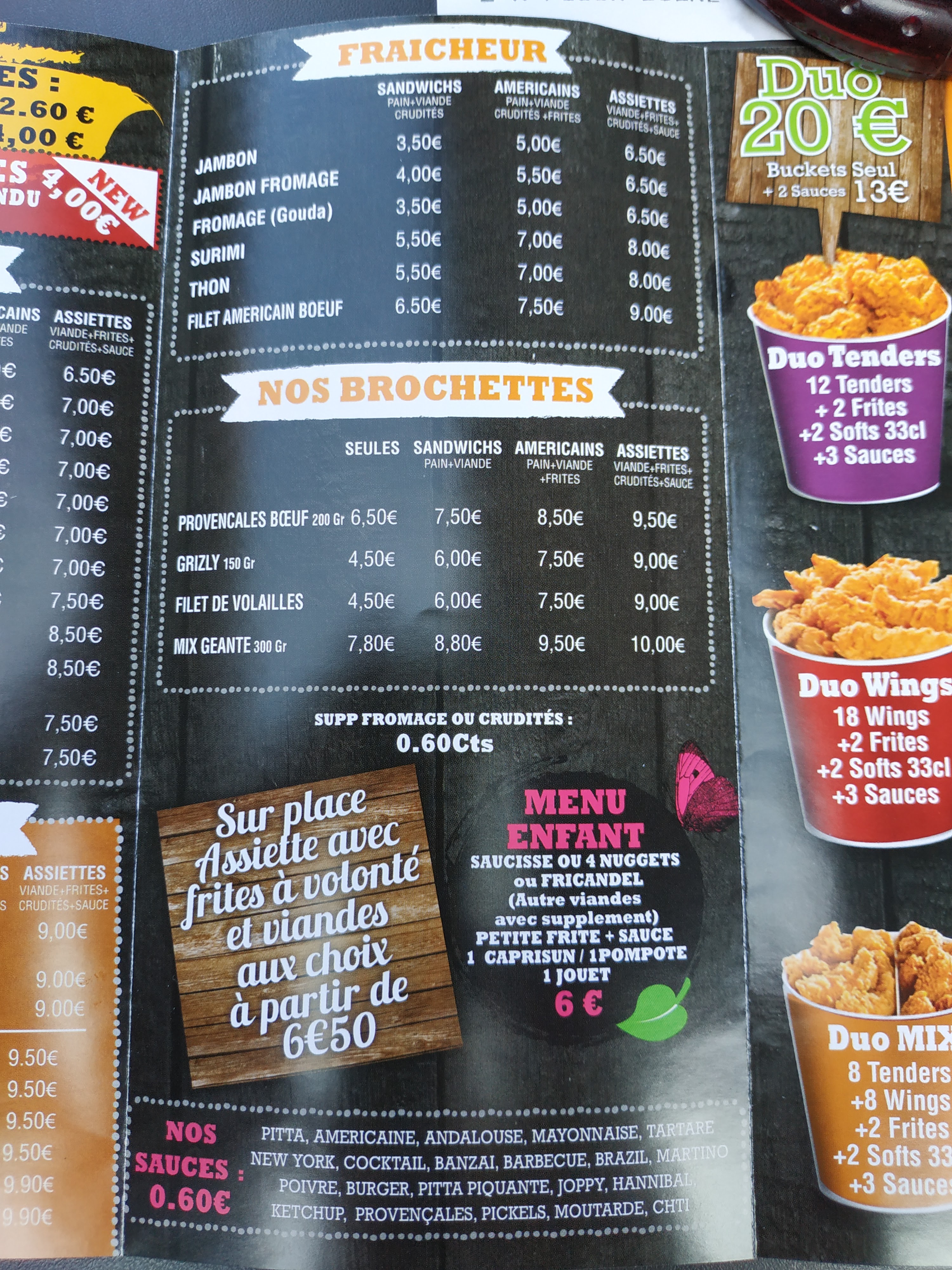On est aller chez Willy frites hier soir en sortant du valjoly on a du attendre 45 min avant d’être servis mon ami a demander un américain kebab sans crudités ils ont quand même réussi à mettre des crudités la boulette a l’ail était ignoble on a demander boulette nature ils nous ont mit à l’ail les frites était plutôt bonne les sauces n’était pas les bonnes on demander andalouse ils nous ont mit Brazil. Bref à éviter même ma famille est malade après cela c’est très chère pour le peux de choses qui y’a