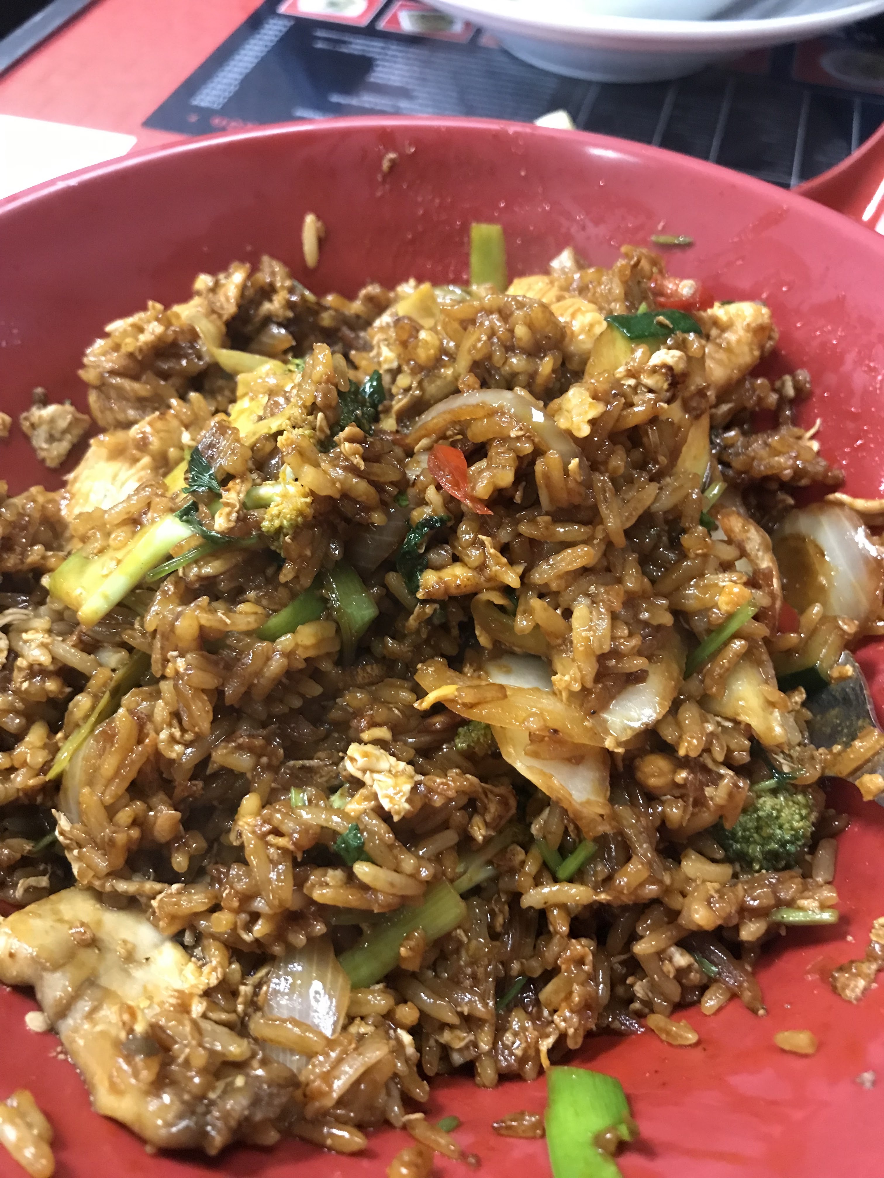 J'y suis allé il n'y a pas longtemps, j'ai eu le faire votre propre réveil (riz avec de la laitue, du brocoli, du porc, de l'ananas) et je ne m'attendais pas à ce qu'ils cuisinent l'ananas avec les autres ingrédients mais je suppose que c'était mon mauvais. dans l'ensemble, j'ai été très satisfait du plat, le prix était raisonnable. J'espère juste avoir plus d'ingrédients à l'avenir. Je recommanderais certainement cet endroit à d'autres.