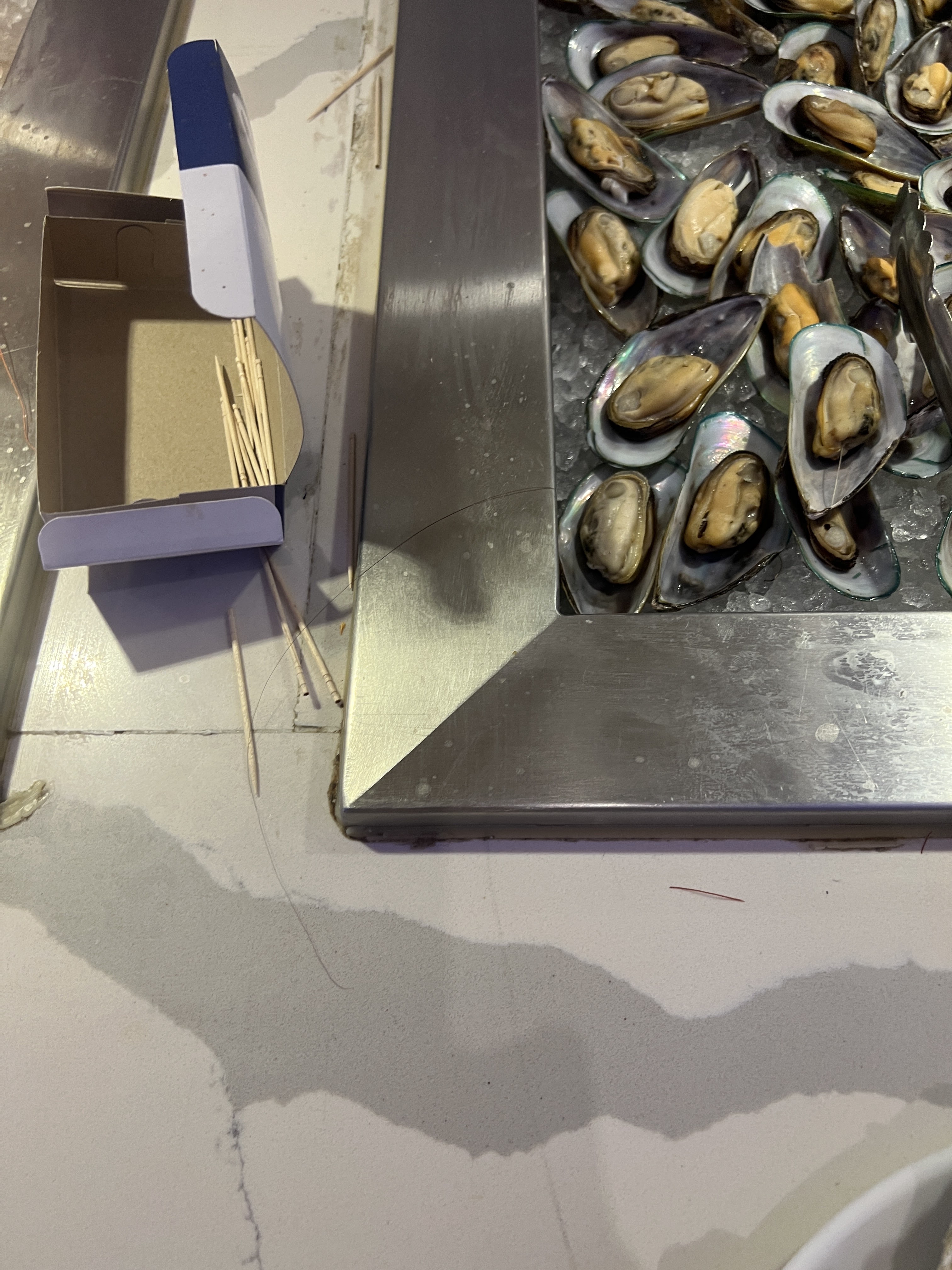 Point positif pour les huîtres mais sinon le reste… on dirait que tout est réchauffé du midi ……. Et des cheveux dans tout les plats j’ai l’impression….. ça m’a vraiment dégoûté ..