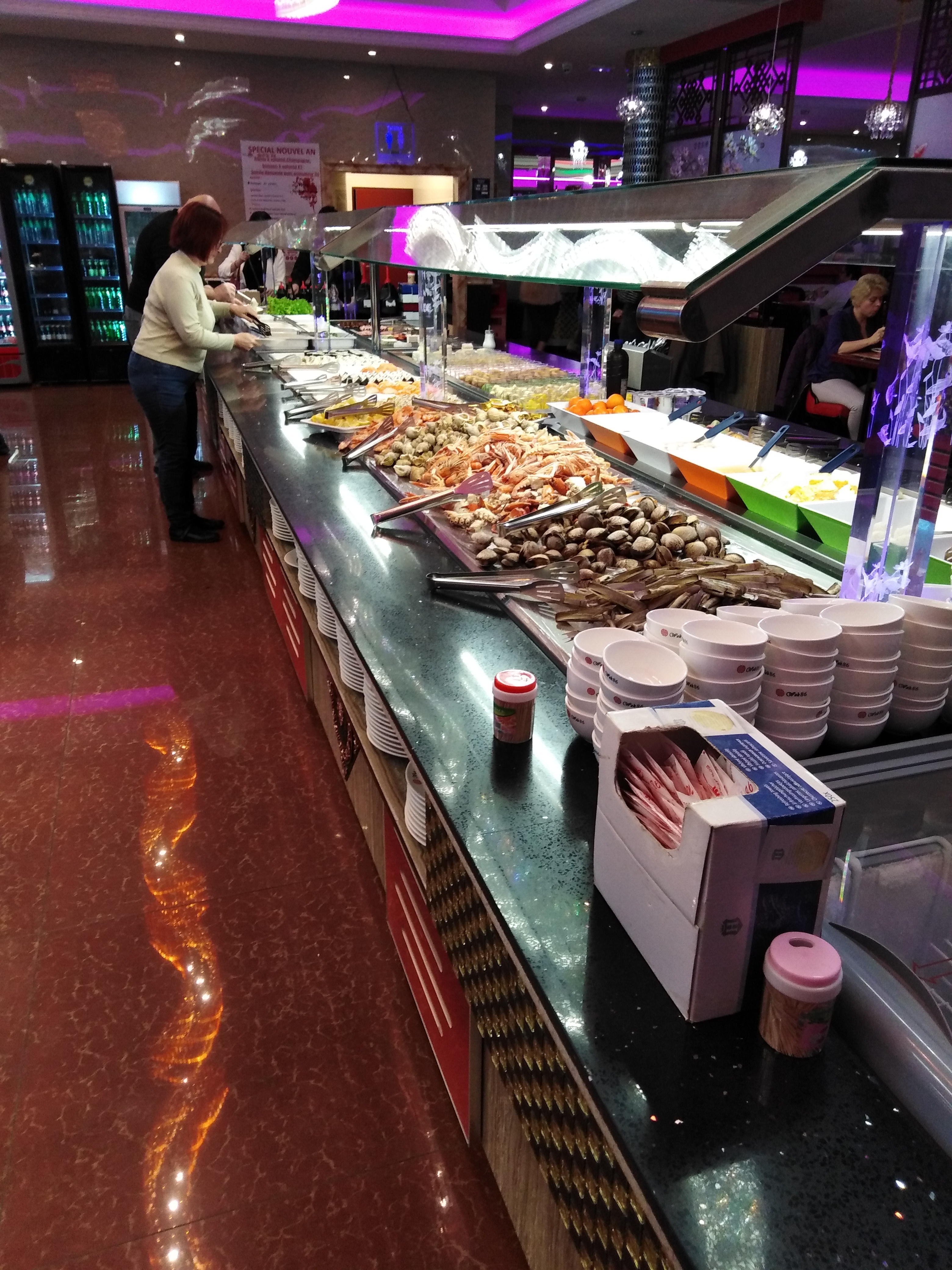 La fraîcheur des produits laisse à désirer. Pour être certaine, j'ai préféré prendre des crudités, du saumon frais, des huîtres et un peu de crevettes sous forme de beignets. Pour finaliser, j'ai préféré prendre tout les fruits, car les desserts Européens industrialisés, le concept est moyen. Organisation étrange. Tarif moyen 20€ par personne. Bof, je ne recommande pas.