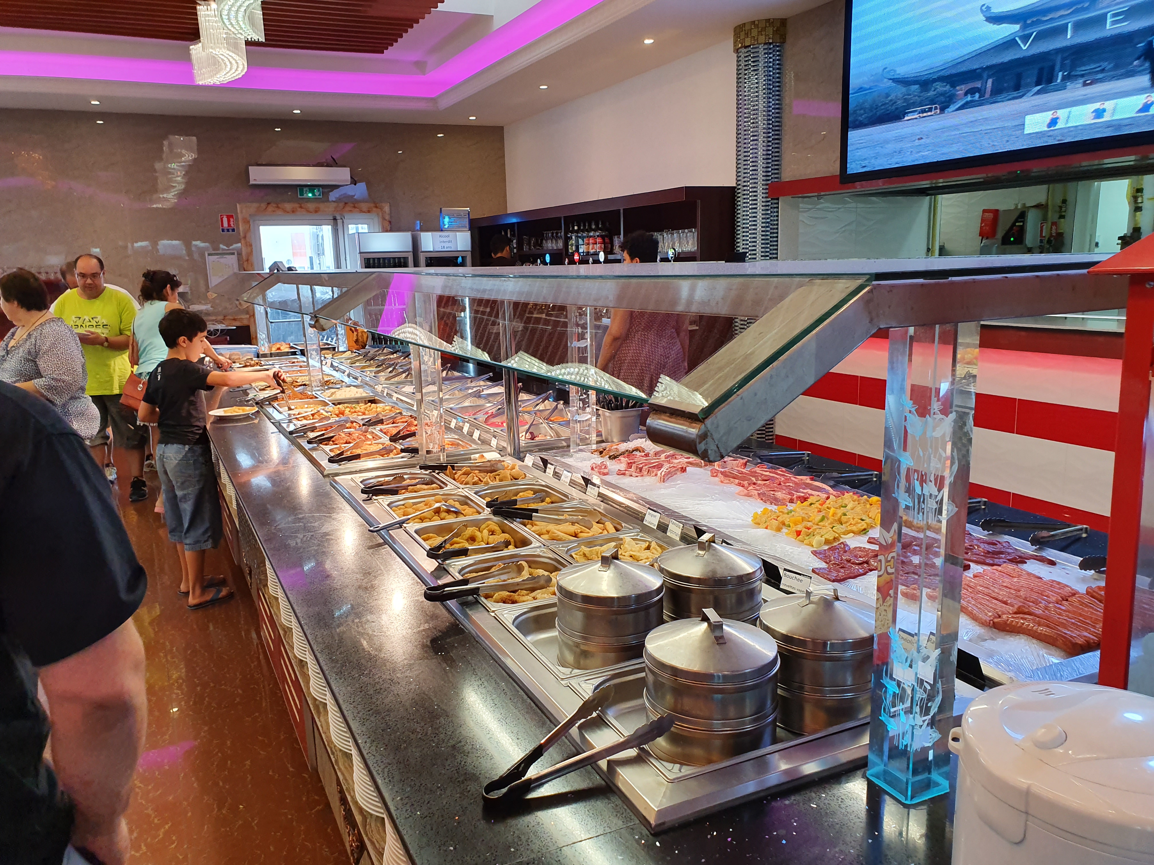 Grand choix dans les plats proposés, cuisine asiatique et française. Qualité de certaines cuissons à revoir. En dépit de la situation sanitaire trop de personnes se servent sans masque et ne portent pas de gant pour se servir. Aucun contrôle de la part des serveurs. Un + pour les boissons non alcoolisées à volonté