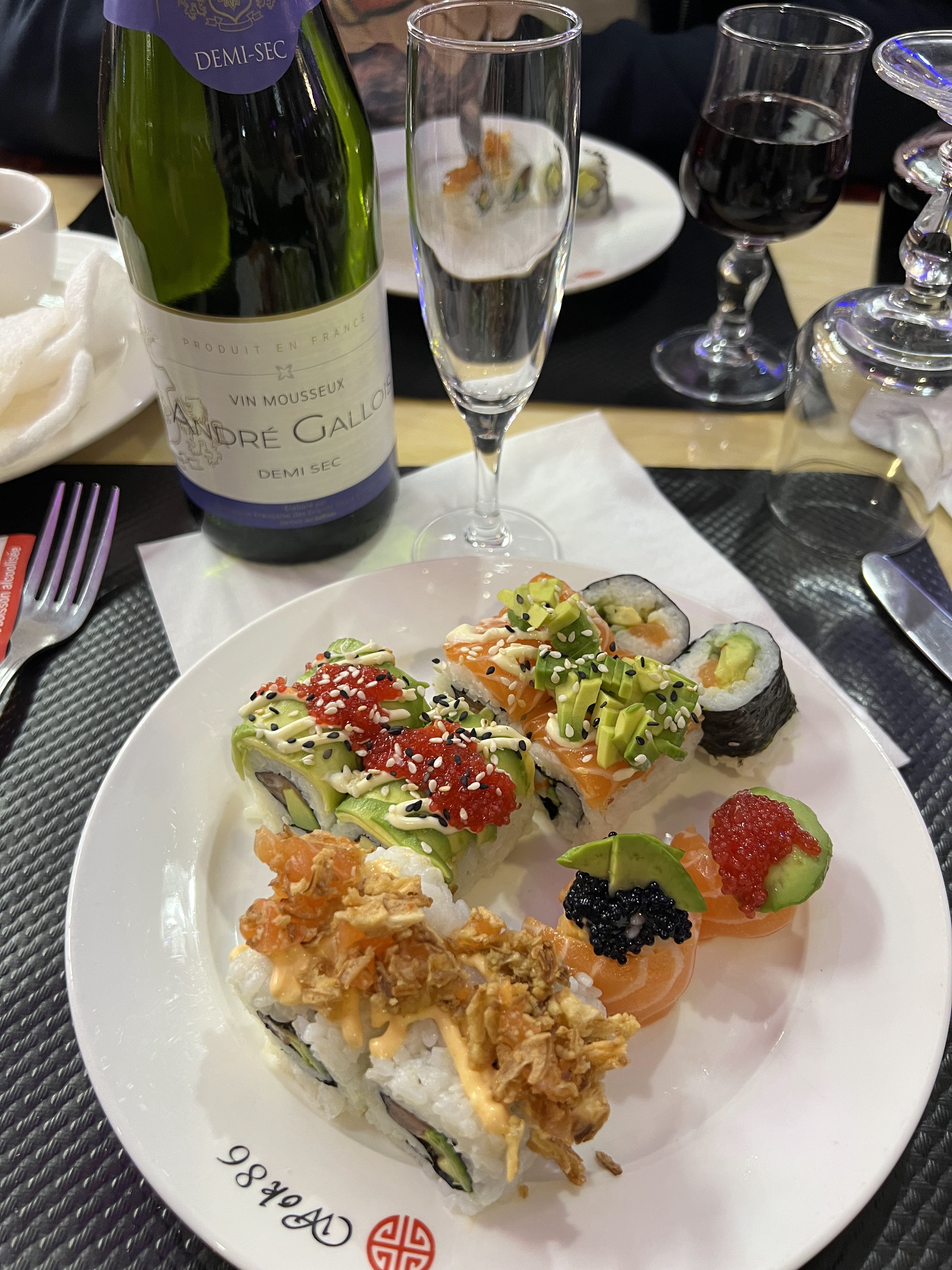 Assez mitigé. Payé avant de mangé c'est un concept, boisson soft à volonté et des tickets (2 par personne) pour les boissons alcoolisé. Les nems étaient mou, fade et il y avait des petit morceauw genre os dedans pas trouvé de différence entre ceux au porc et ceux au poulet. Les Sushi, maki correct mais pas fou et les sashimi coupe en beaucoup trop petit morceau ça gâche un peu le plaisir. Et ce qui m'a vraiment choqué c'est la non amabilité des personnes qui y travaillent , on t'explique pas le concept (perso je fais bcp d'asiatique et jamais eu ce concept) pas 1 sourire, parle très peu français. Le monsieur au wok ne décroche ni un mot ni un sourire il reste super fermé c'est vraiment étrange j'ai pourtant dis bonjour merci mais bon. Et personne qui nous place baille la bouche grande ouverte en attendant qu'on paye.