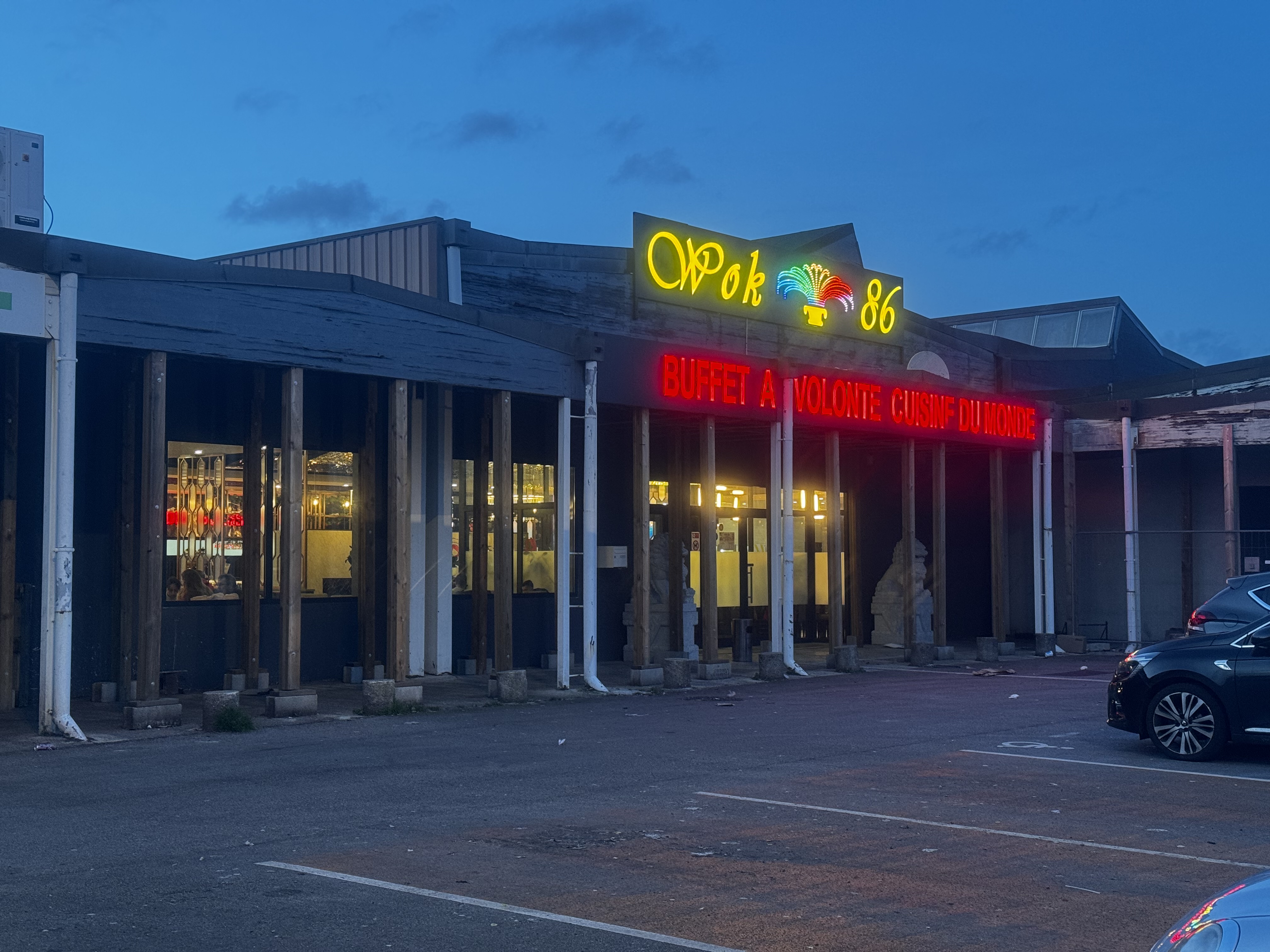 Restaurant dans la lignée de ce type de restaurants de buffets à volonté. Ne vous attendez pas à de la grande cuisine. Le choix est très varié et contentera les envies et les goûts de chacun. Dans les plats que j'ai goûtés, un bémol pour les nems qui ne sont pas savoureux du tout, et un plus pour le canard laqué et le panel de fruits en dessert. Pour cette 1ère venue, je n'ai pas testé le wok. Je trouve le prix un peu trop élevé pour le soir et le week-end, ça commence à piquer qd même, surtout qu'au final on ne mange pas des quantités astronomiques : pour ce prix là on commence à avoir des menus bcp plus savoureux dans d'autres types de restaurants. La salle est propre et lumineuse. Les tables étant très proches, je pense que les jours d'affluence (si cela a déjà été le cas depuis l'ouverture) cela doit être un joli petit bordel. A noter qu'il faut payer en arrivant. Je n'ai pas noté le service car il est inexistant. Je me pose la question de l'avenir du restaurant avec tous les étais qu'il y a autour pour soutenir le bâtiment et la destinée de ce centre qui devient fantôme au fil des mois.