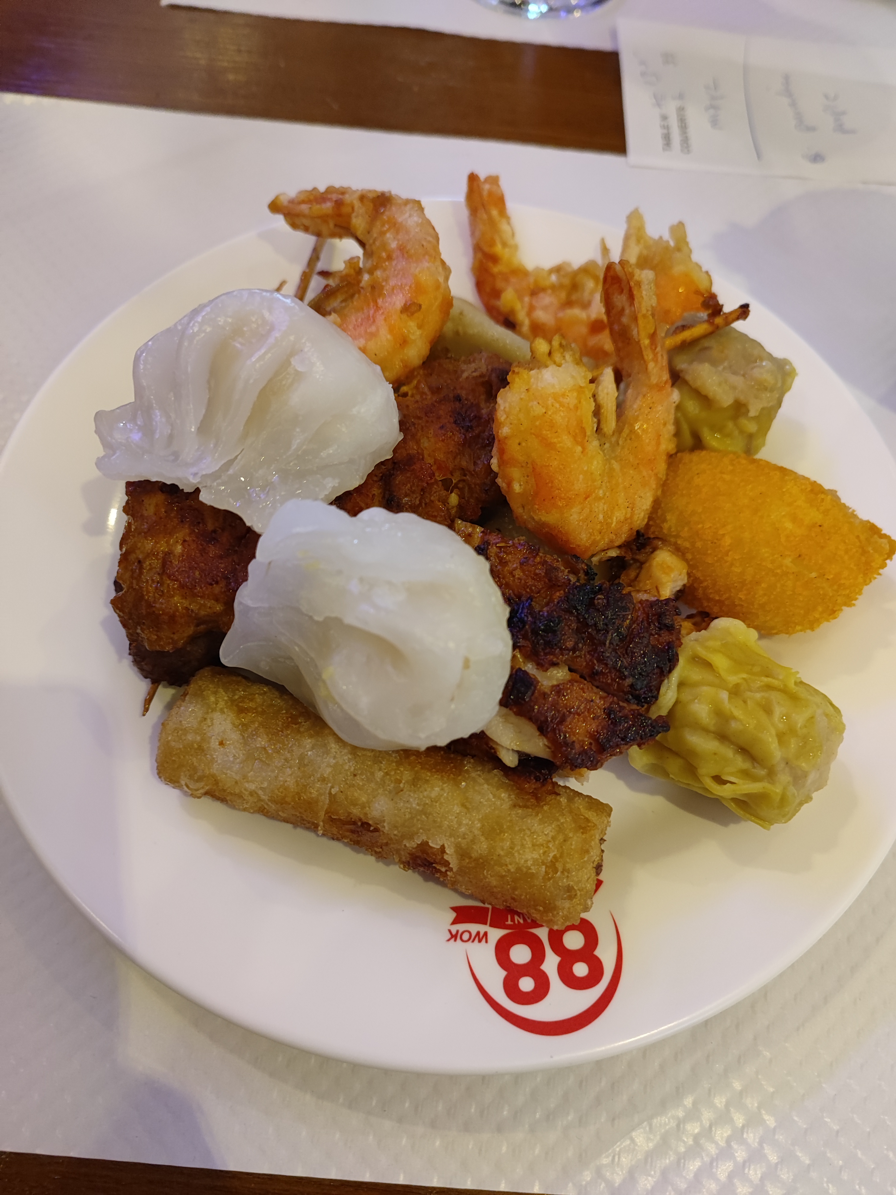 Première fois au Wok 88, personnel accueillant et serviable, salle propre, un peu buyant, mais tout est bon. Pour un buffet à volonté le prix est très bien pour une très bonne qualité des produits, de l'entrée au dessert 👍