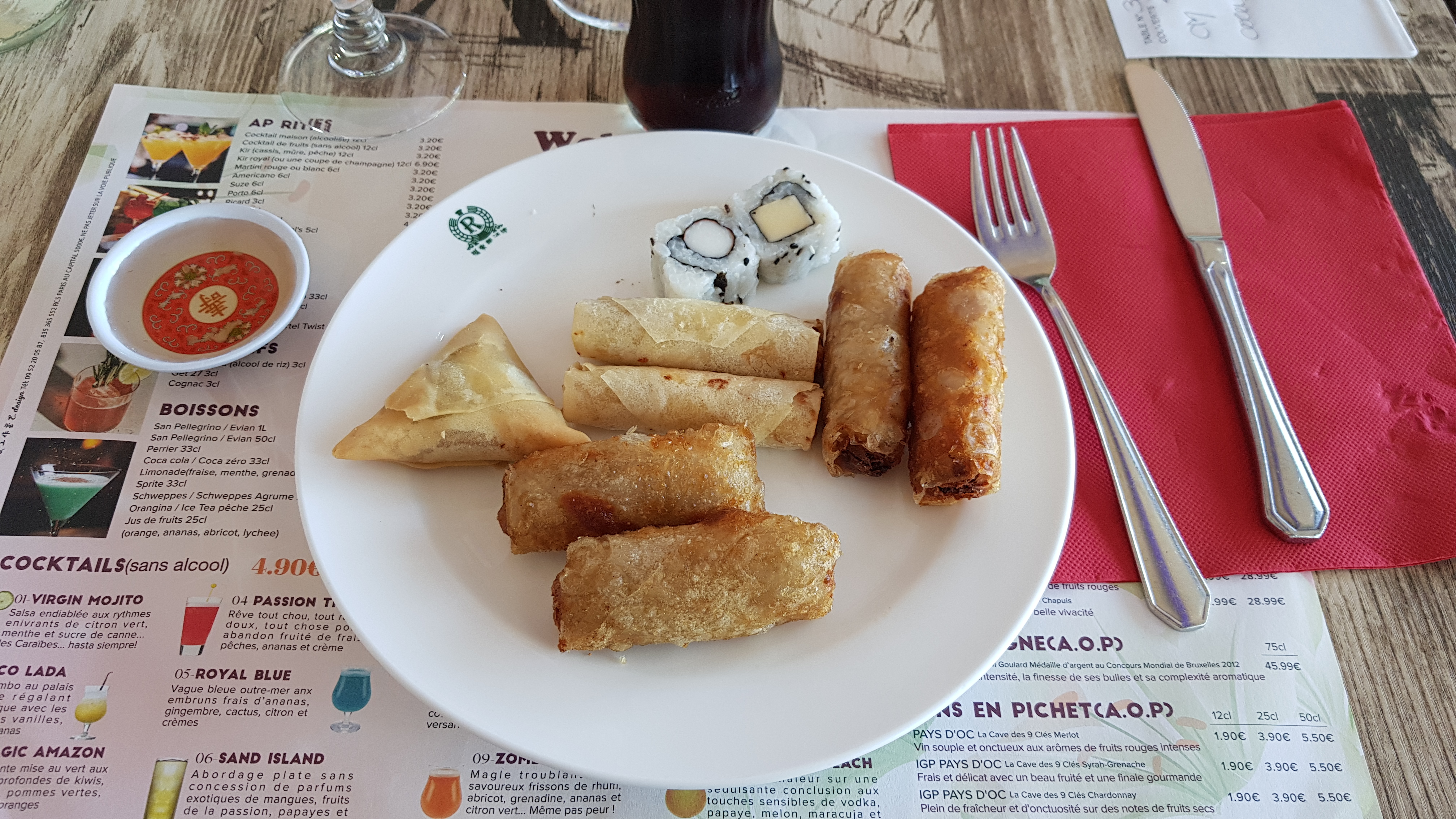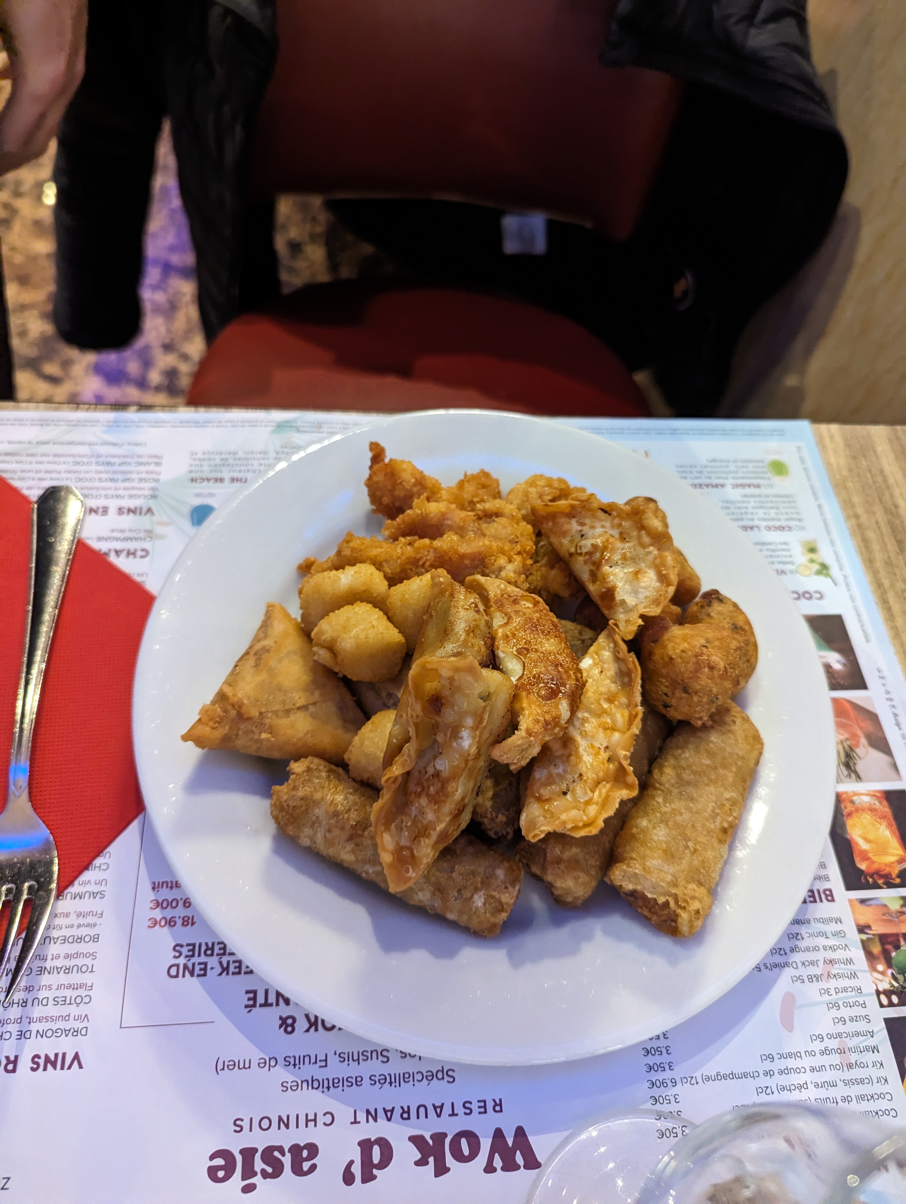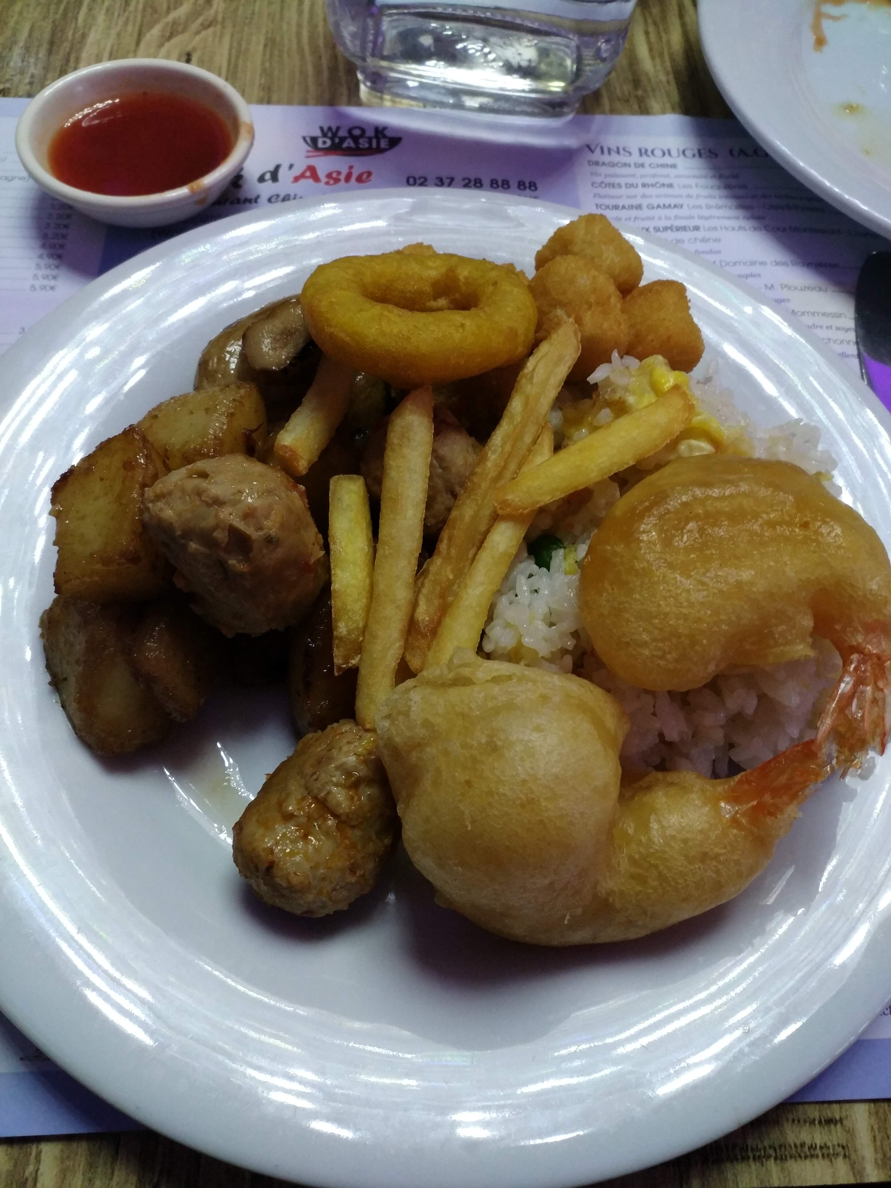 Malheureusement c'est toujours aussi gras! Et puis les frites , le camembert....on a pas l'impression d'être au resto chinois! Pour 19,80€ le menu!