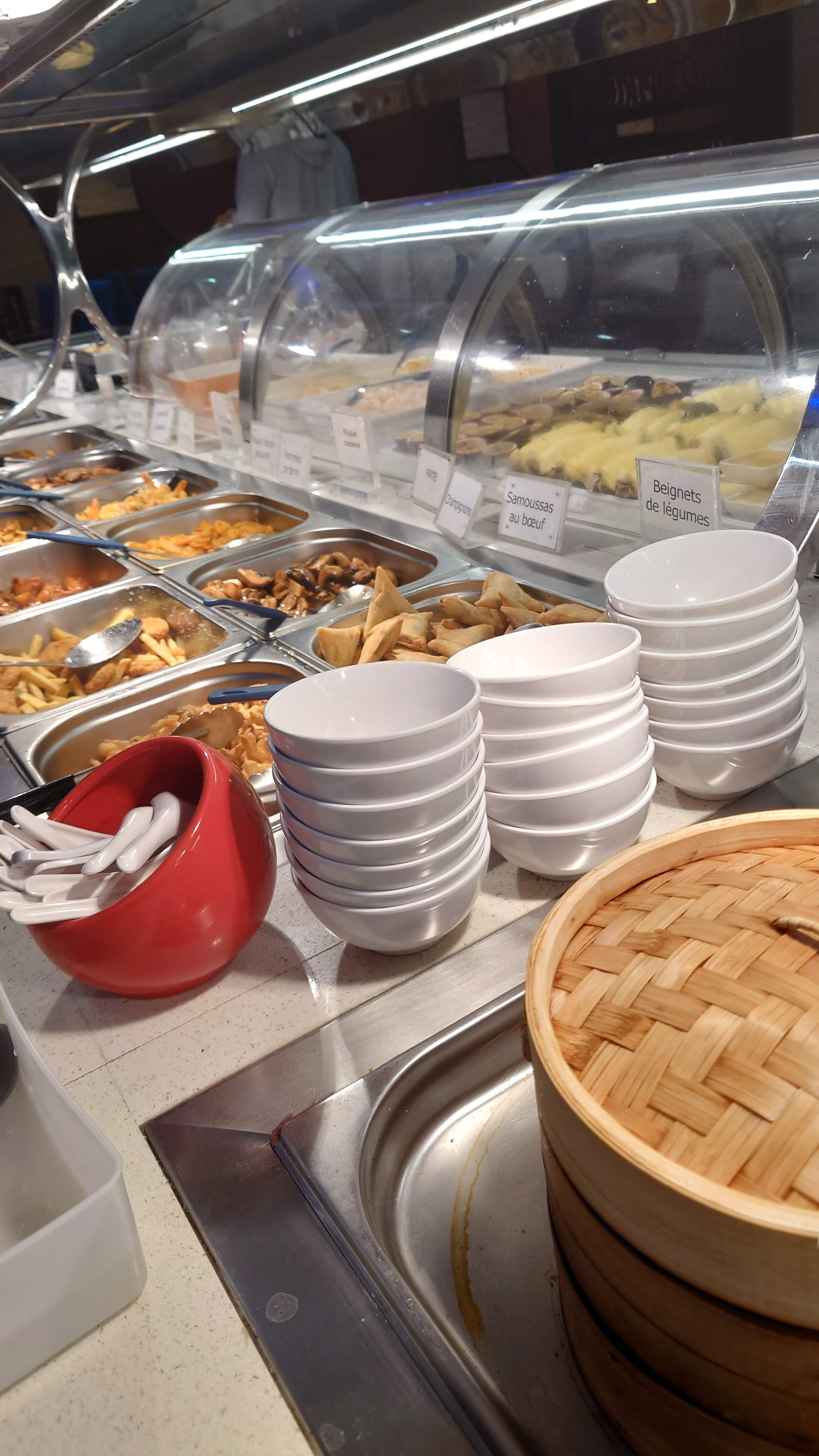 Nous allons dans ce restaurant deux fois par semaine (semaine et week-end). Nous avons été dans de nombreux restaurants asiatiques (chinois: jusqu'à Paris, japonais, et type buffet). L'accueil se fait très rapidement, et est chaleureux. Le buffet est varié: entrées froides(huîtres, crevettes, sushis, makis, salades variées), entrées chaudes (nems, beignets, fritures diverses, samossas, ravioles...), WOK (très varié, même d'un jour à un autre ils proposent des changements + diverses sauces), plats (nouilles, crevettes, grenouilles petites gambas, légumes....), desserts (fruits, préparation, beignets, boule coco, glaces...). Le buffet est ré-approvisionné régulièrement, et sinon on peut demander à ce que ce soit fait. Rien à redire sur la nourriture ou le personnel. Le rapport qualité/prix est plus que satisfaisant. BREF, lieu à conseiller fortement!