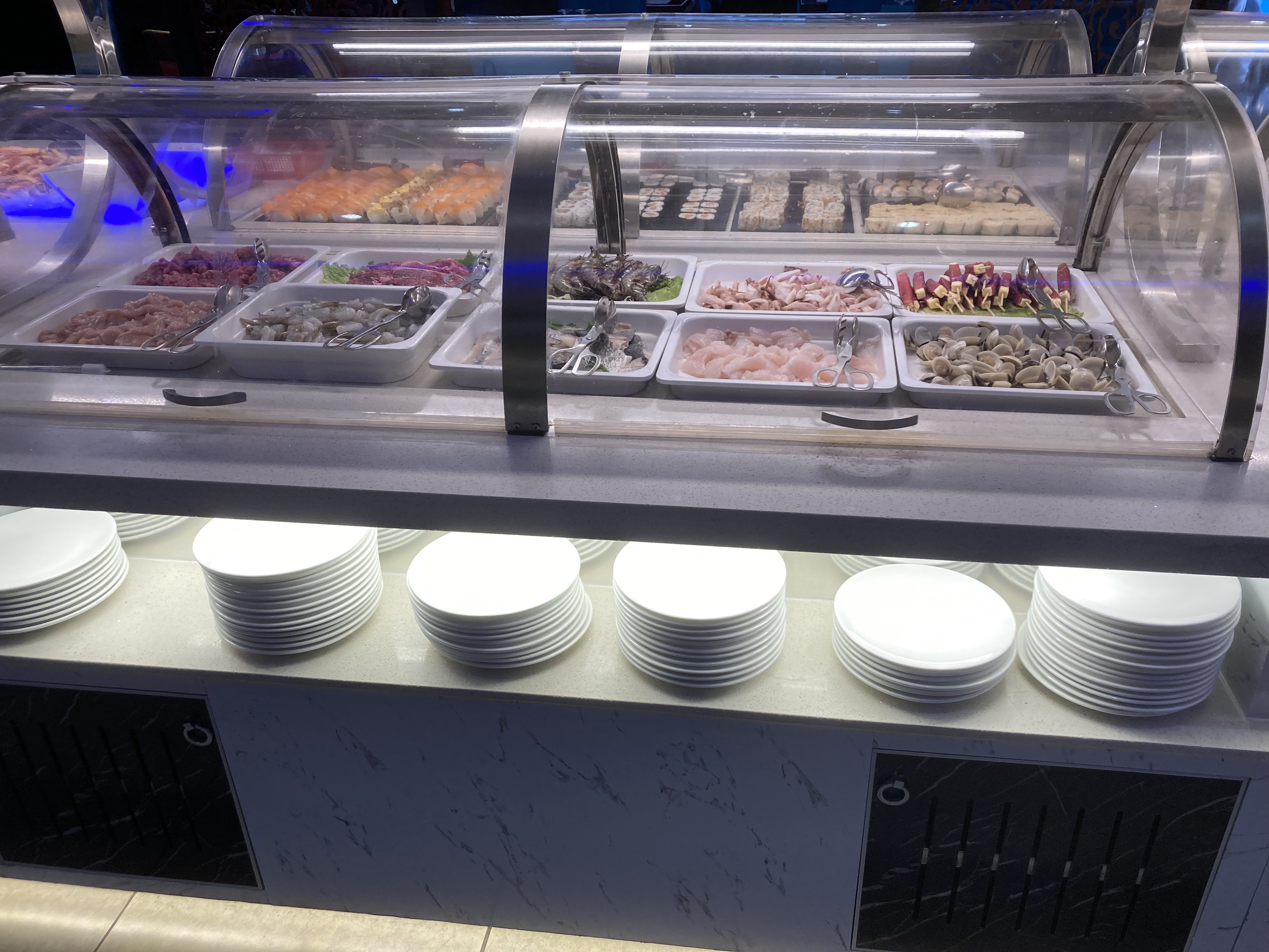 De passage, j'ai été mangé des sushis là bas mercredi midi. Nous sommes samedi matin et je suis encore malade, le saumon avait un goût de fromage, je ne recommande absolument pas la partie japonaise de leurs buffet.