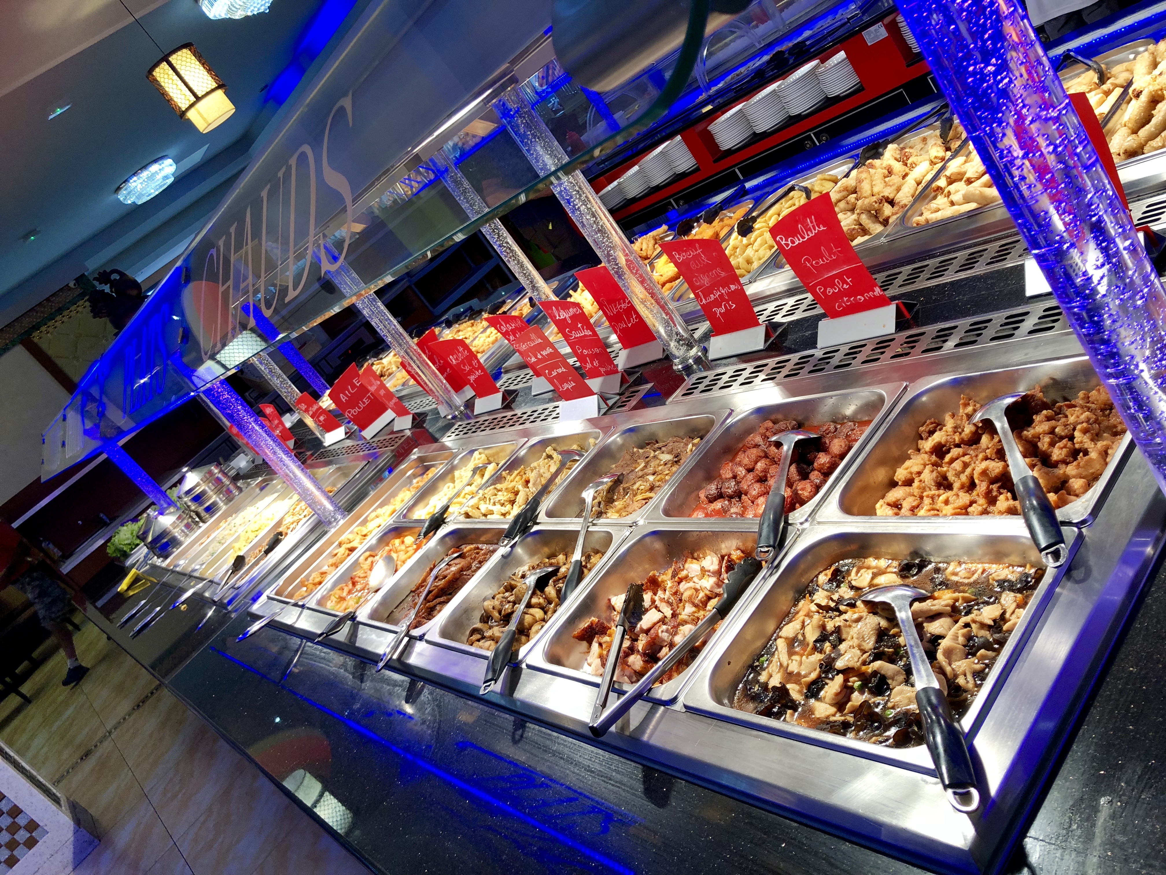 Super décoration pour la salle. Buffet impressionnant par le choix. Les personnes qui n'apprécient pas la cuisine asiatique peuvent y manger quand même car il y a des plats classiques et même du fromage. Très grand choix en desserts. Attention par contre si vous arrivez vers 20h , 21h il peut y avoir un peu d'attente