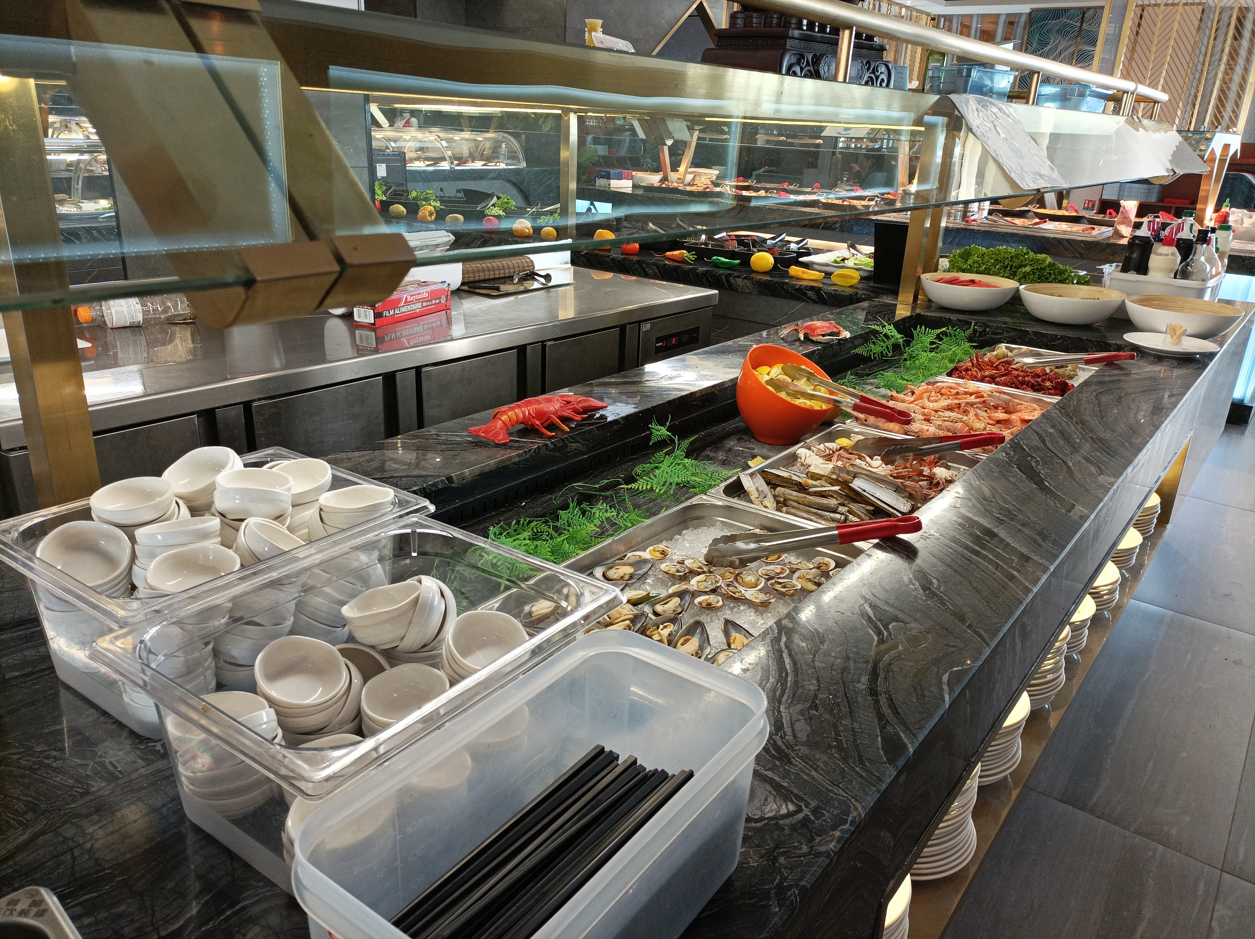 Buffet à volonté très grand et varié, la nourriture est de super bonne qualité j’ai vraiment adoré manger ici