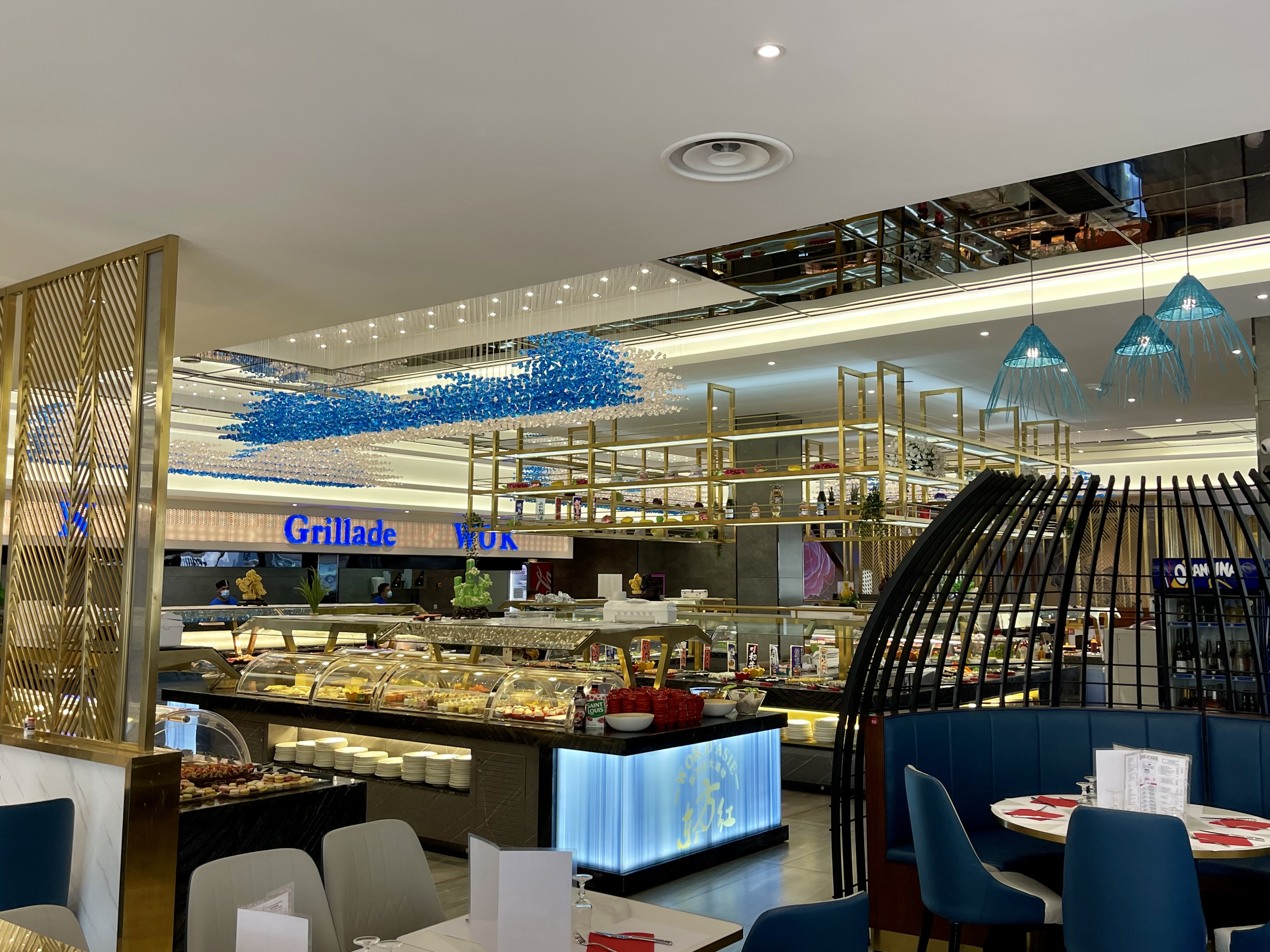 Un restaurant grand, spacieux mais surtout, et c'est très appréciable, propre ! Un large choix de plats, entrées, desserts ... qui allient alimentation européenne et asiatiques. Un grill très varié. Une amabilité qui serait peut être à perfectionner, une salle à l'écran agréable car tamise le bruit mais bien trop chaude par manque de ventilation. Une certaine lenteur dans le debarras des assiettes. Malgré cela, je recommande vivement ce restaurant