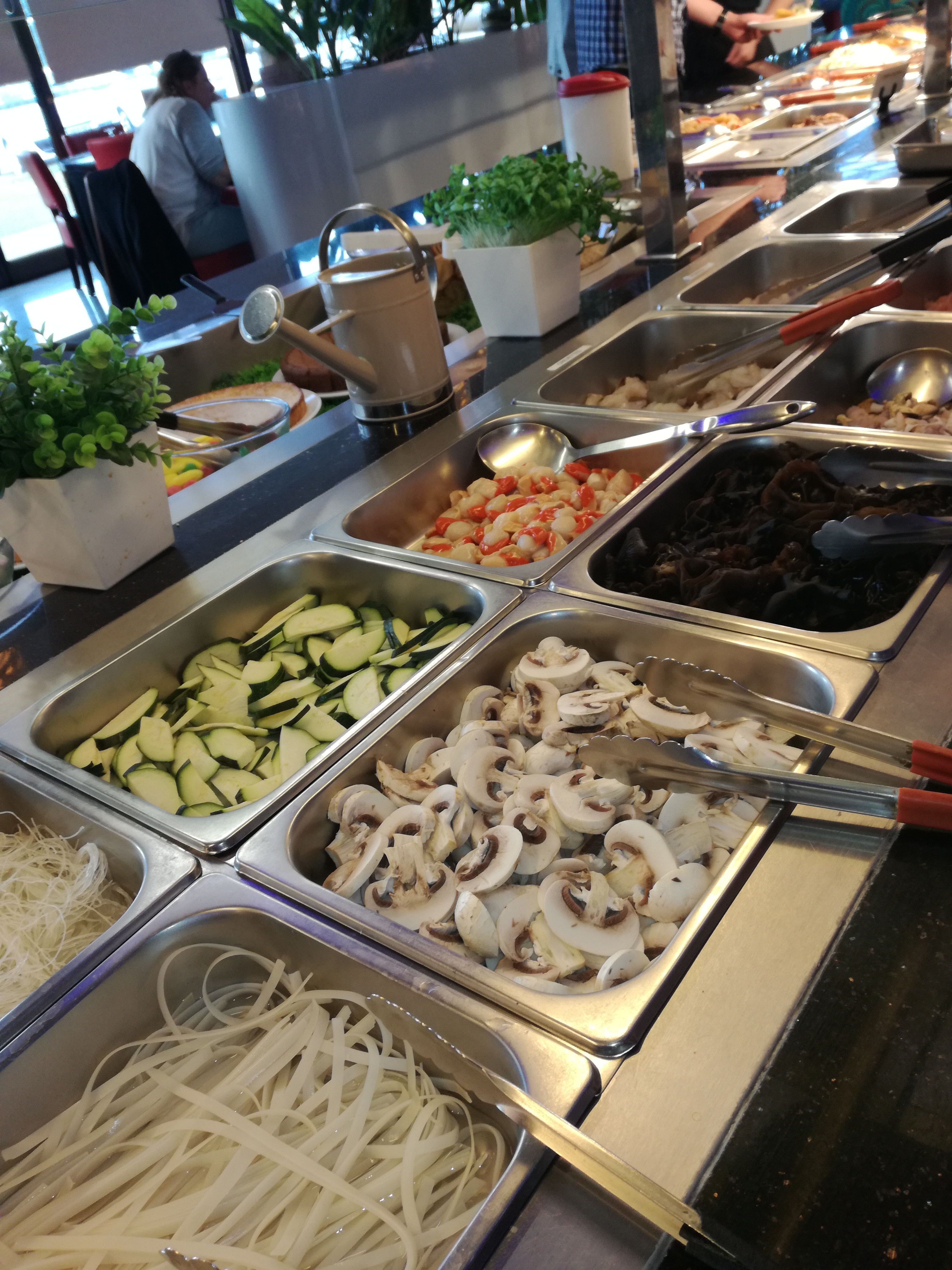 Il y avait pas du monde les règles d'hygiène son vraiment respecter et la distance idem J ai adoré j ai fais le tour des buffets il n’y avait pas pas des légumes déjà cuit, comme auparavant ,c'est à la personne de faire son choix des légumes et le faire wook je trouve que c'est génial. Je dirais un petit défaut ce n'était pas bien cuit les légumes c'est dommage mais autrement rien à dire.