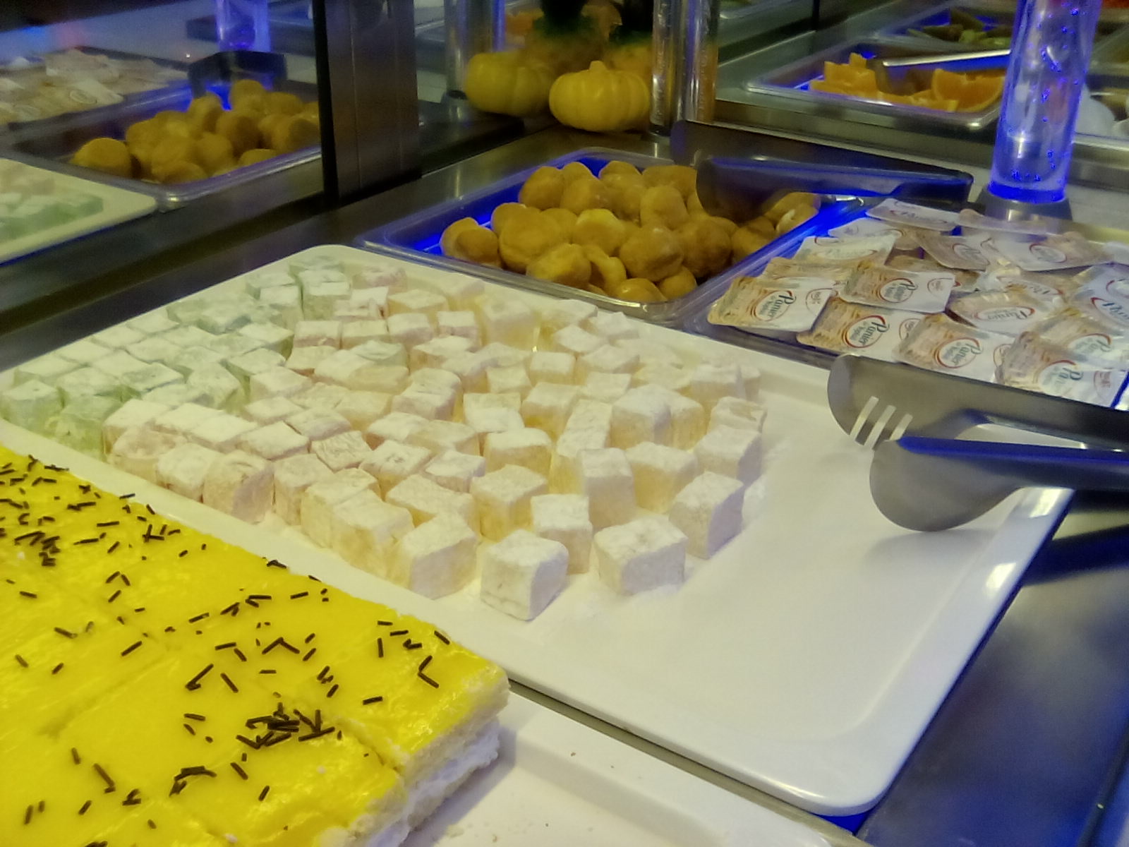 Beaucoup de choix au niveau des aliments, salés ou sucrés. possibilité de manger rapidement car buffet à volonté, libre service. Des protections ont été ajoutées afin d'assurer la conservation des plats frais, c'est un bon point positif. En revanche niveau saveur et qualité rien d'extraordinaire.