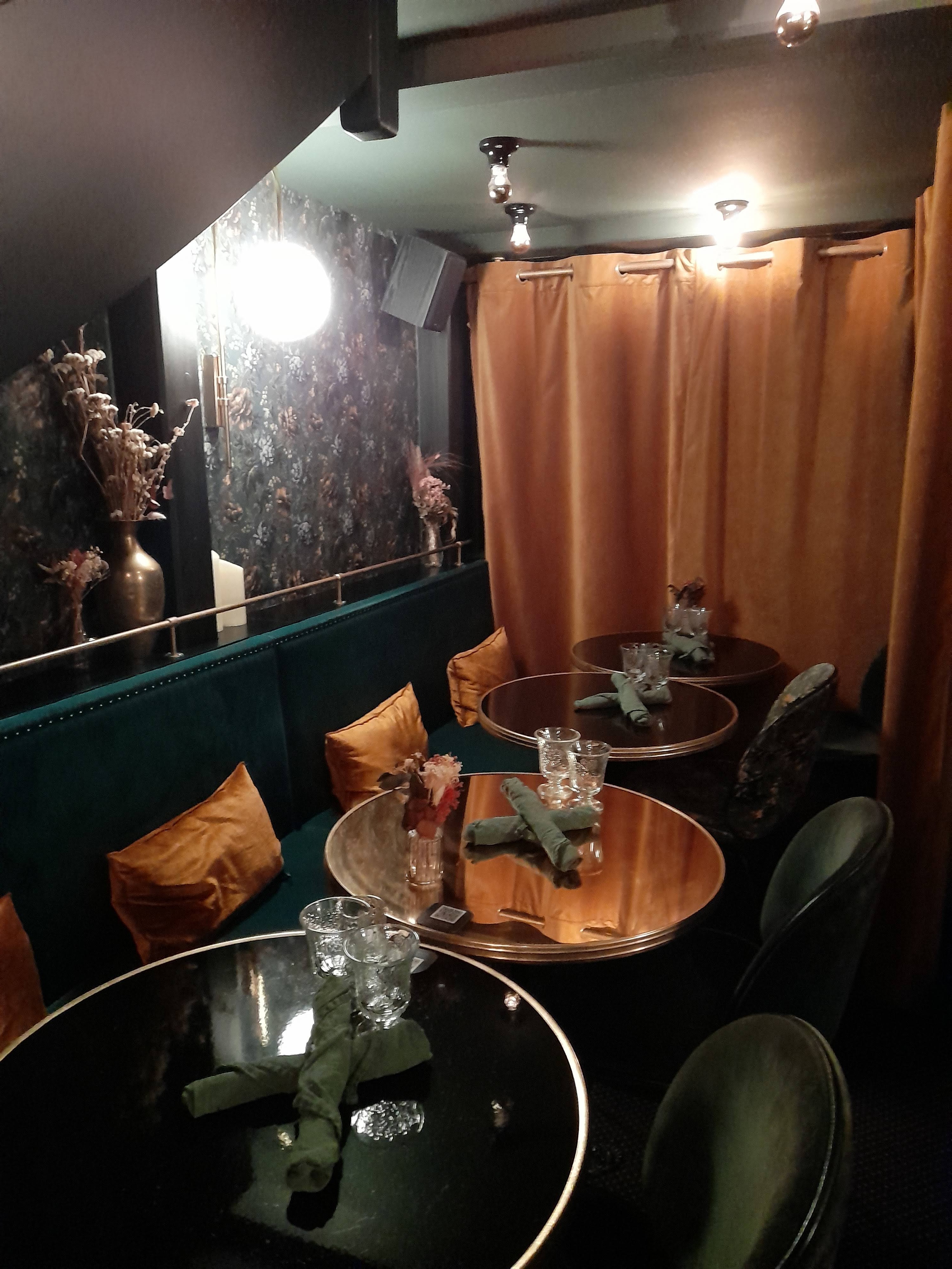 Superbe atmosphère élégante et décadente. Un petit côté Art Déco des années 20. Nourriture très savoureuse. Bonnes portions pour un prix correct. Dans l'ensemble, un accroche-regard. Ça vaut vraiment le détour, à Rennes et à proximité de la gare centrale.
