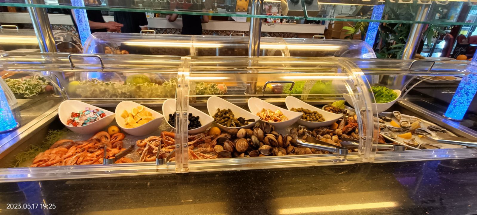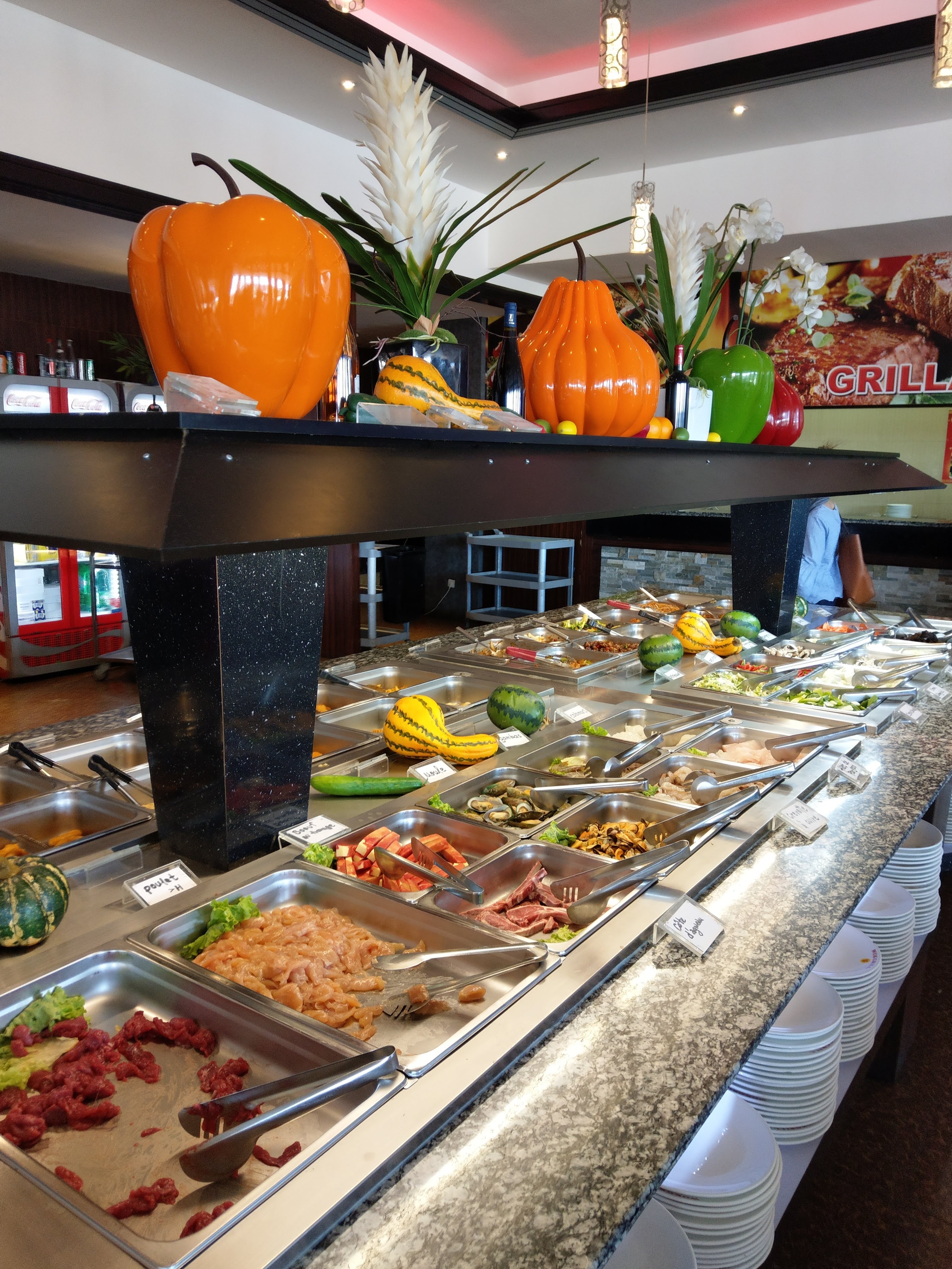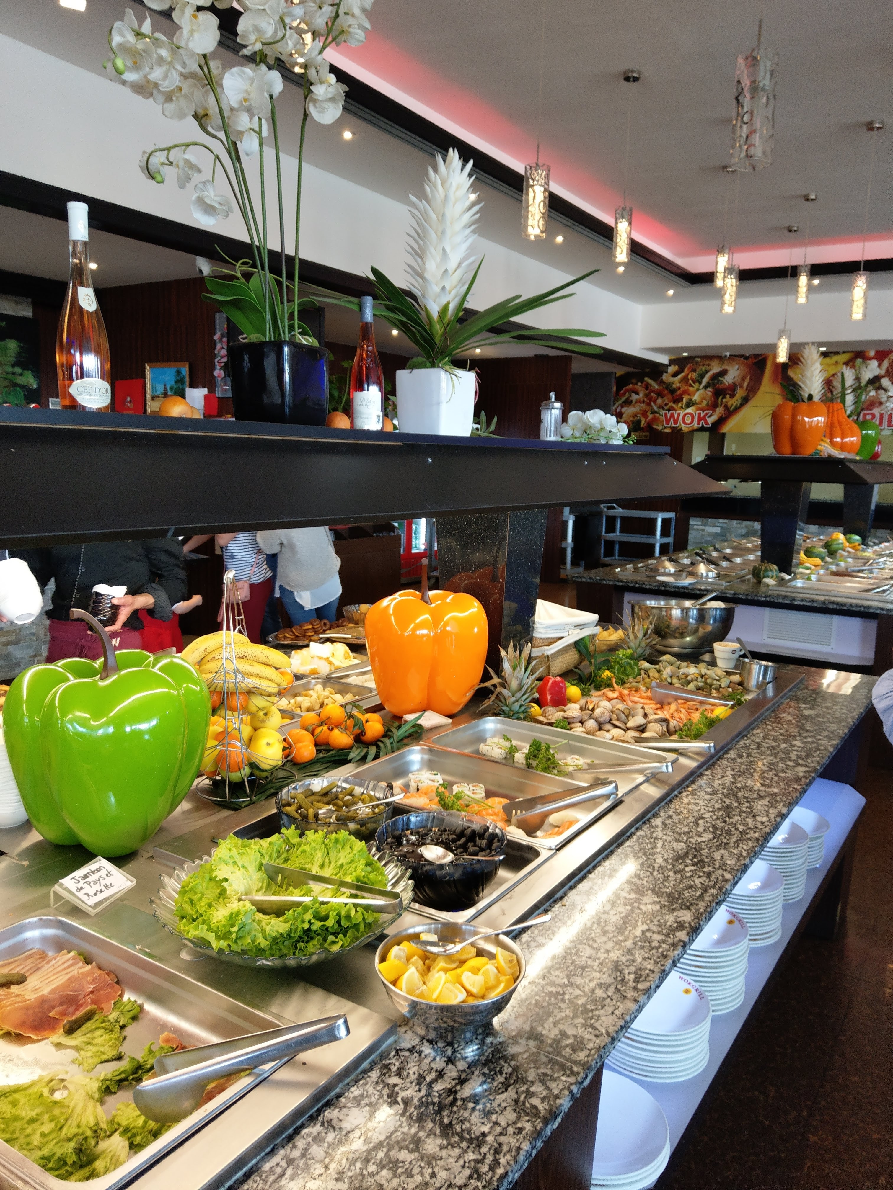 Restaurant répondant aux attentes de ce que l'on demande généralement d'un restaurant à volonté. Cependant, pas mal de surprises sur la qualité de la nourriture qui amène à émettre quelques doutes sur l'envie de la manger ou non. Je pourrai citer certains fruits de mer aux allures ternes, de la viandes au goût fade ou encore des fruits qui avaient d'avoir tournés. Par la suite, nous avons été surpris de voir que nos couverts ainsi que ceux des tables alentours ont été retirés à de multiples reprises alors que nous avions averti deux fois que nous continuions de consommer, donnant une impression de ne pas devoir trop manger, selon certains critères de rentabilité. Je tiens tout de même à mettre en avant la sympathie du reste du personnel, que cela soit dans l'accueil, la cuisine des plats Wok ou encore au moment de l'addition. C'est dommage que notre expérience de cette soirée n'est pas été comme nous l'avions attendu, et souhaitons qu'il ne s'agisse que d'un cas isolé, Bonne continuation,