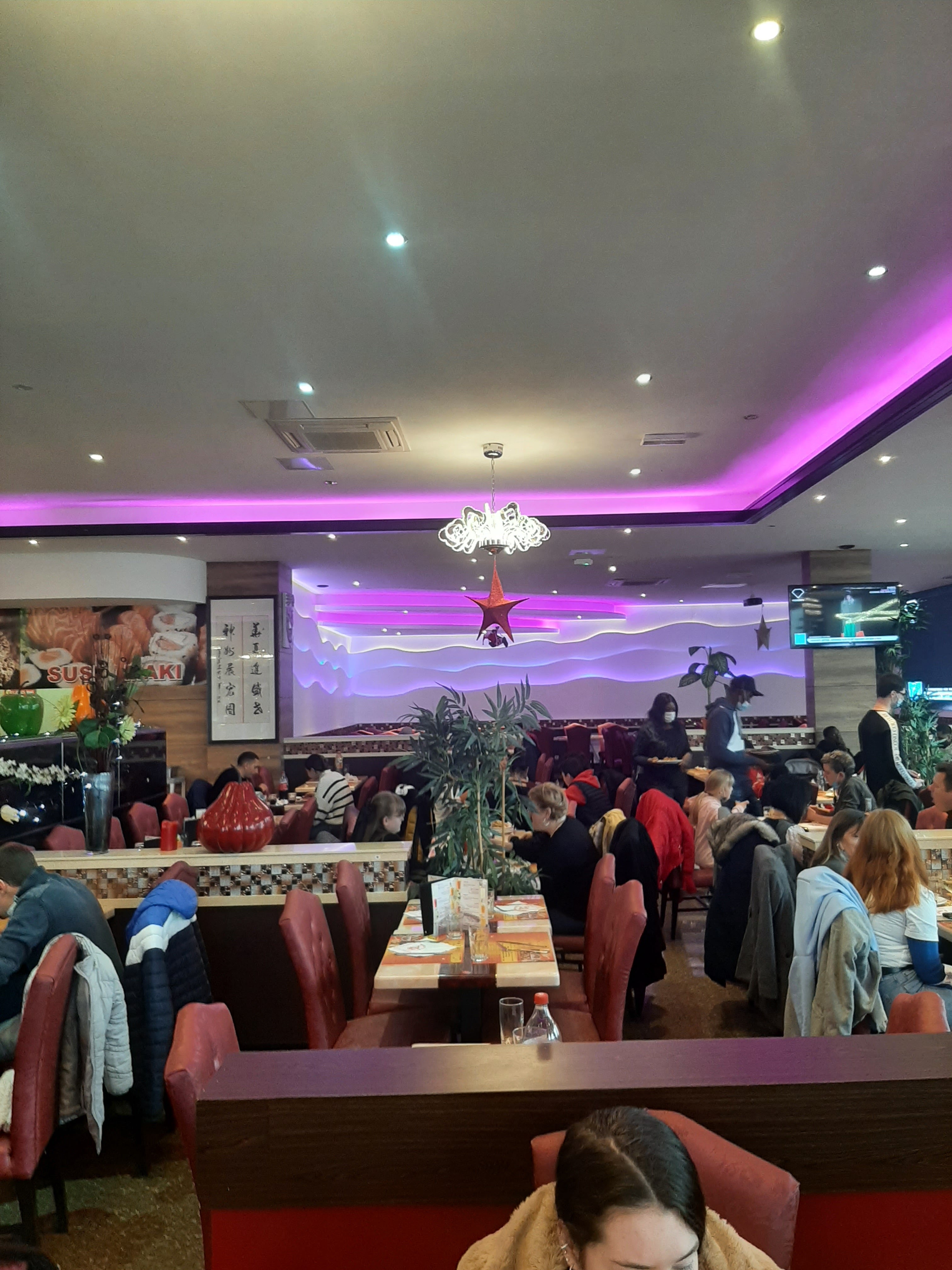 Alors pour commencer l’accueil est plutôt fastidieux on ne reconnais pas les serveurs et aucun bonjour. Ensuite il y a énormément de tables et places assise mais malgré cela il n’y a pas beaucoup de choix surtout pour les plats chaud. Les aliments sont très clairement de mauvaise qualité et il y a beaucoup trop de riz pour les sushis. Enfin il y a tellement de monde qu’ils ne peuvent pas assumer le service et il n’y a plus d’assiette pour se servir… Je ne recommande pas du tout.